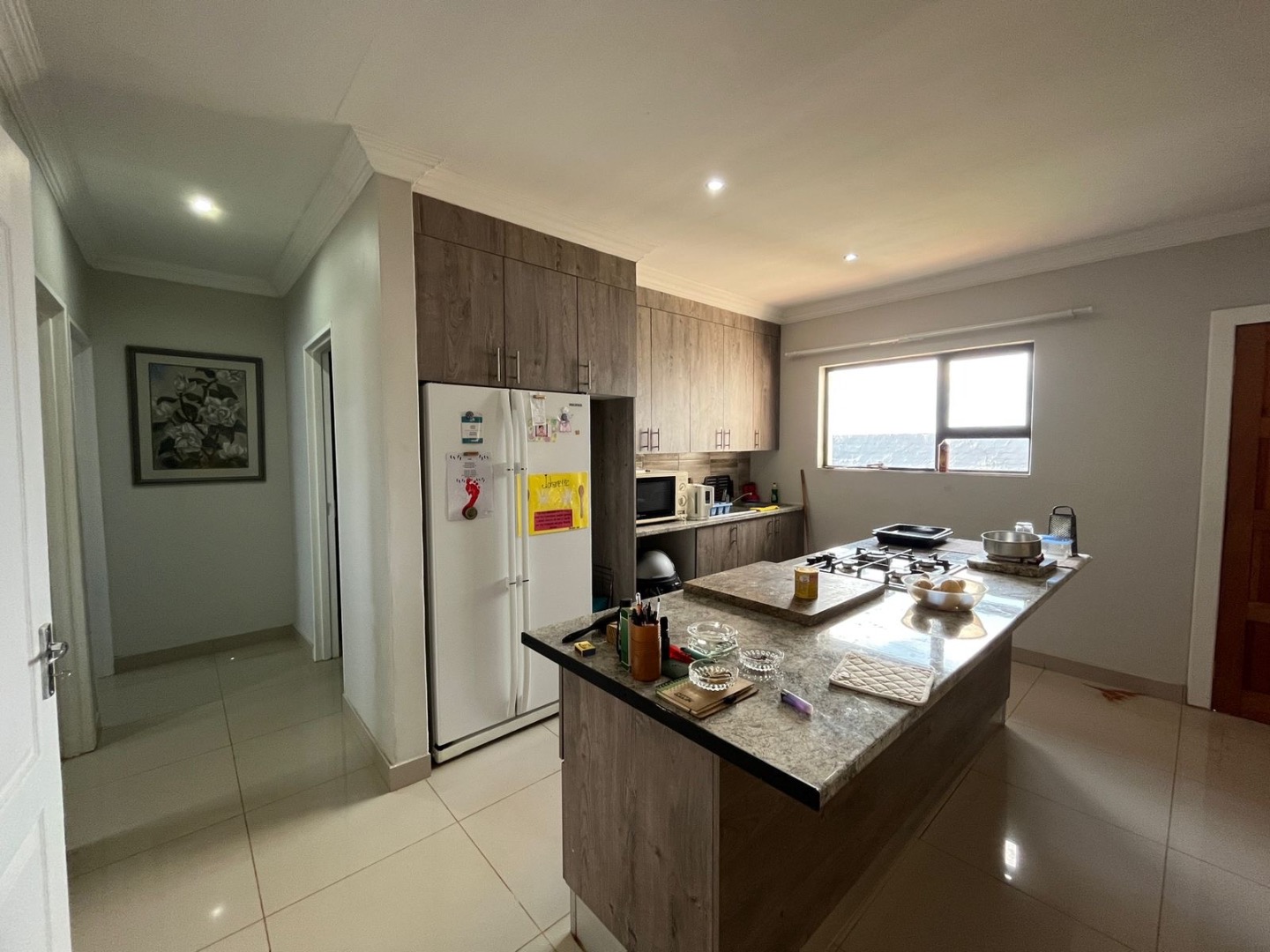 Upon entering, one is greeted by an intelligently designed interior that prioritises both functionality and aesthetic appeal. The residence boasts two distinct, modern kitchens, each featuring contemporary cabinetry—one with elegant wood-grain finishes and and another with sleek grey units. Both kitchens are equipped with spacious islands, one incorporating a gas hob and ample counter space, while the other offers comfortable bar seating, facilitating versatile culinary experiences and social interaction. The open-plan design seamlessly integrates these culinary zones with two expansive lounge areas, creating a fluid and adaptable living environment. Throughout these communal spaces, tiled flooring ensures ease of maintenance, while recessed lighting and sophisticated crown molding add a touch of refined elegance. A dedicated workstation area further enhances the practicality of the living arrangement, catering to contemporary lifestyle needs.