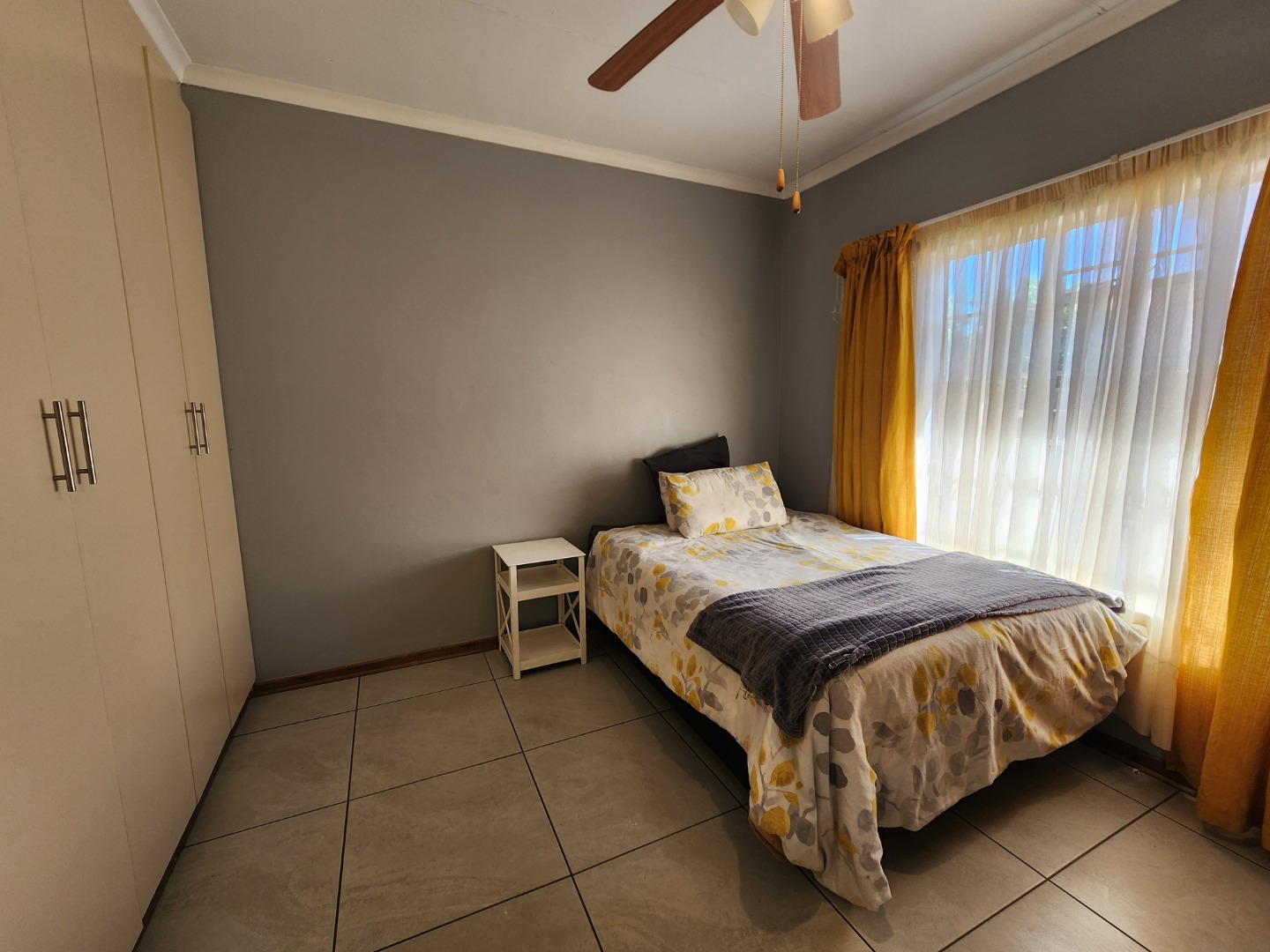 Outside, you’ll find a small private garden, a built-in braai, a 1,000-litre JoJo tank, a single garage, and an undercover carport.