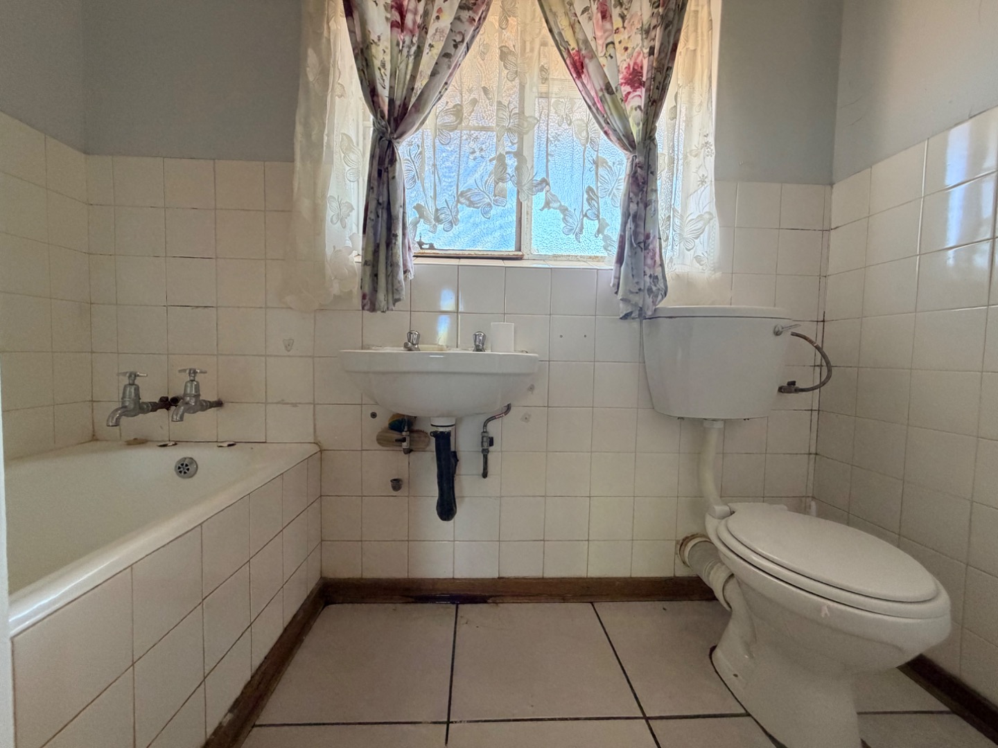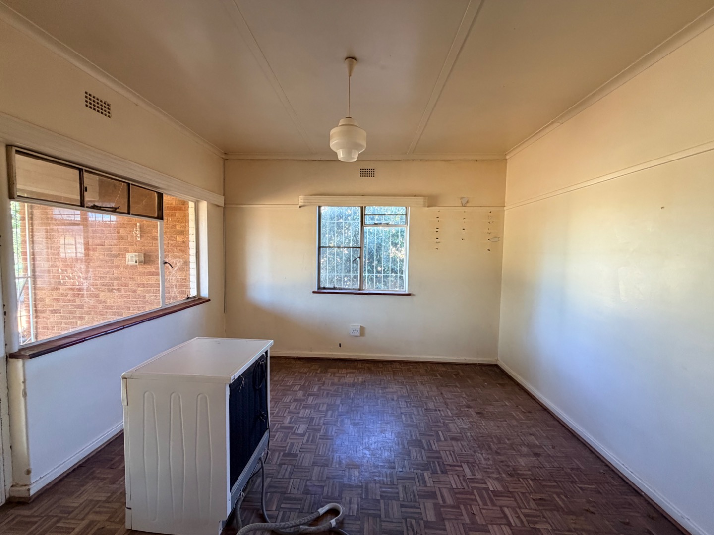 The main entrance to the home is via the back door, leading into a small entrance hall. Throughout the home—excluding the kitchen and bathrooms—are beautiful small-block parquet floors. Once sanded and polished, these floors would be absolutely striking and add tremendous character to the home.