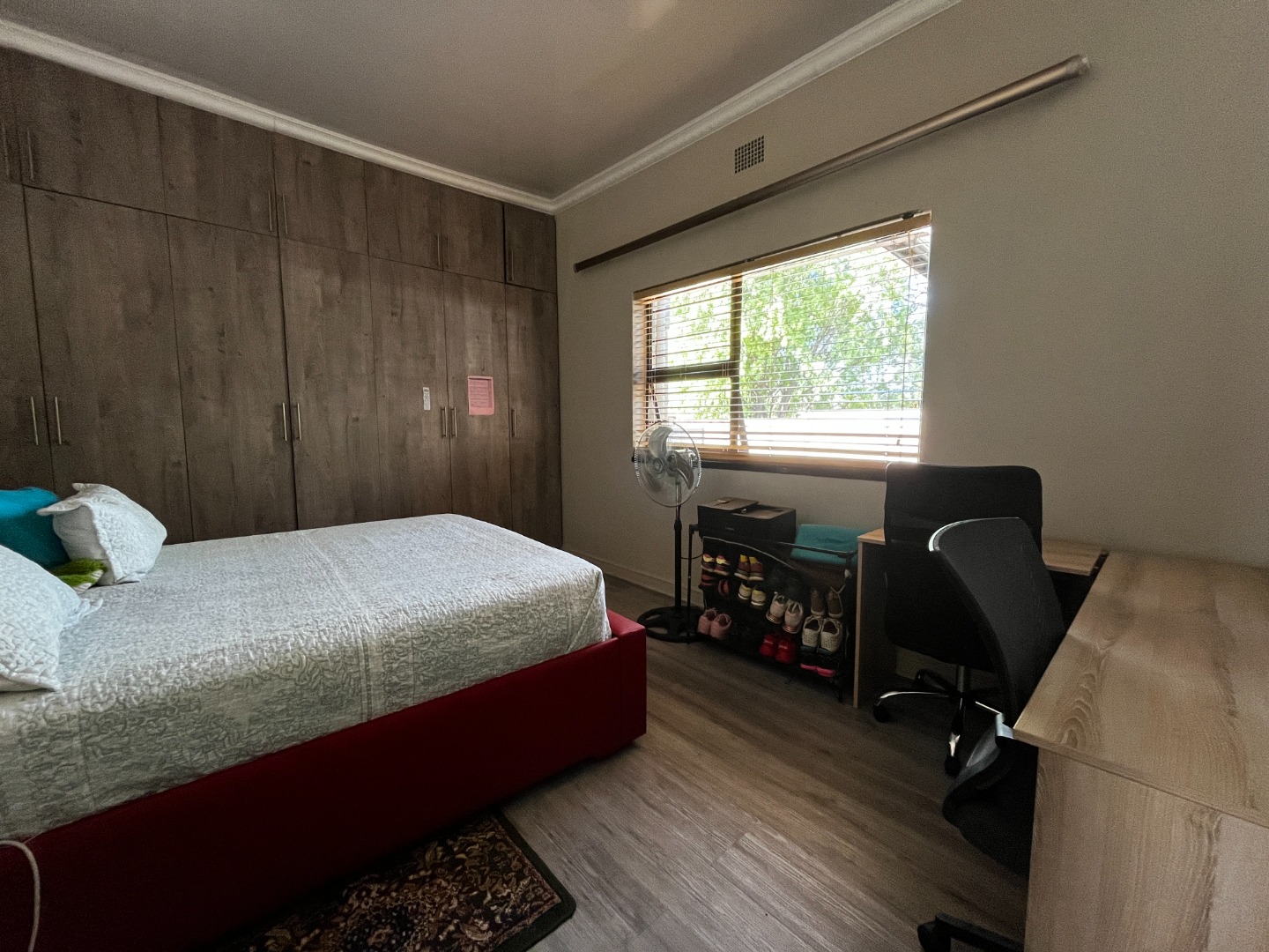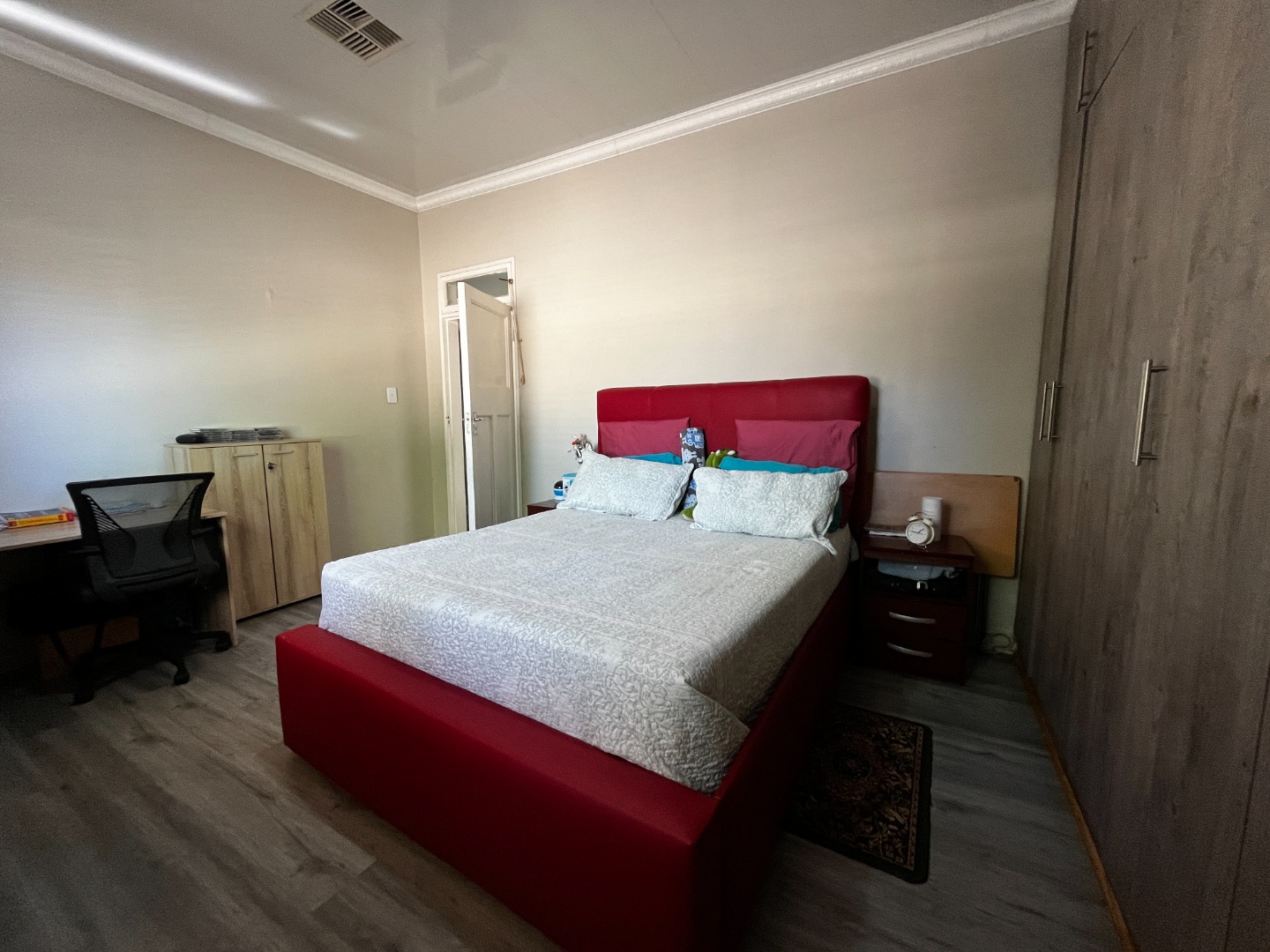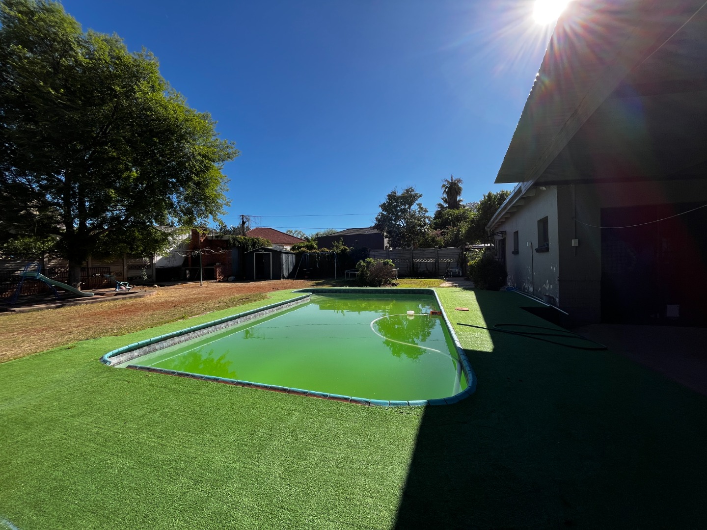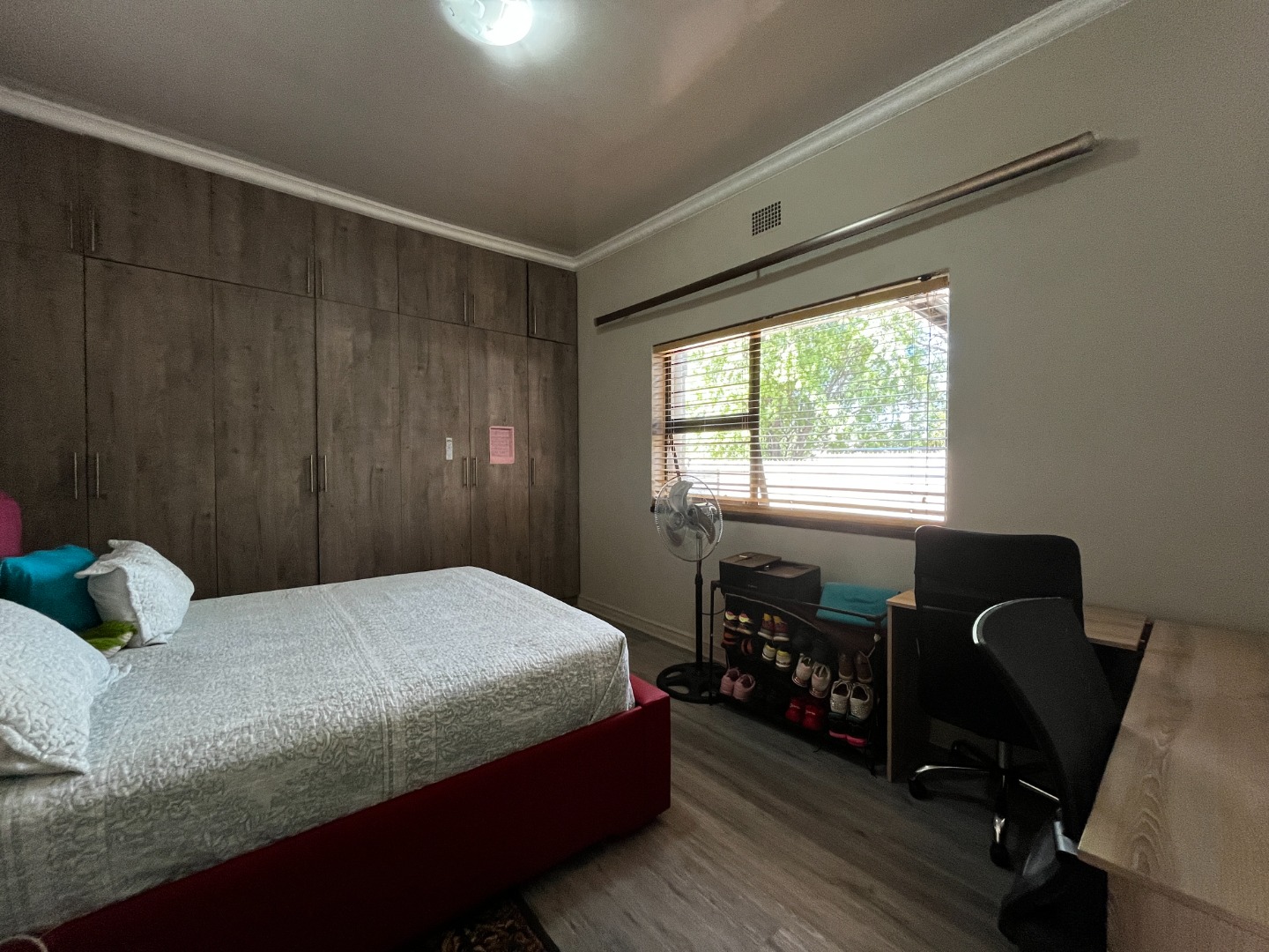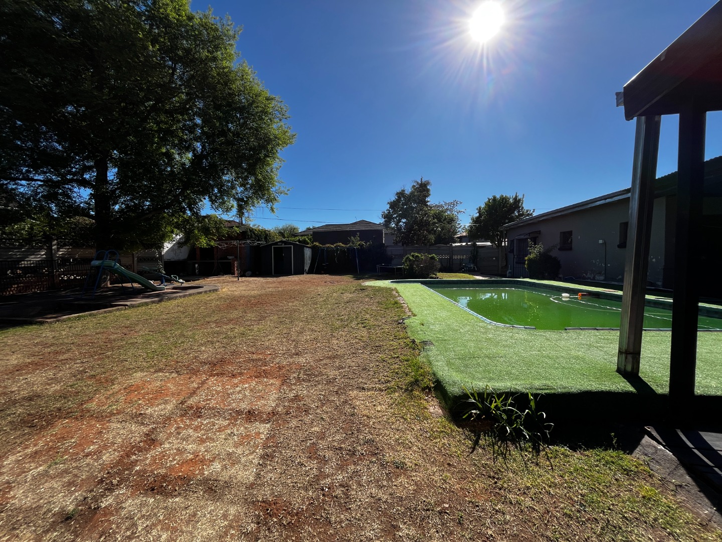 Step outside to a swimming pool with a built-in braai, creating the perfect space for gatherings with family and friends. The neat garden is complemented by a JoJo tank, ensuring a reliable water supply, while the secure garage with electric doors adds to the home’s practicality. Staff accommodation and a storeroom provide additional convenience.