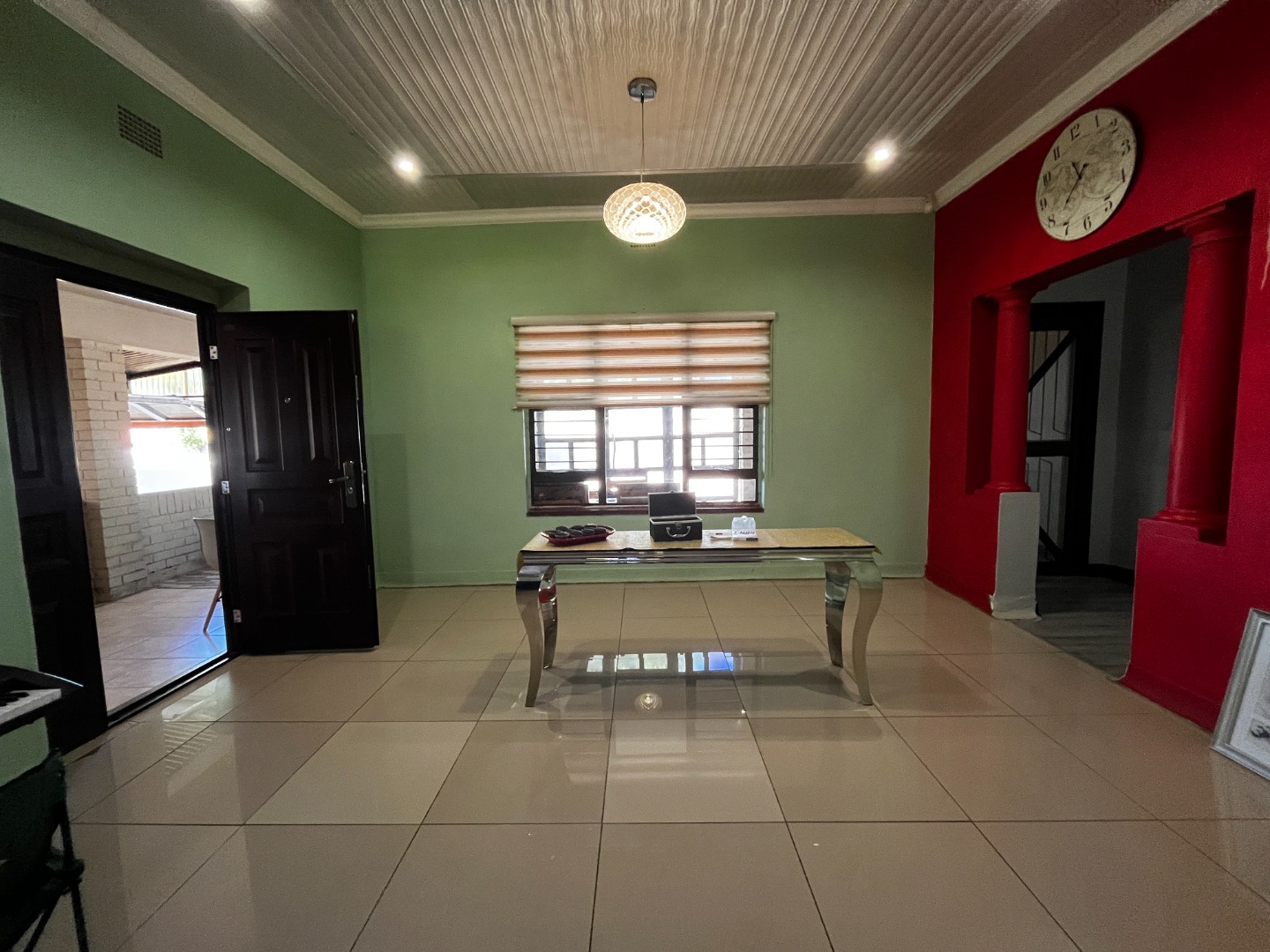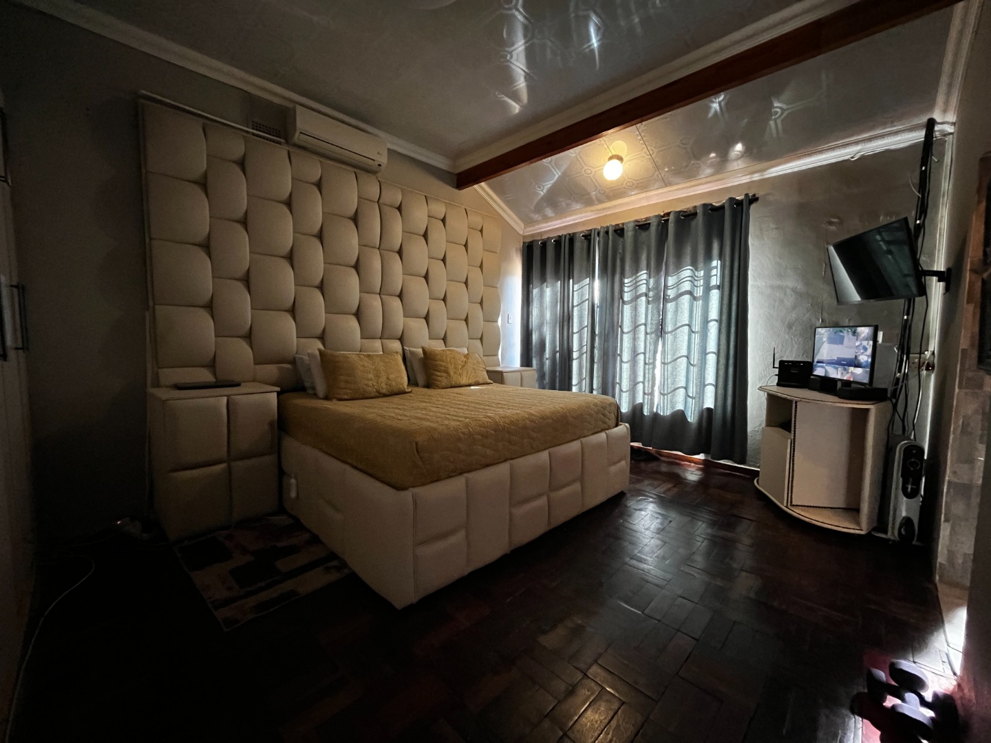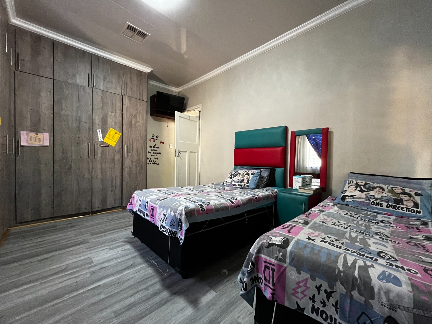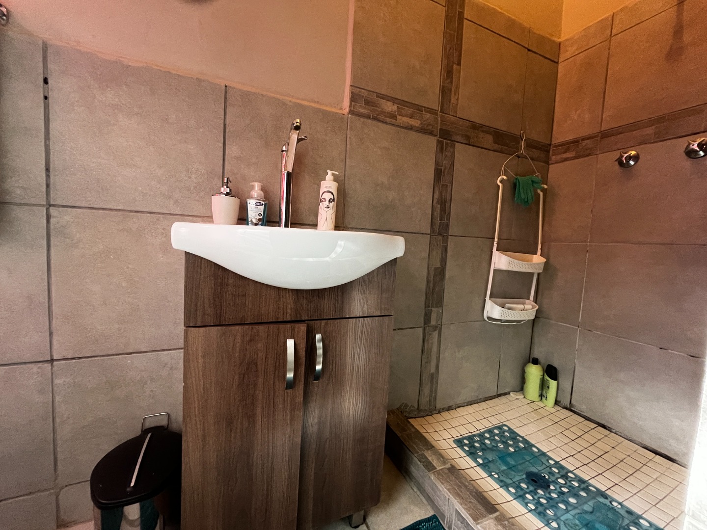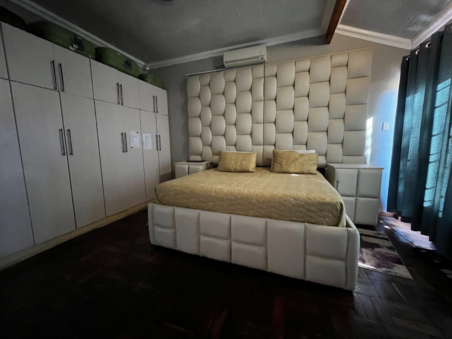 Step outside to a swimming pool with a built-in braai, creating the perfect space for gatherings with family and friends. The neat garden is complemented by a JoJo tank, ensuring a reliable water supply, while the secure garage with electric doors adds to the home’s practicality. Staff accommodation and a storeroom provide additional convenience.