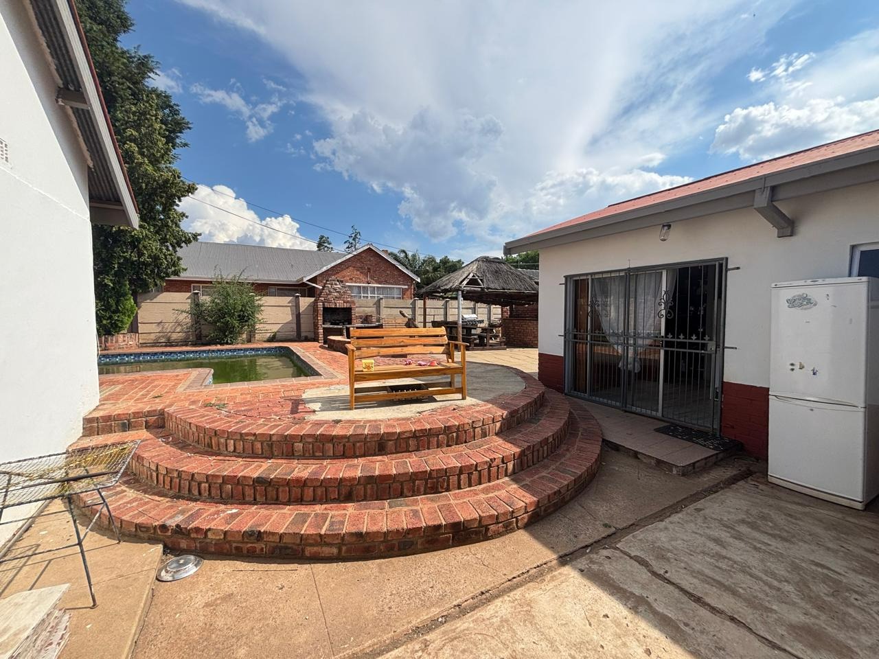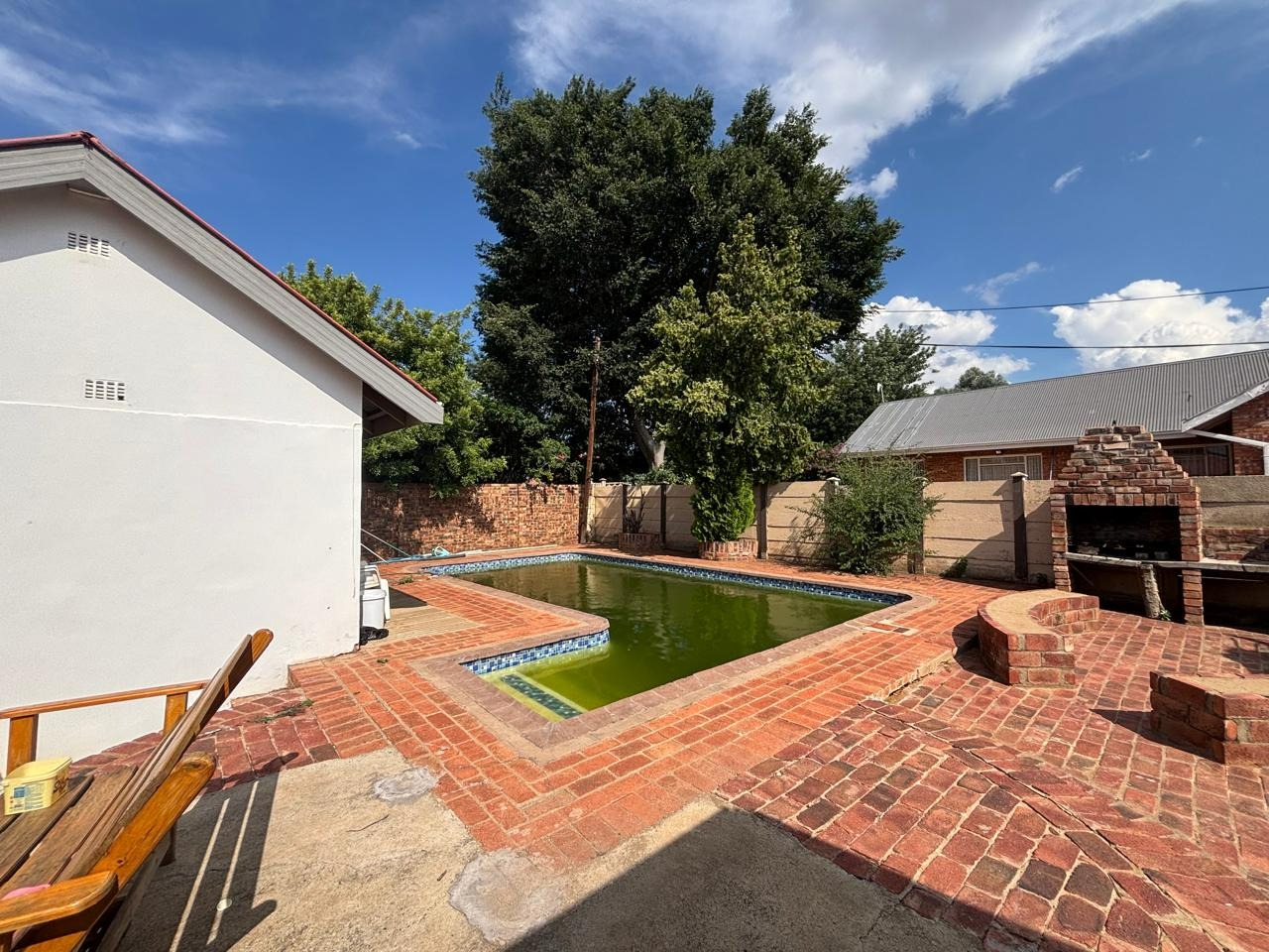 Discover this spacious family home in Heuwelsig, Kimberley, offering a blend of comfort and outdoor enjoyment on a generous 909 sqm erf. The property presents a welcoming kerb appeal with a paved driveway, mature trees, and a secure stone boundary wall, leading to a convenient carport and single garage. The interior features a comfortable and functional layout, including a spacious, open-plan living area and a dedicated family TV room. A separate study provides an ideal space for work. The home includes a well-appointed kitchen and a practical laundry room. Accommodation comprises three well-proportioned bedrooms, each with natural light, ceiling fans, and built-in wardrobes for ample storage. There are two bathrooms, including one en-suite, catering to household needs. Outdoor living is a highlight, centered around a clean swimming pool with tiled steps. An extensive paved area surrounds the pool with braai area. The property also boasts a garden, domestic rooms, and outdoor play area. Enhanced security features include an access gate, CCTV, burglar bars, and security gates.