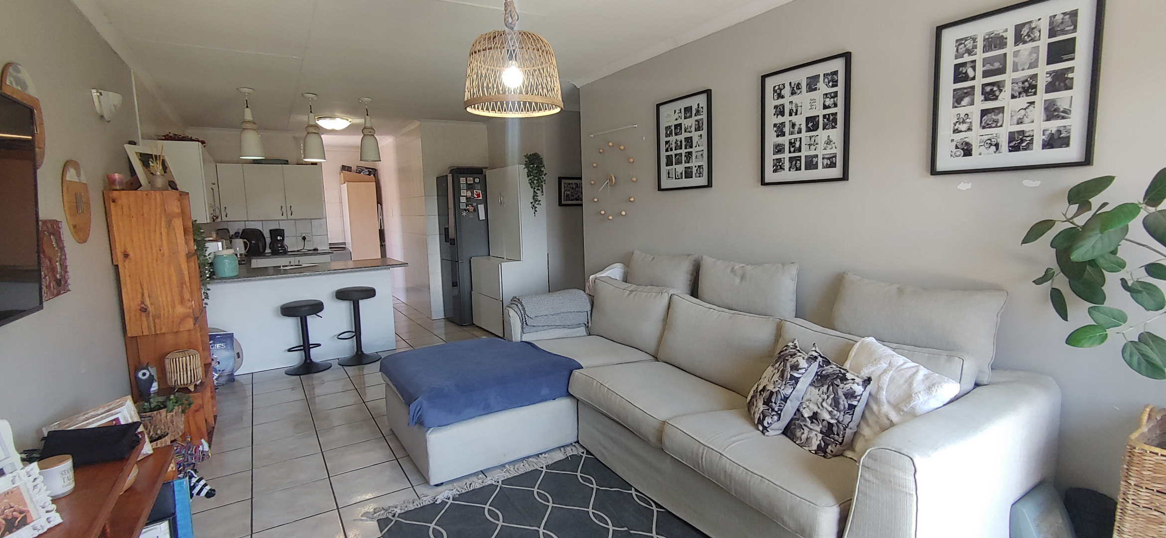 Step inside to an inviting open-plan living space, seamlessly connecting the lounge and dining areas, perfect for both relaxation and entertaining. The functional kitchen, complete with a breakfast bar and ample cabinetry, forms the heart of the home. Tiled flooring extends throughout, offering a practical and cohesive aesthetic, complemented by air conditioning for year-round comfort.