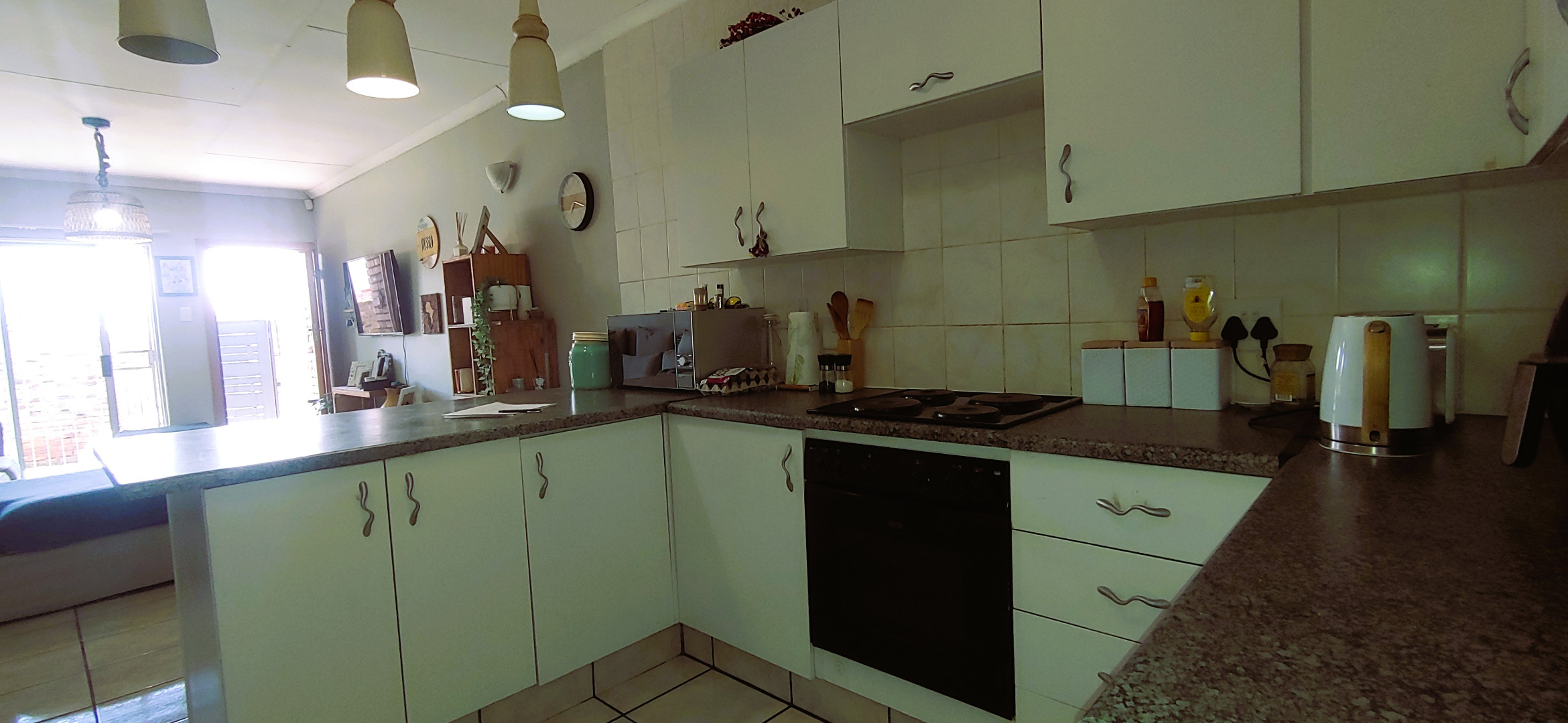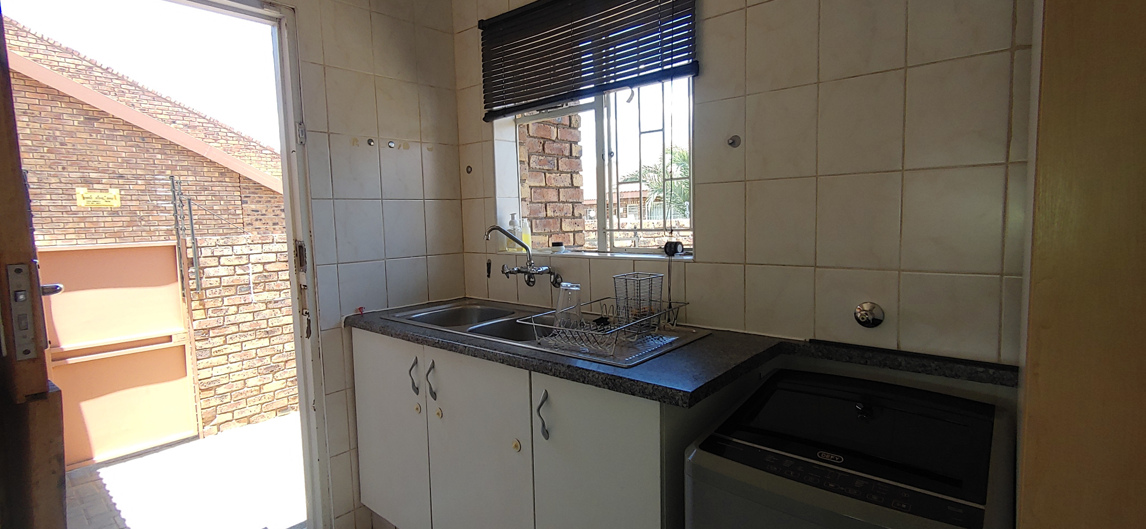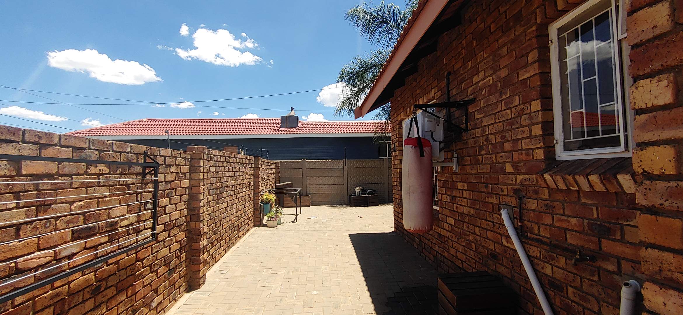 Discover this charming 3-bedroom, 2-bathroom residence nestled within a complex in the suburban heart of Riviera, Kimberley. This well-maintained face-brick home immediately impresses with its neat exterior, tiled roof, and private, established garden. A brick-paved pathway encircles the house, leading to a welcoming entrance, while high boundary walls topped with electric fencing and robust burglar bars ensure peace of mind and enhanced security.