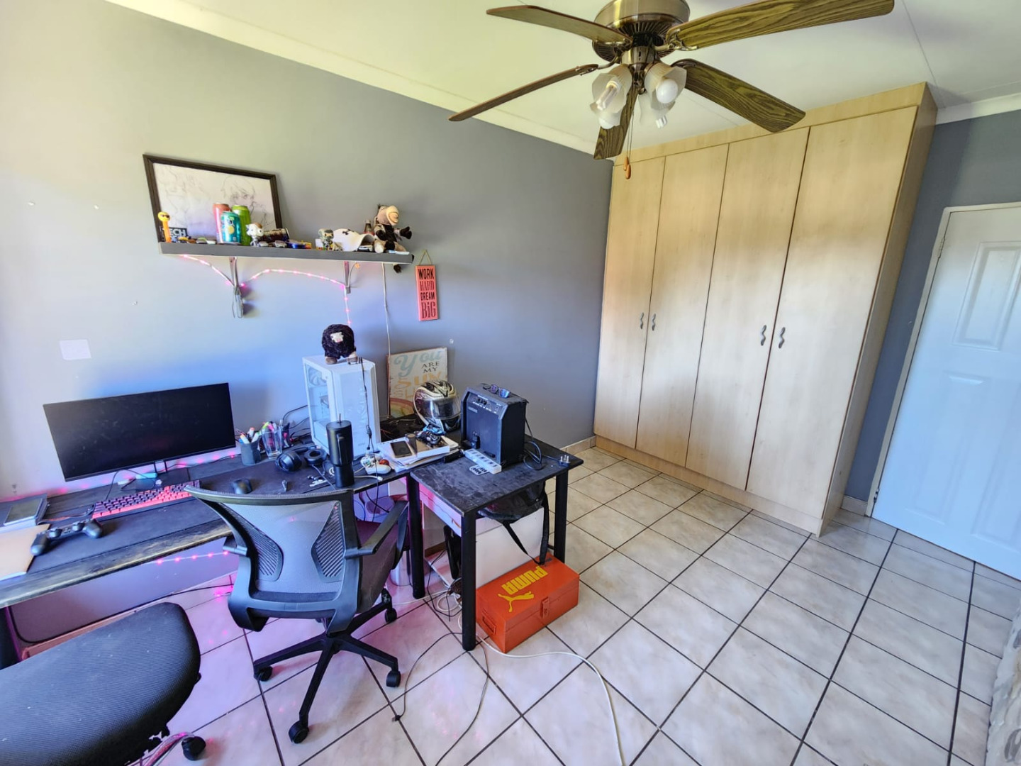 Step inside to an inviting open-plan living space, seamlessly connecting the lounge and dining areas, perfect for both relaxation and entertaining. The functional kitchen, complete with a breakfast bar and ample cabinetry, forms the heart of the home. Tiled flooring extends throughout, offering a practical and cohesive aesthetic, complemented by air conditioning for year-round comfort.