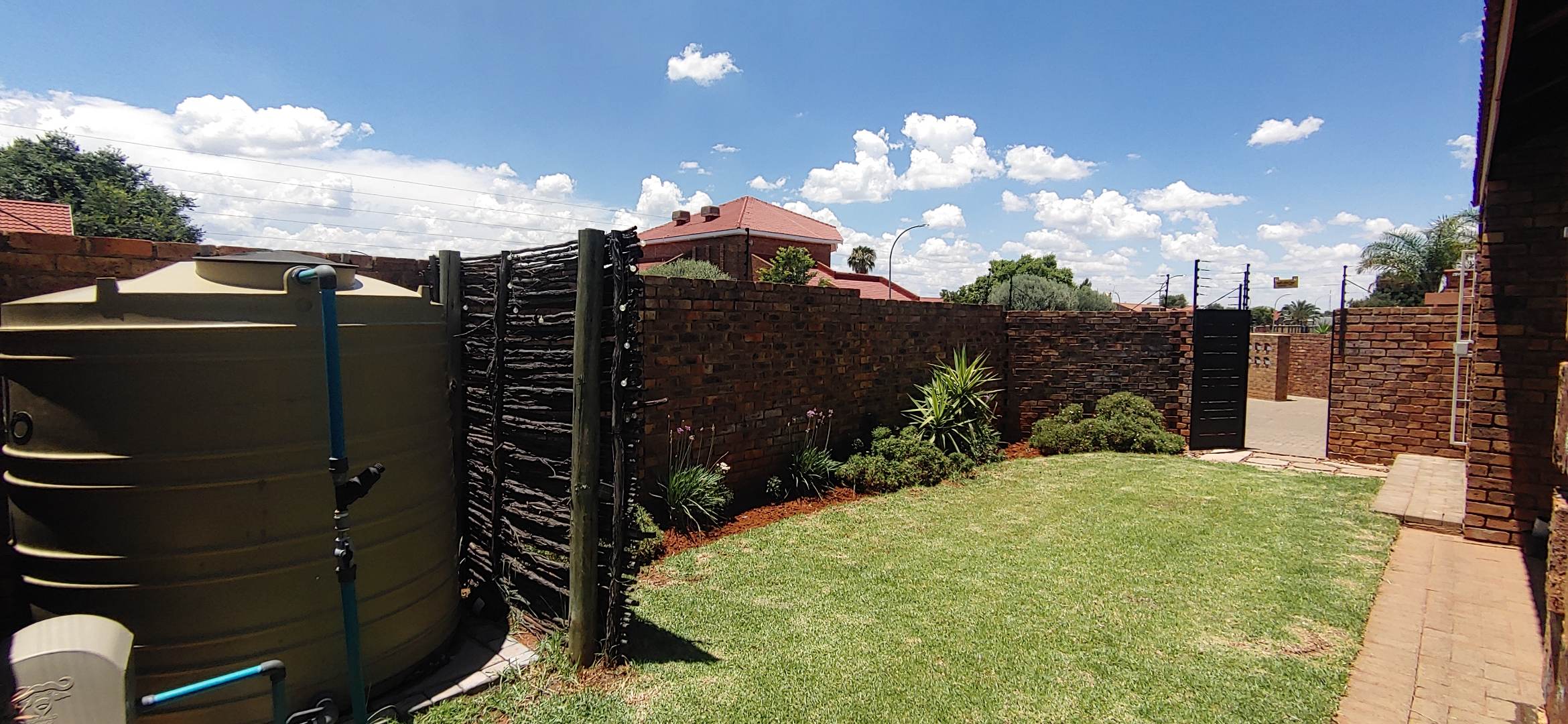Discover this charming 3-bedroom, 2-bathroom residence nestled within a complex in the suburban heart of Riviera, Kimberley. This well-maintained face-brick home immediately impresses with its neat exterior, tiled roof, and private, established garden. A brick-paved pathway encircles the house, leading to a welcoming entrance, while high boundary walls topped with electric fencing and robust burglar bars ensure peace of mind and enhanced security.
