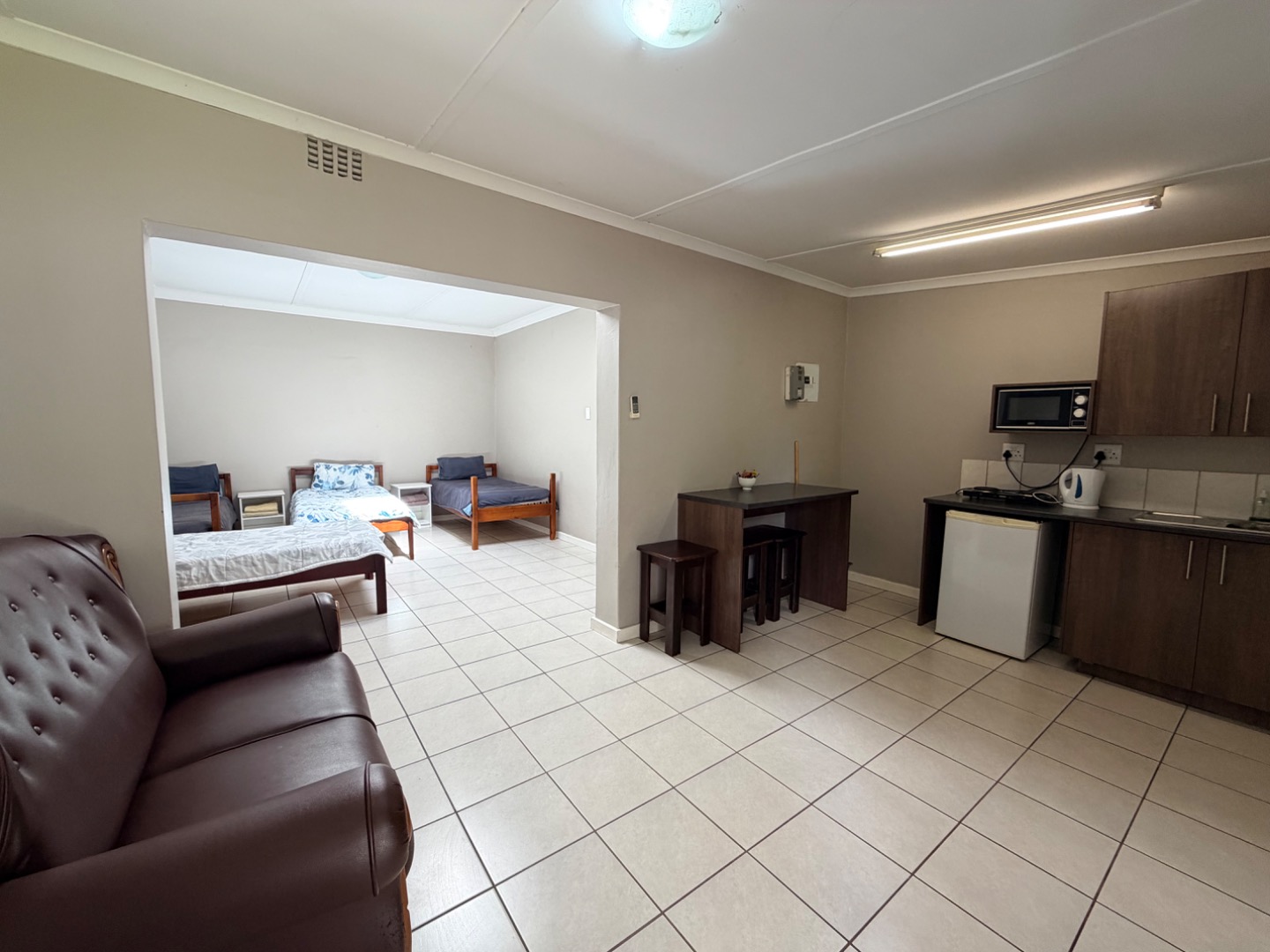 The guest accommodation component is fully furnished and equipped, offering overnight, short-term, and potential long-term lodging with a total capacity of 92 beds. This operation currently generates an income of between R100,000 and R150,000 per month, with pre-paid electricity supplied by Sol Plaatje Municipality. The property includes large lock-up sheds ideal for workshops, storage, or agricultural equipment.