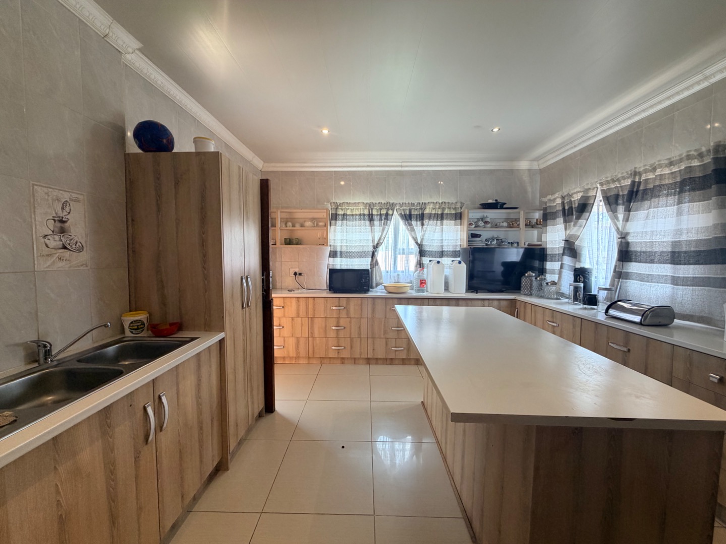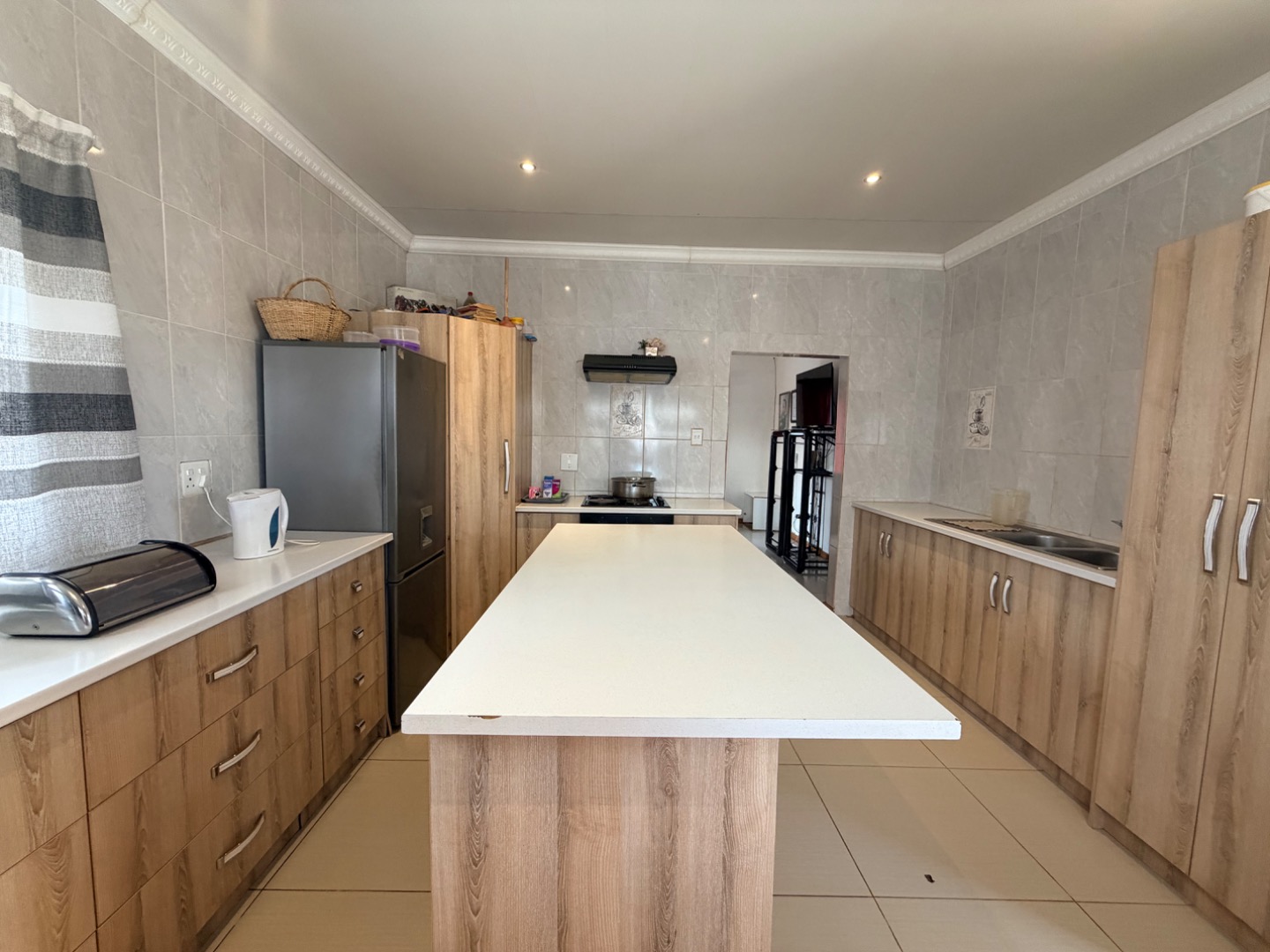 Upon entering through the front door, you are welcomed into a spacious, modern kitchen fitted with an island centre cupboard and generous countertop space. Ample built-in cupboards and tiled flooring throughout the home contribute to its contemporary, low-maintenance appeal. The kitchen flows effortlessly into a large open family lounge and dining area, ideal for comfortable everyday living and entertaining.