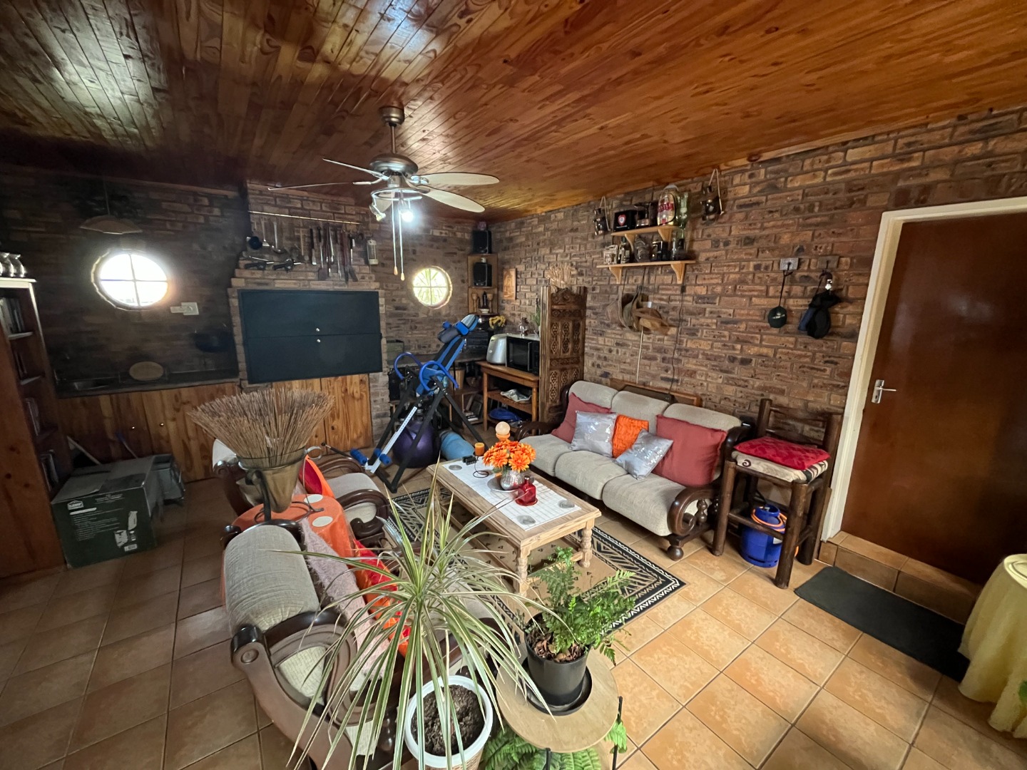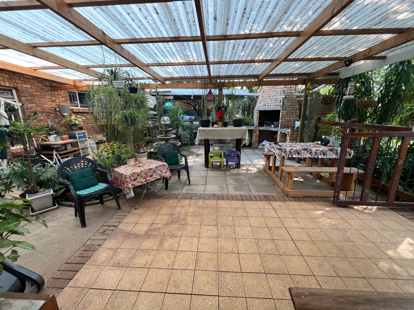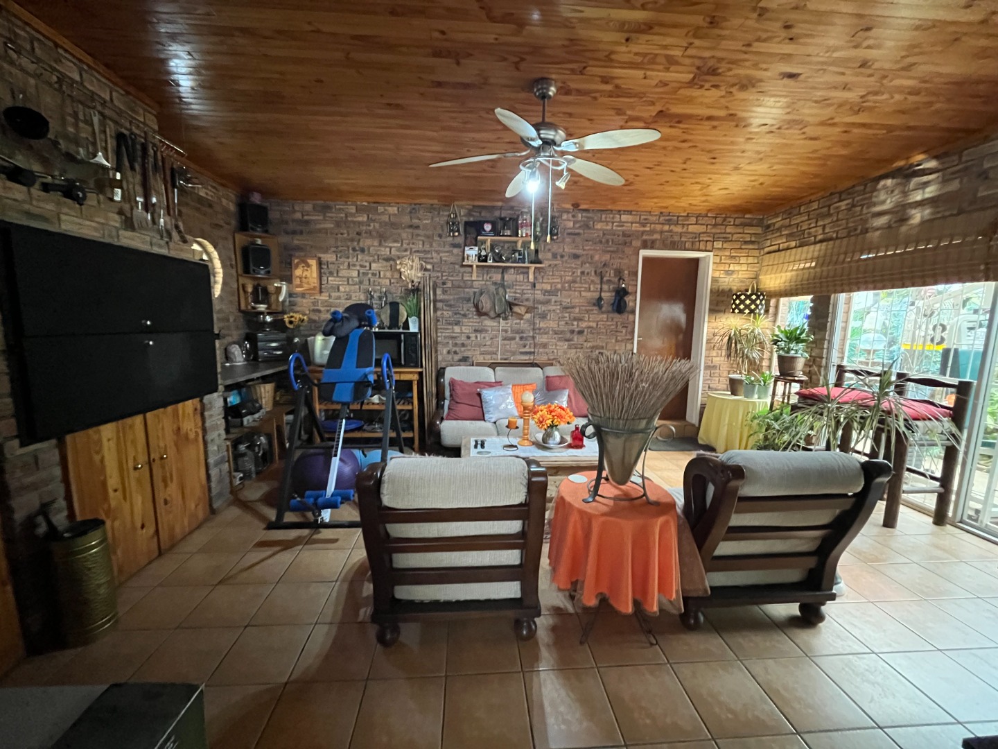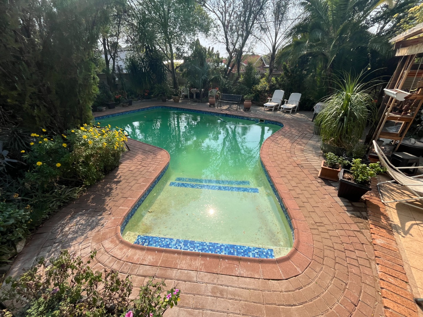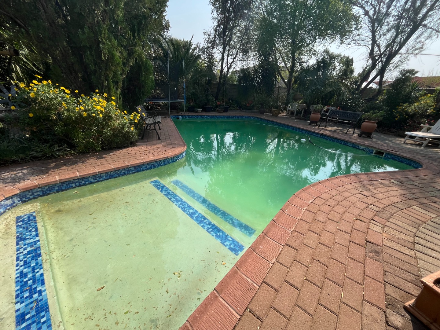 An inviting entertainment area with a built-in braai sets the stage for memorable gatherings with family and friends. The sparkling swimming pool — complete with all equipment — promises hours of fun in the sun, while the beautifully maintained garden, fitted with an irrigation system, JoJo tank, and borehole, ensures year-round greenery and low maintenance.