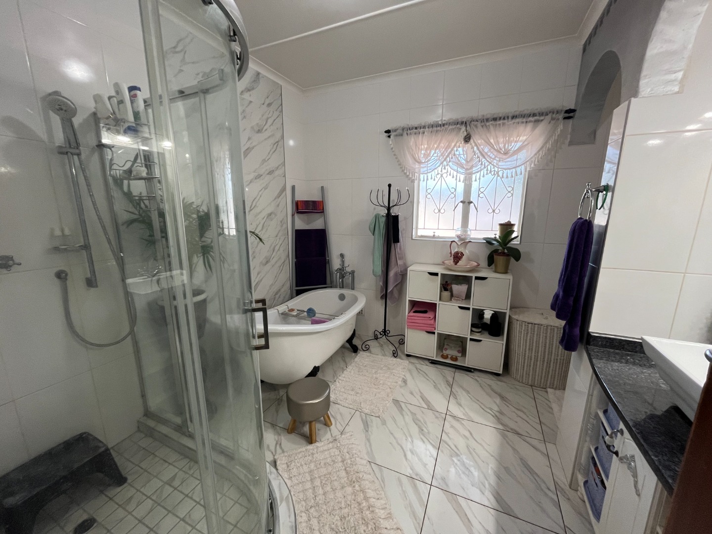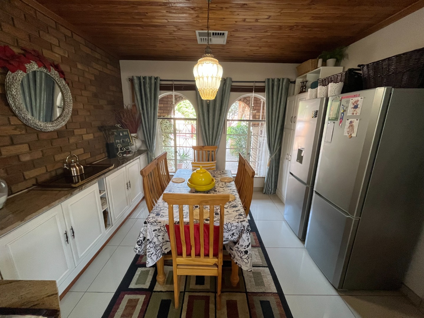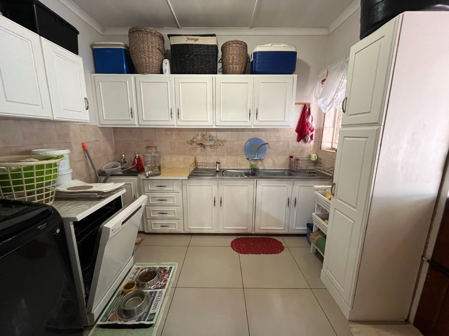 The kitchen is well-equipped with ample built-in cupboards, a stove, and a separate scullery to keep things neat and organized. With four spacious bedrooms and two well-appointed bathrooms, plus a convenient guest toilet, the home offers plenty of room for the whole family.