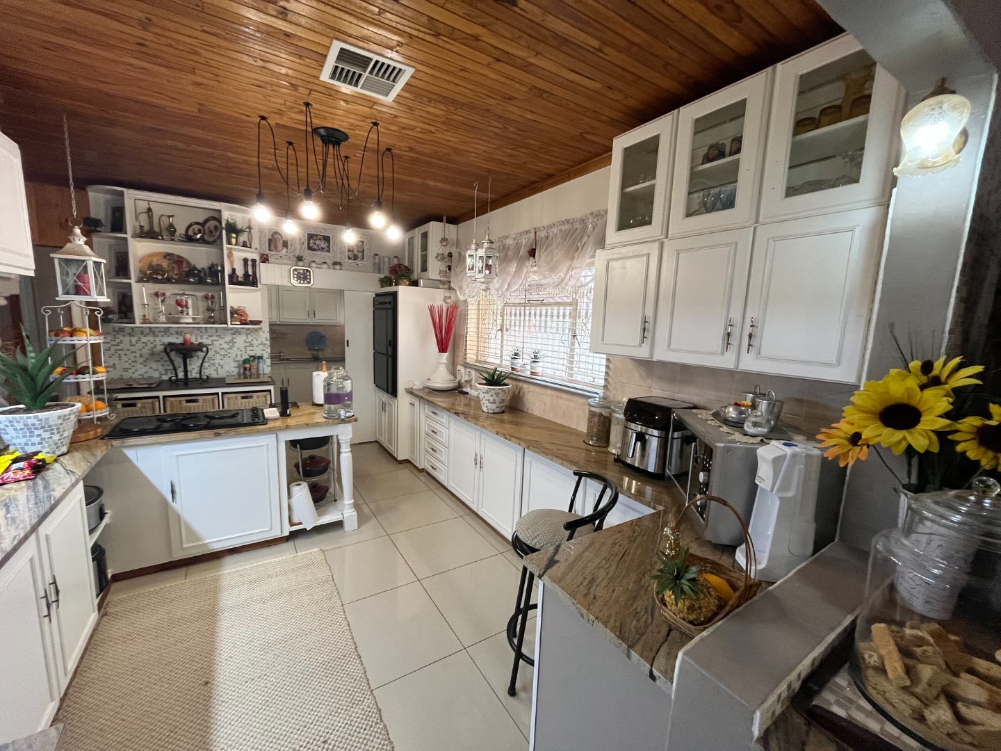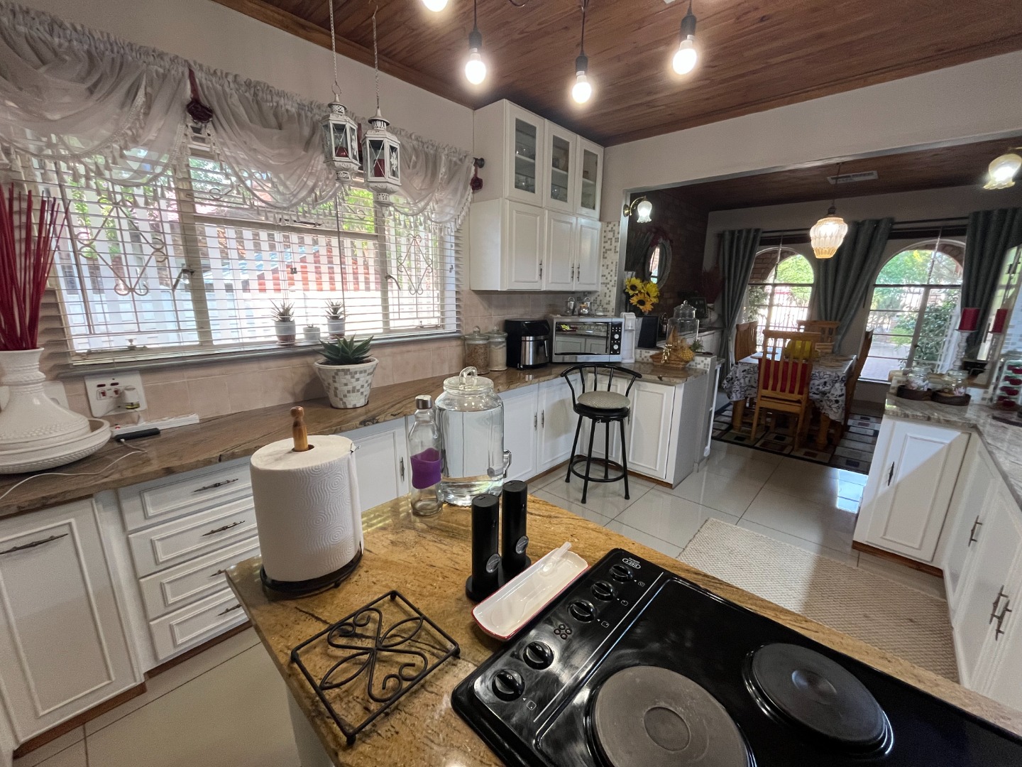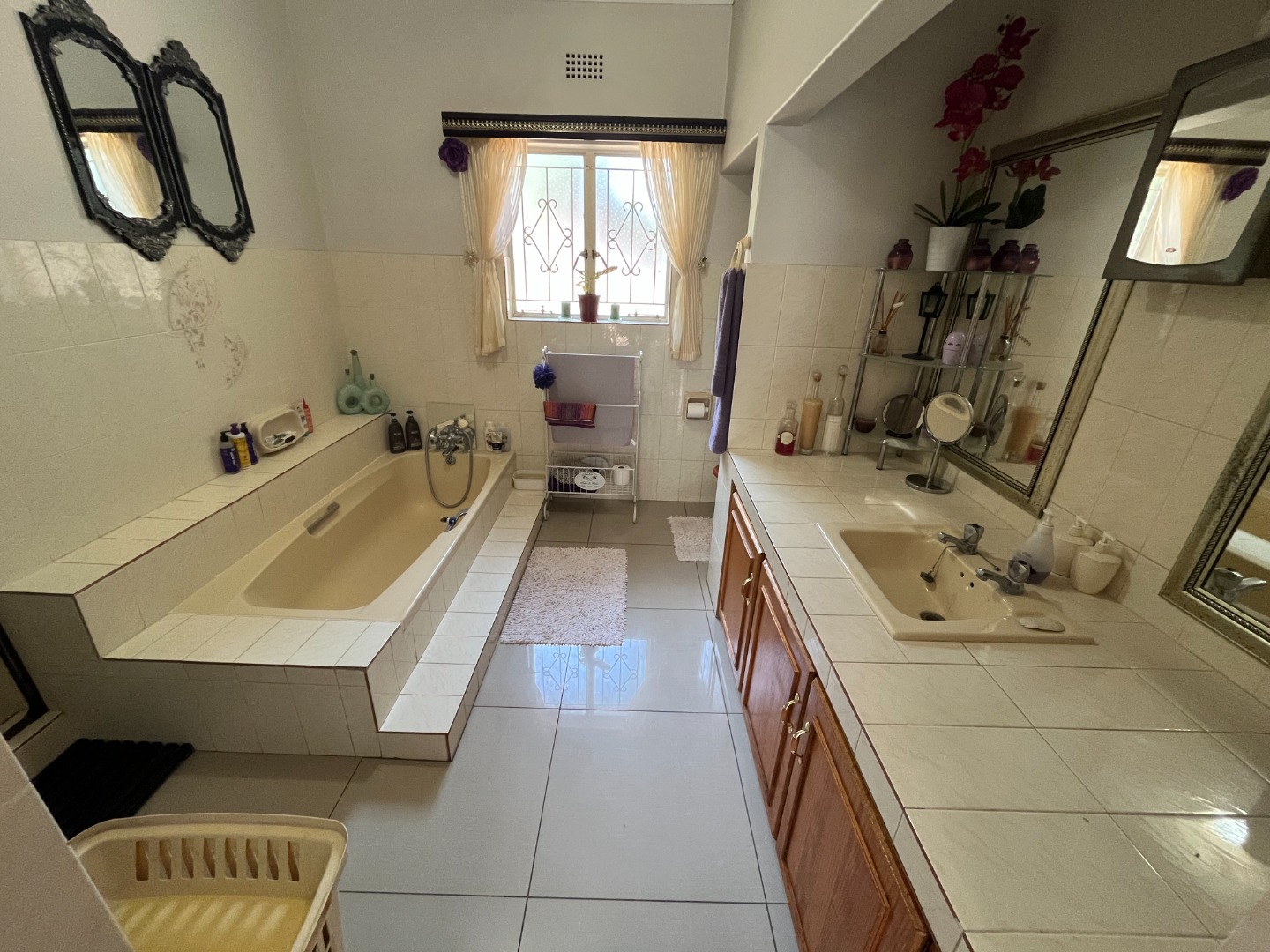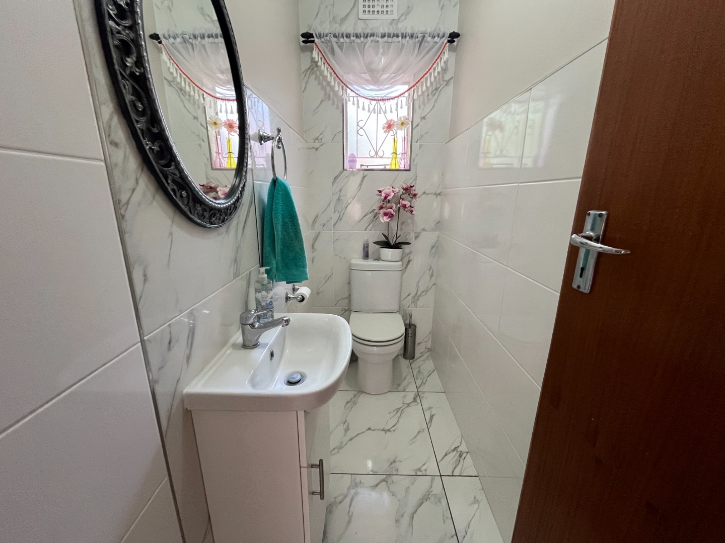 The kitchen is well-equipped with ample built-in cupboards, a stove, and a separate scullery to keep things neat and organized. With four spacious bedrooms and two well-appointed bathrooms, plus a convenient guest toilet, the home offers plenty of room for the whole family.