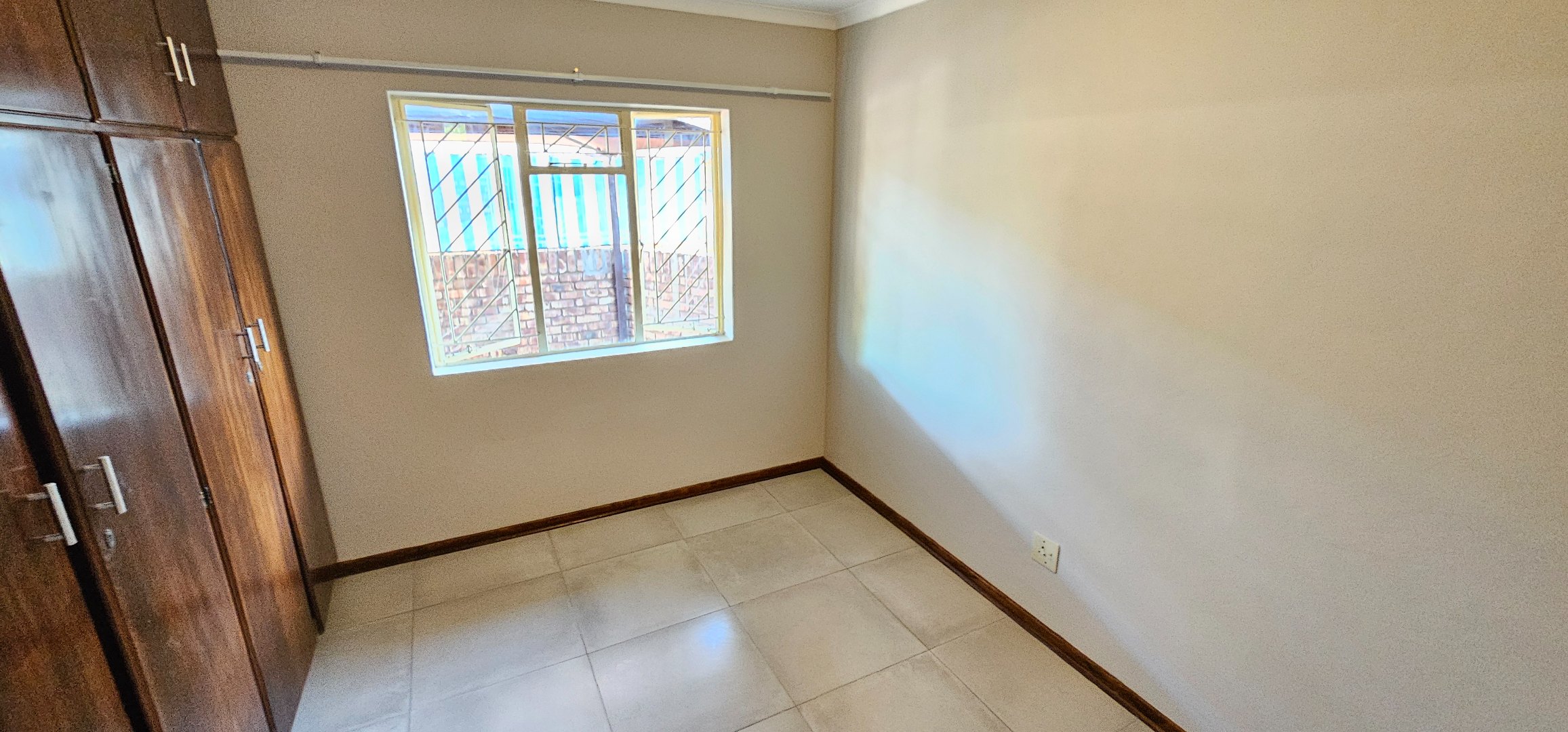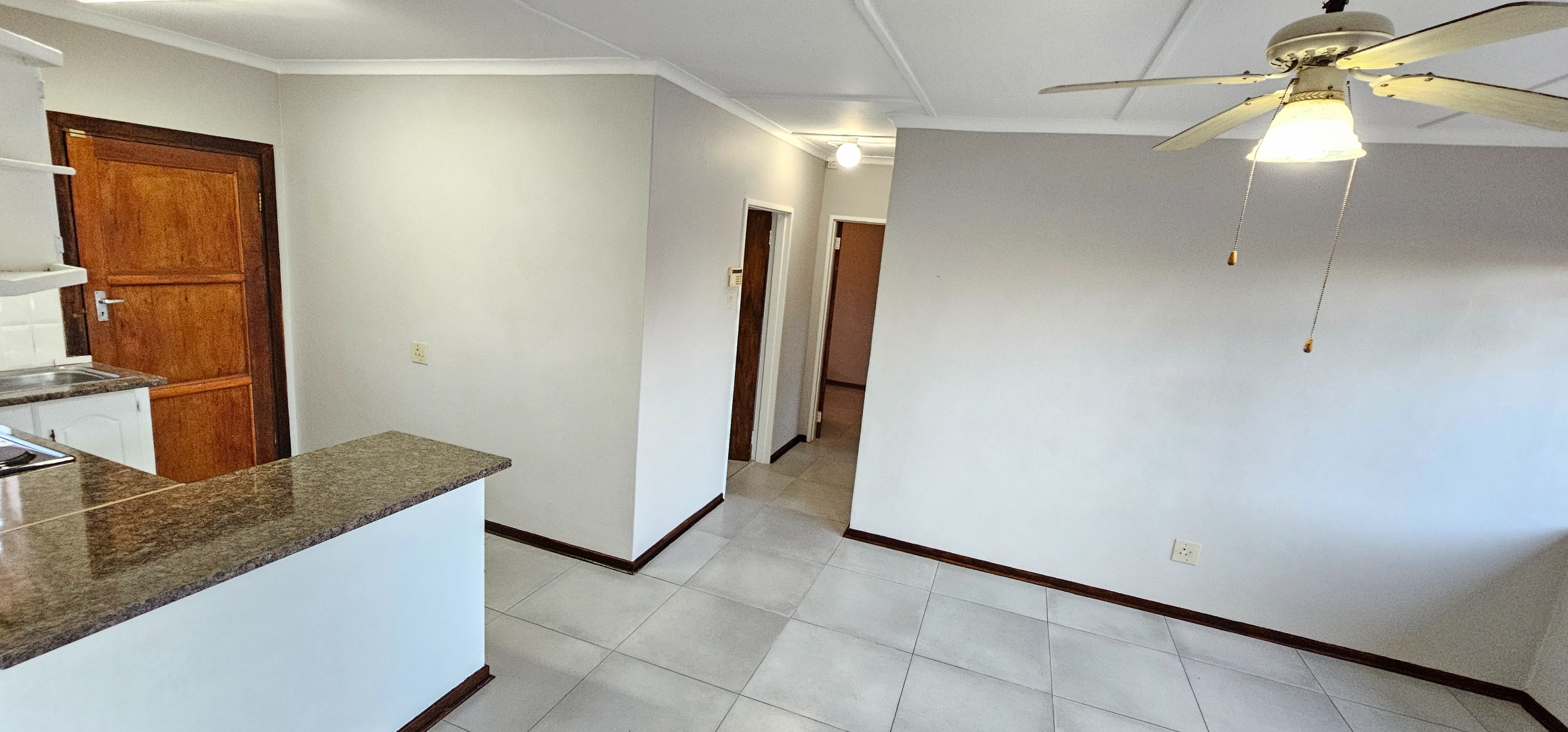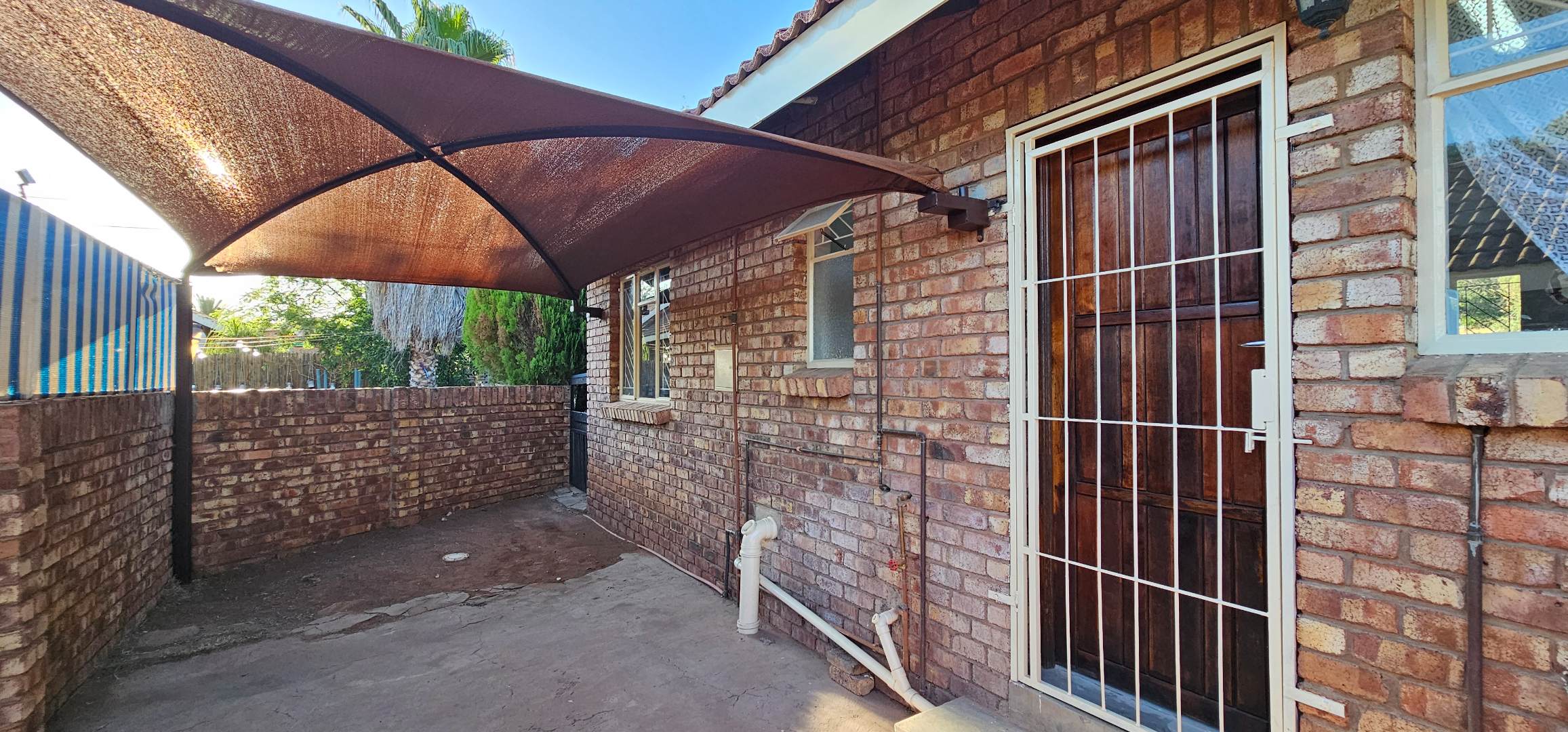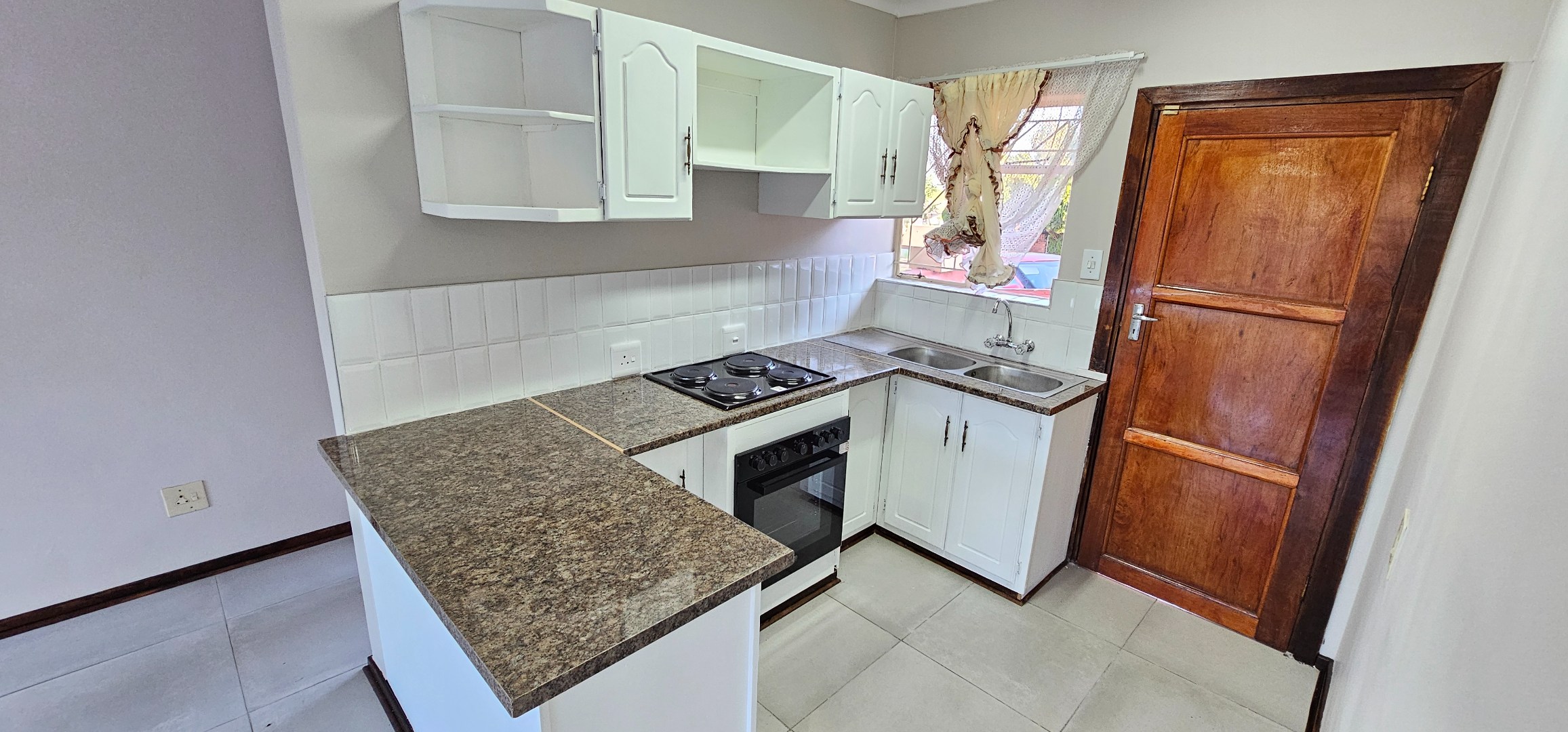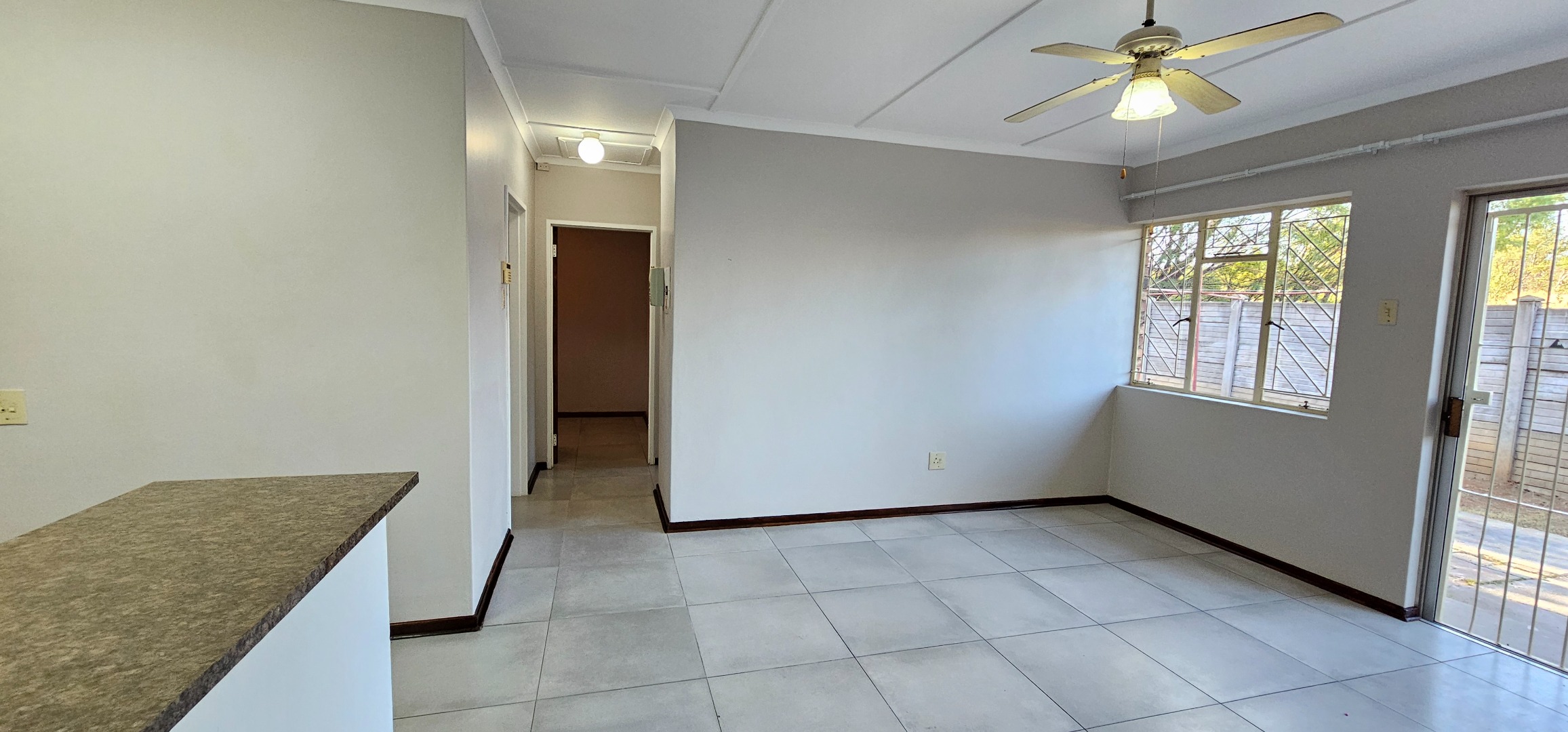 Open plan kitchen and living area. Kitchen with build in cupboards and stove. Lounge sliding door walking out on pet friendly garden. Bedrooms with tiled flooring and build in cupboards. 1 Bathroom. Single garage and single carport and open parking in front of carport and garage.