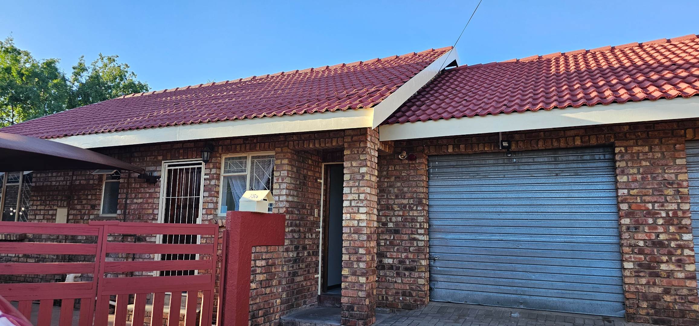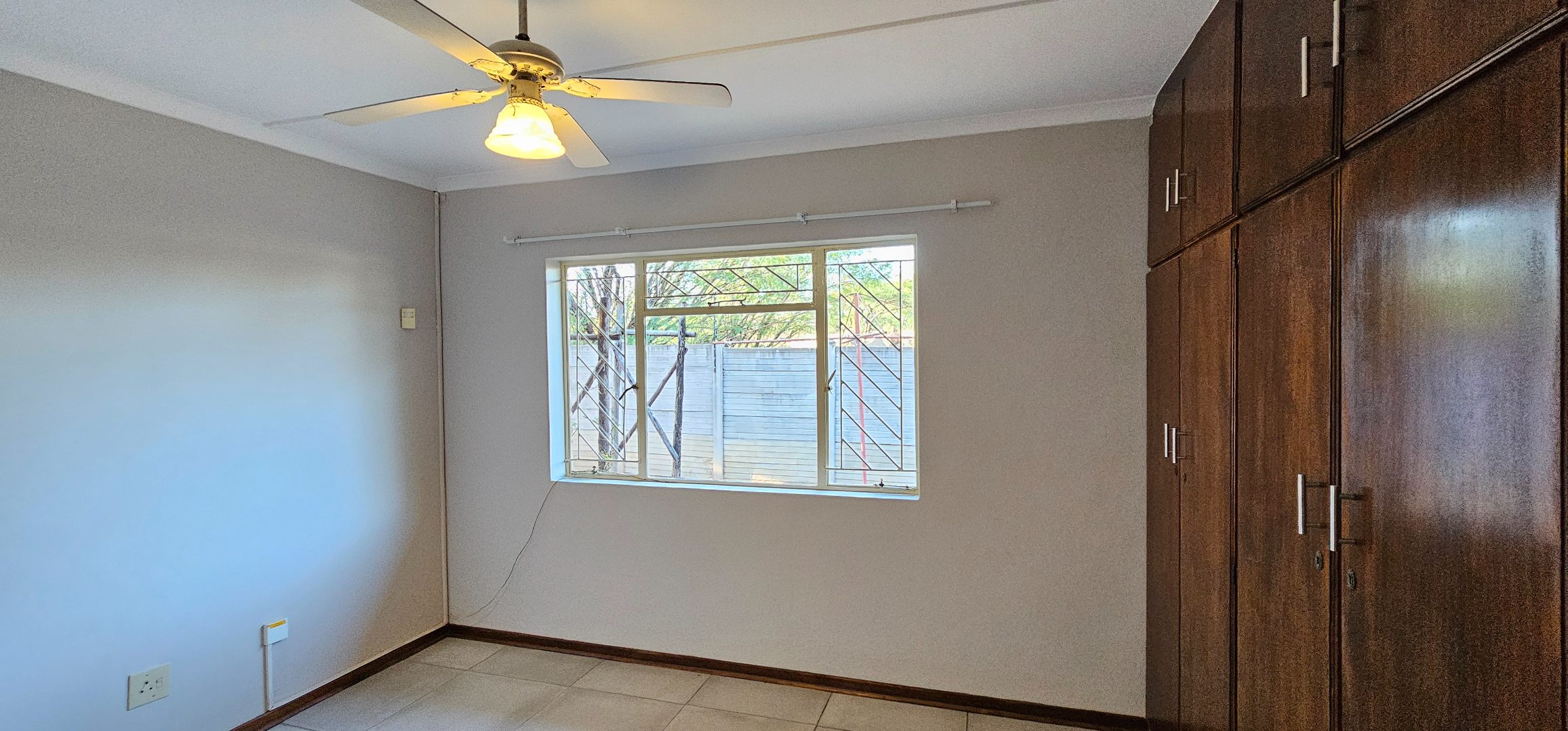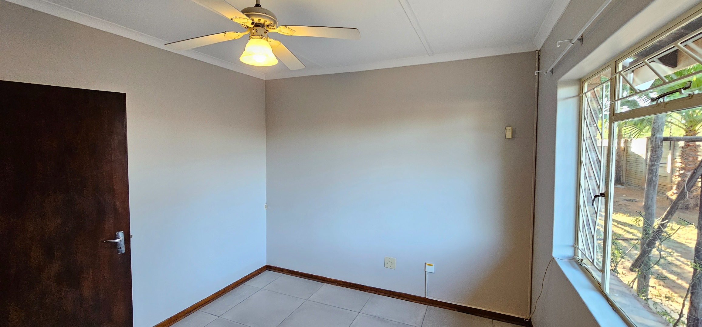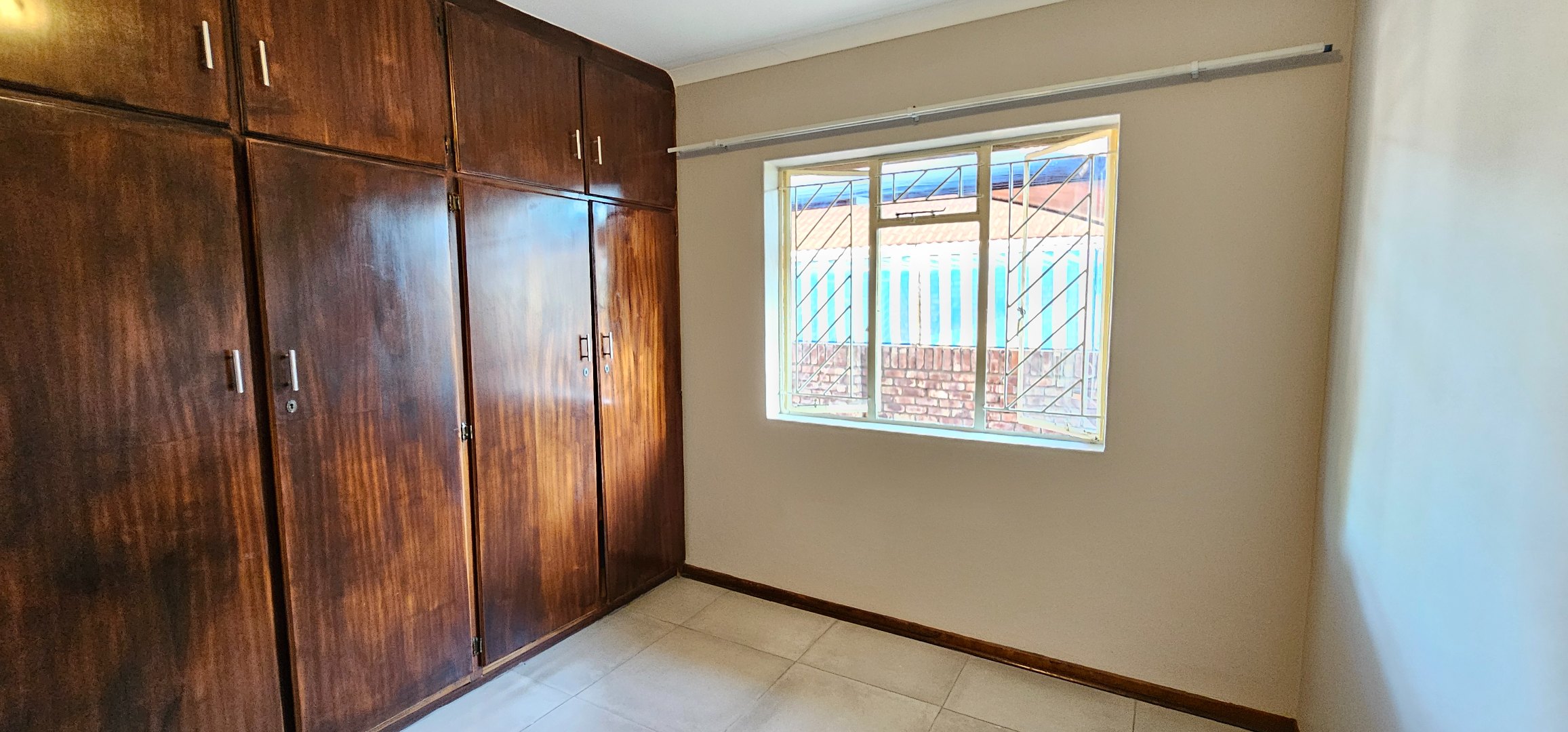 Open plan kitchen and living area. Kitchen with build in cupboards and stove. Lounge sliding door walking out on pet friendly garden. Bedrooms with tiled flooring and build in cupboards. 1 Bathroom. Single garage and single carport and open parking in front of carport and garage.