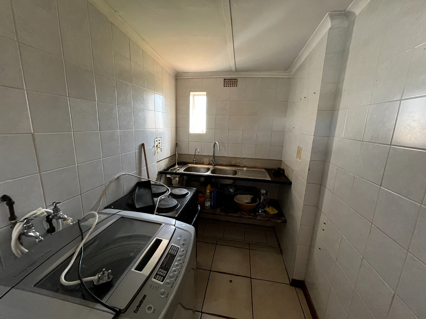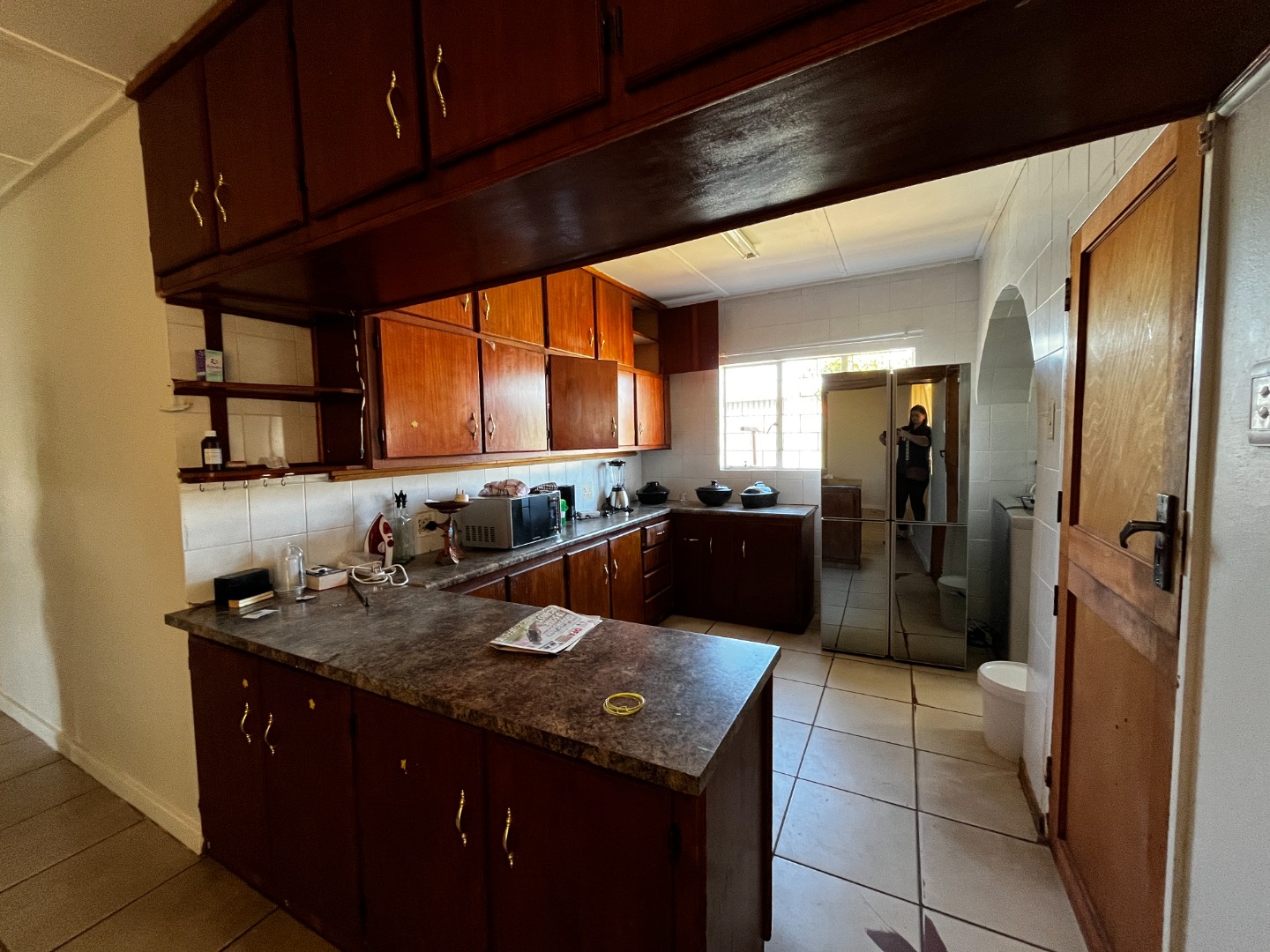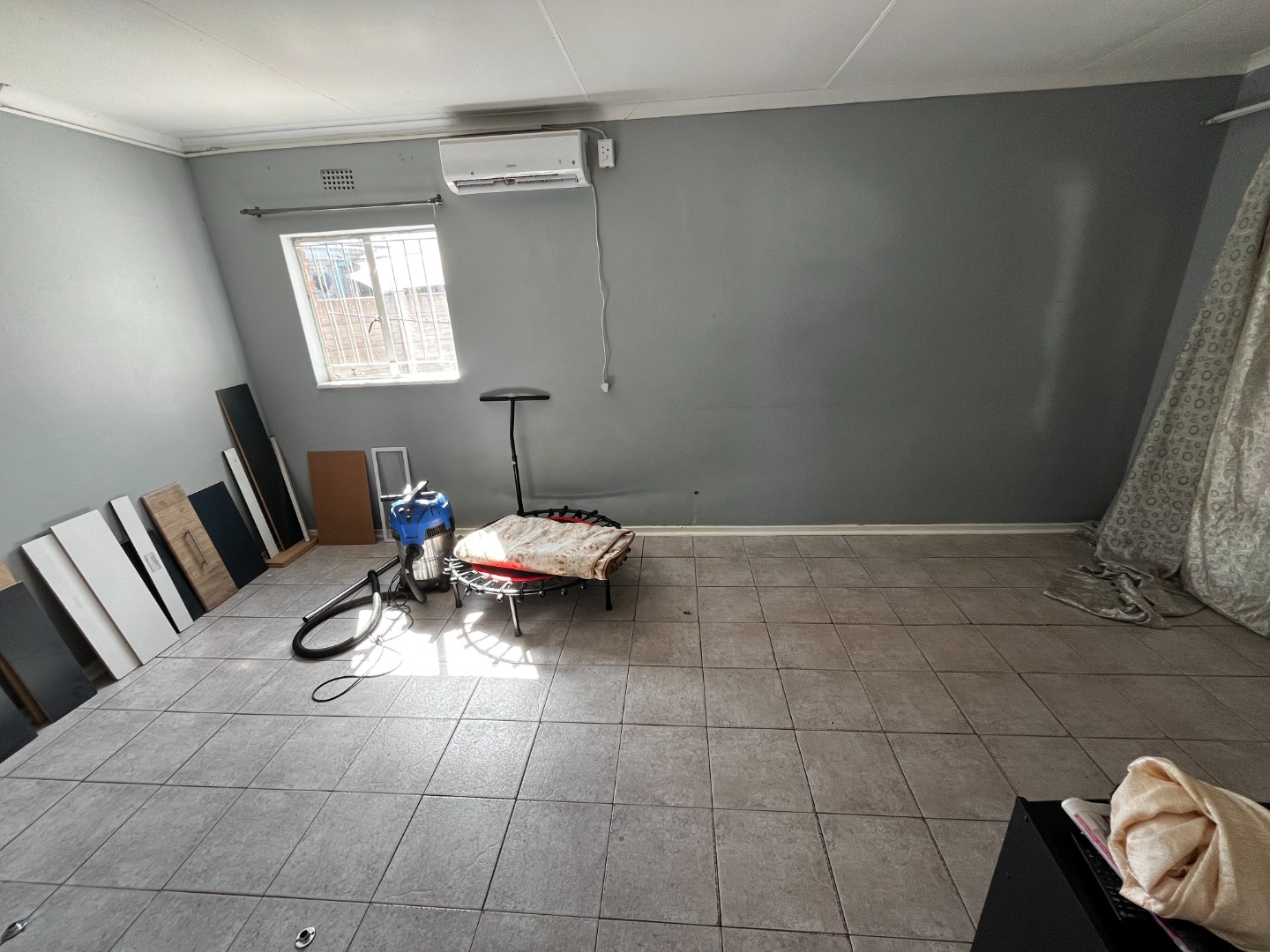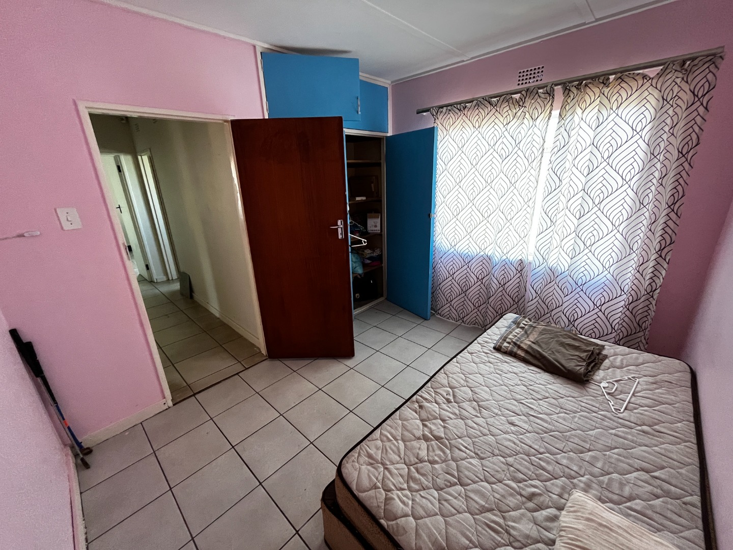 Outside, the property has a refreshing swimming pool, perfect for relaxation and entertaining. The large paved areas around the home ensure low maintenance, while the single garage and two additional parking spaces cater to all your vehicle needs. Security is enhanced with burglar bars on windows, offering peace of mind for residents.