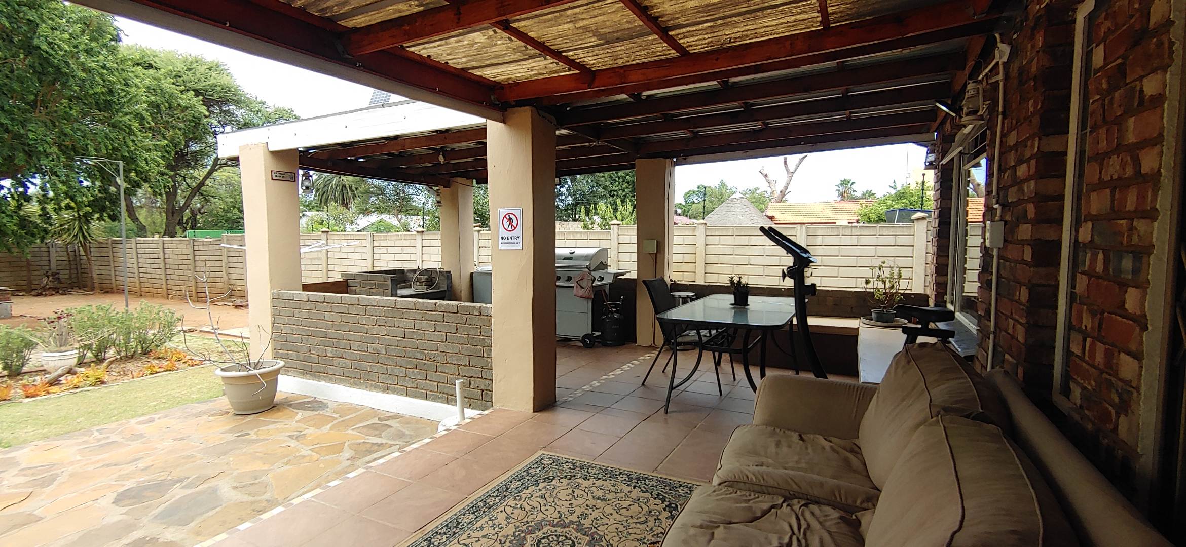 The property boasts a generous 1334 sqm erf, offering ample outdoor space for various activities. Enjoy relaxing on the patio or tending to the established garden, which benefits from an irrigation system and a borehole, ensuring lush greenery year-round. Paved areas enhance the property's neat appearance, and three open parking spaces cater to residents and guests. A valuable 1 bedroom, bathroom, flatlet adds versatility, ideal for extended family or potential rental income. Pets are welcome, making this a perfect home for animal lovers.