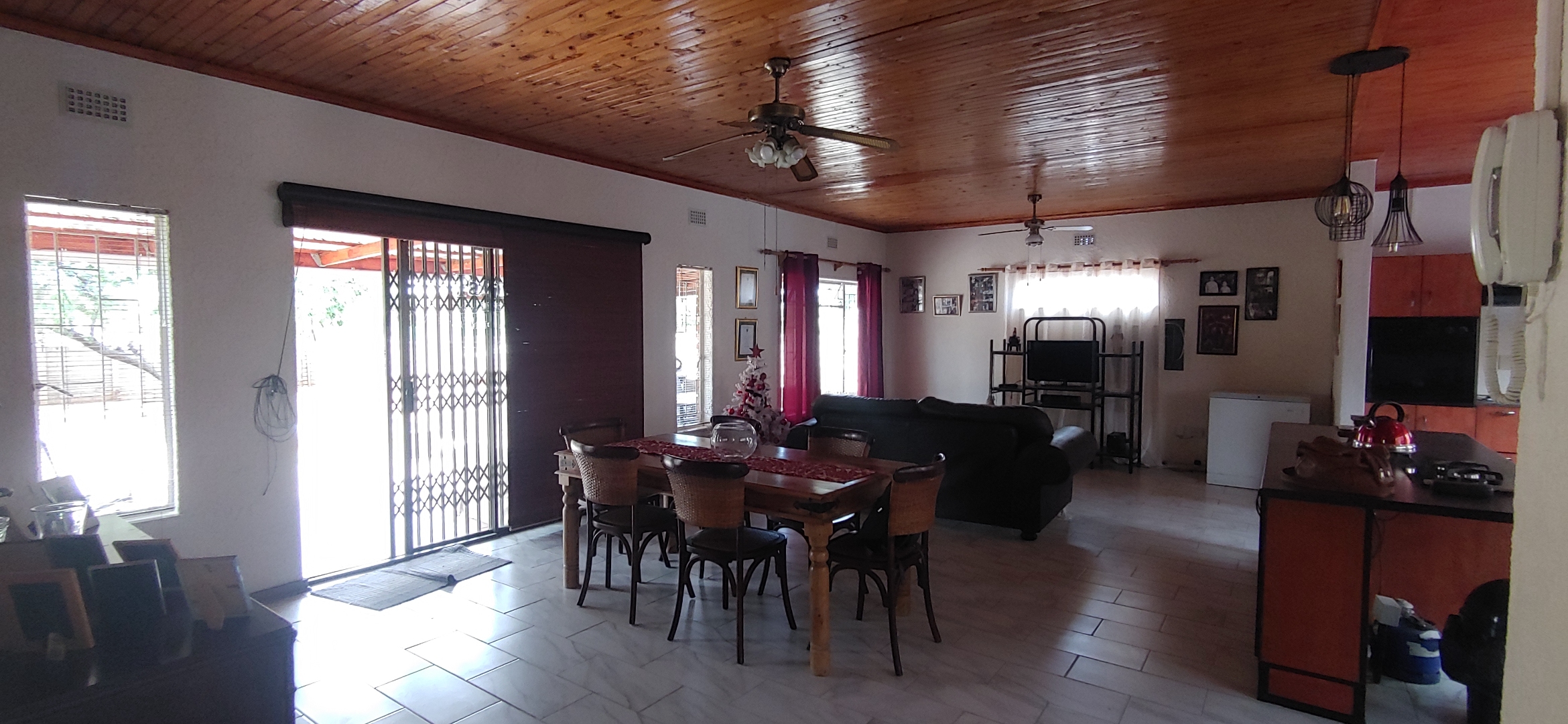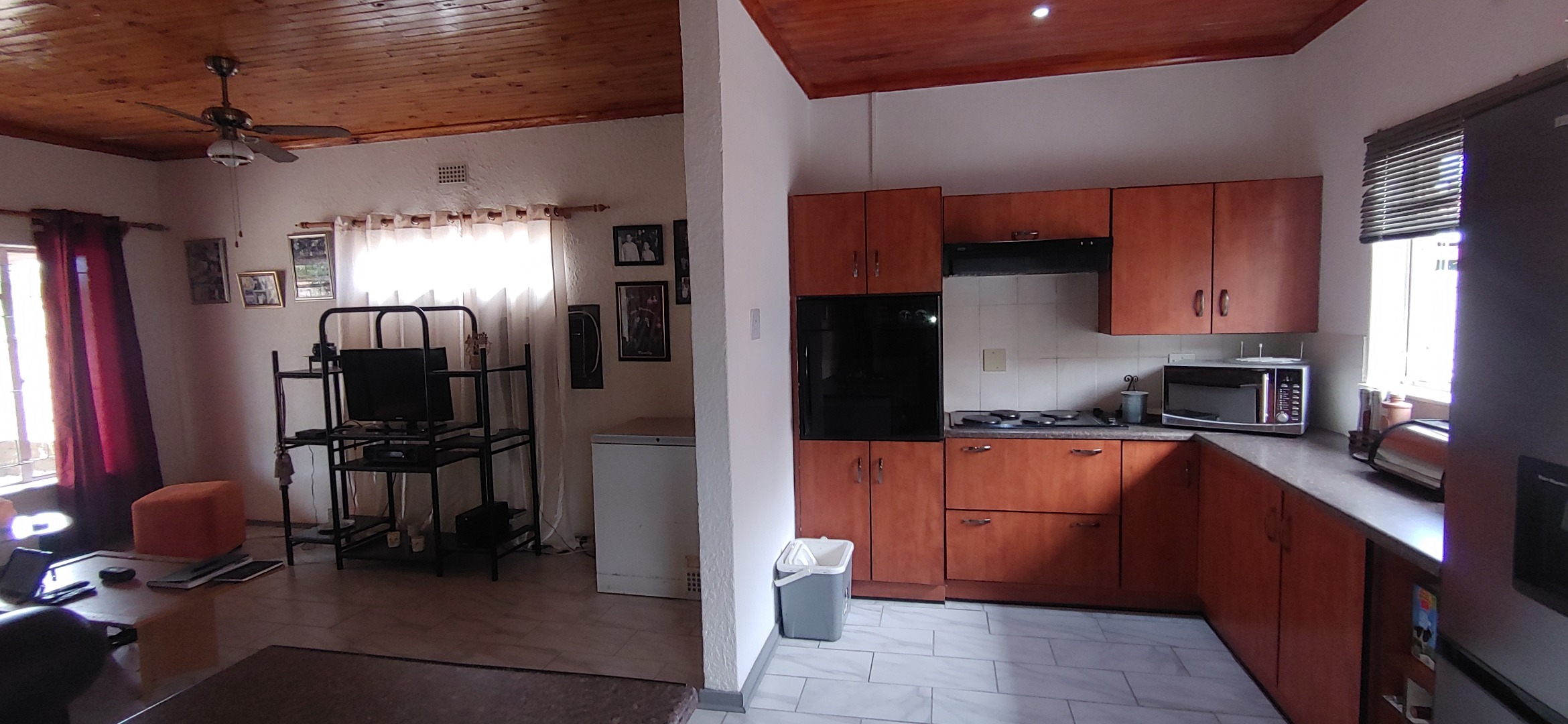 Security is a priority, with features including an alarm system, a secure fence, electric fencing, and an access gate, providing peace of mind. Burglar bars further enhance the safety of the home. This well-maintained residence offers a blend of comfort, space, and security in a sought-after South African location.