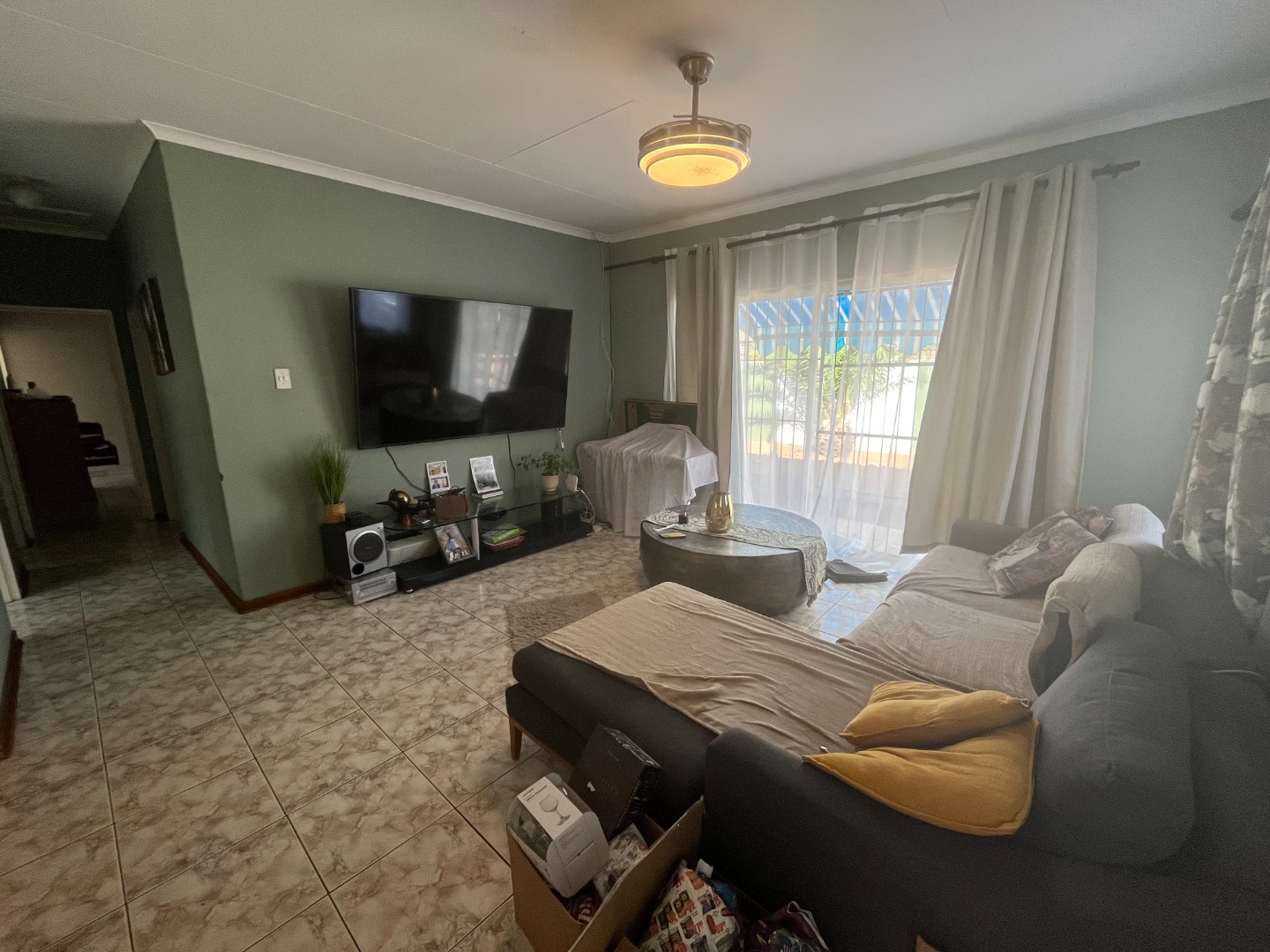 Open plan kitchen and cozy lounge. Bedrooms with build in cupboards and tiled flooring. 2 Bathrooms, main bedroom with own en-suite bathroom.