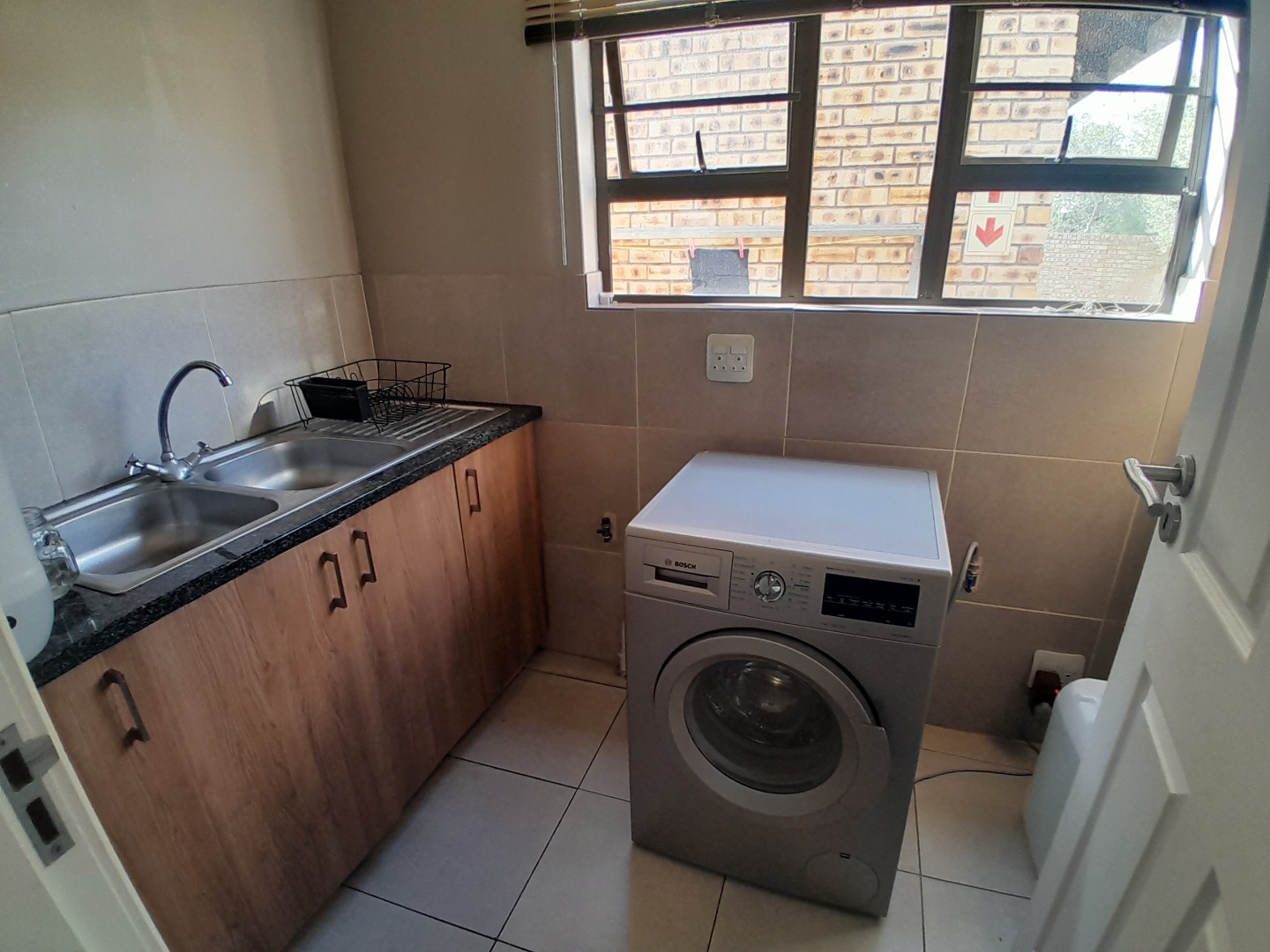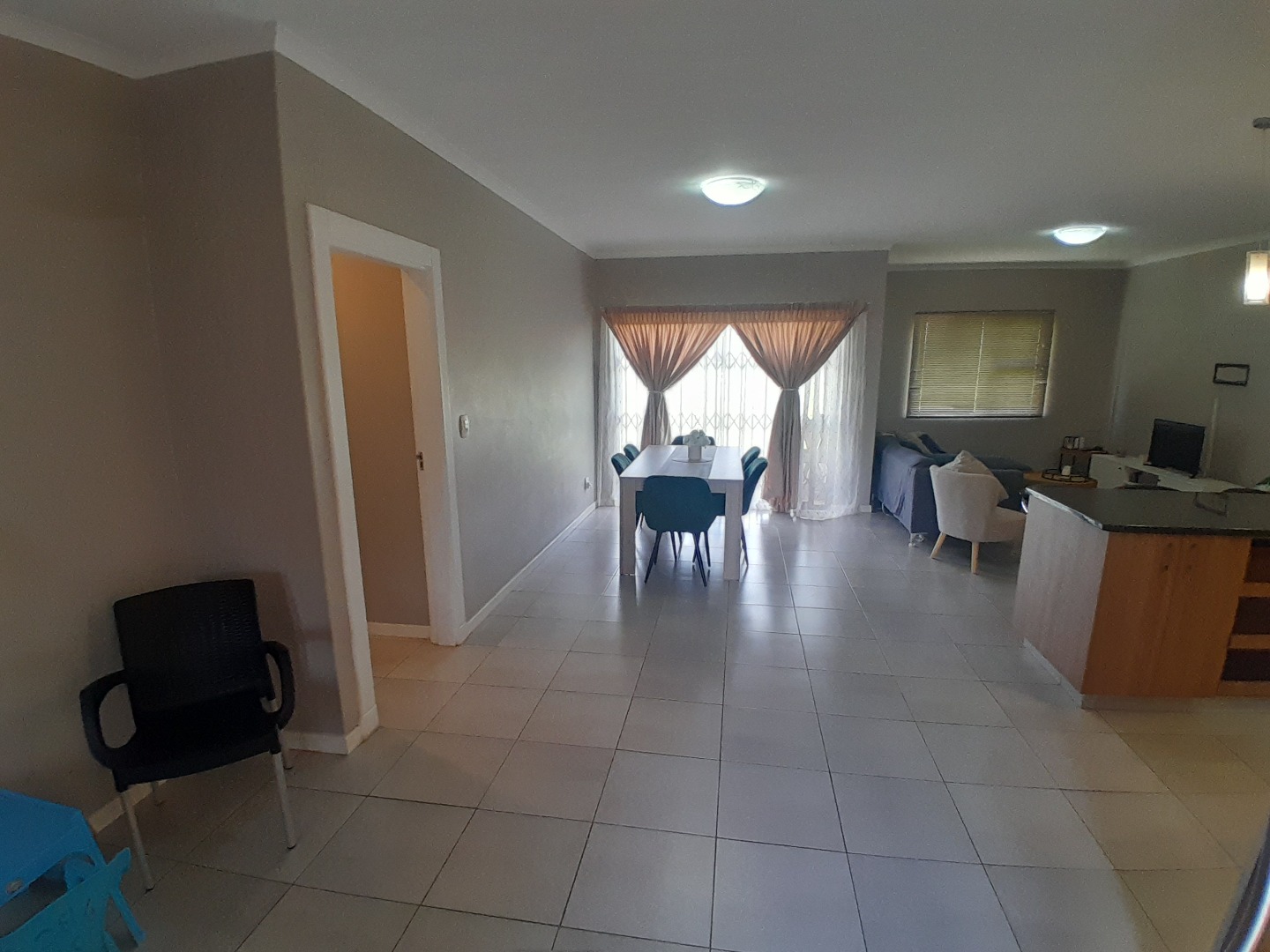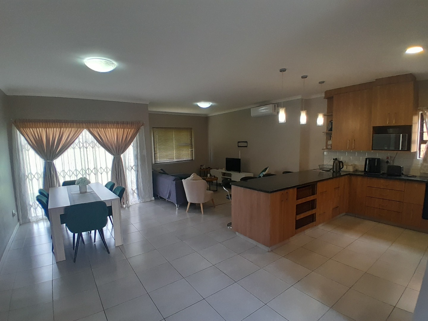 Entering the property you walk into the spacious open plan living and dining area and kitchen with modern features. The kitchen has plenty of cupboards space, stove and a scullery / laundry area.