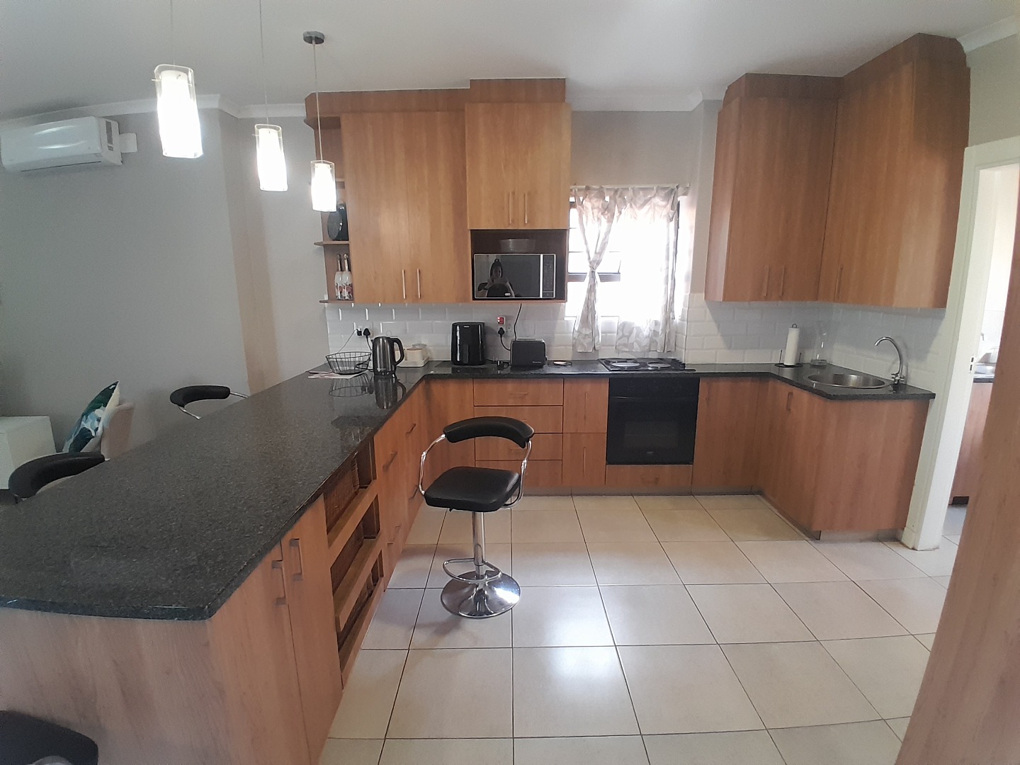 Entering the property you walk into the spacious open plan living and dining area and kitchen with modern features. The kitchen has plenty of cupboards space, stove and a scullery / laundry area.