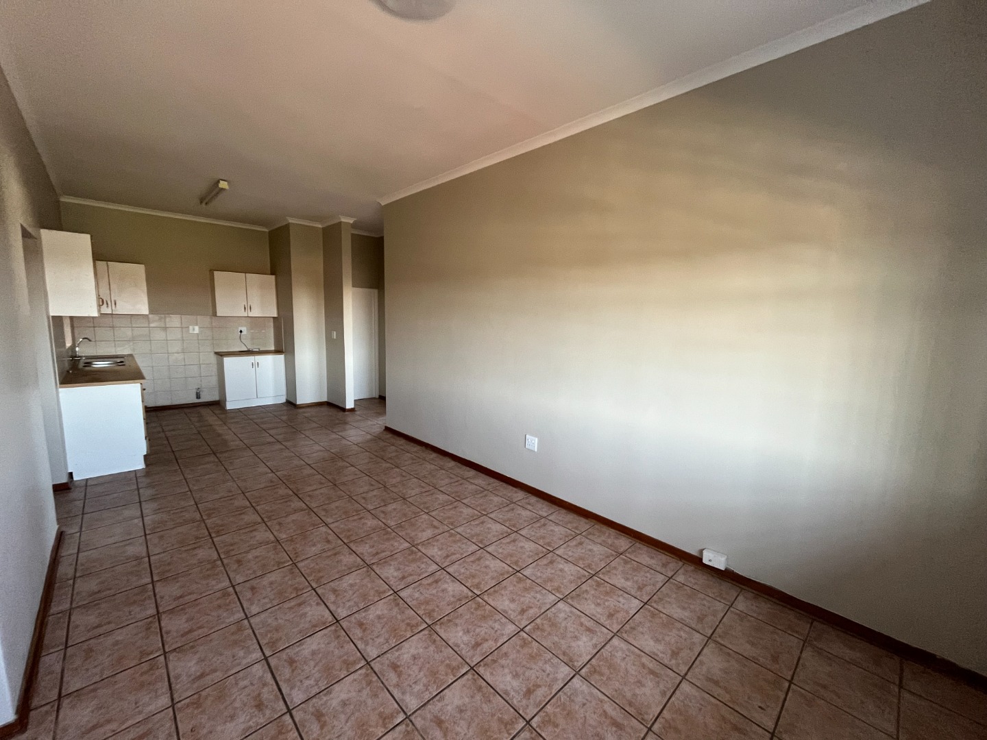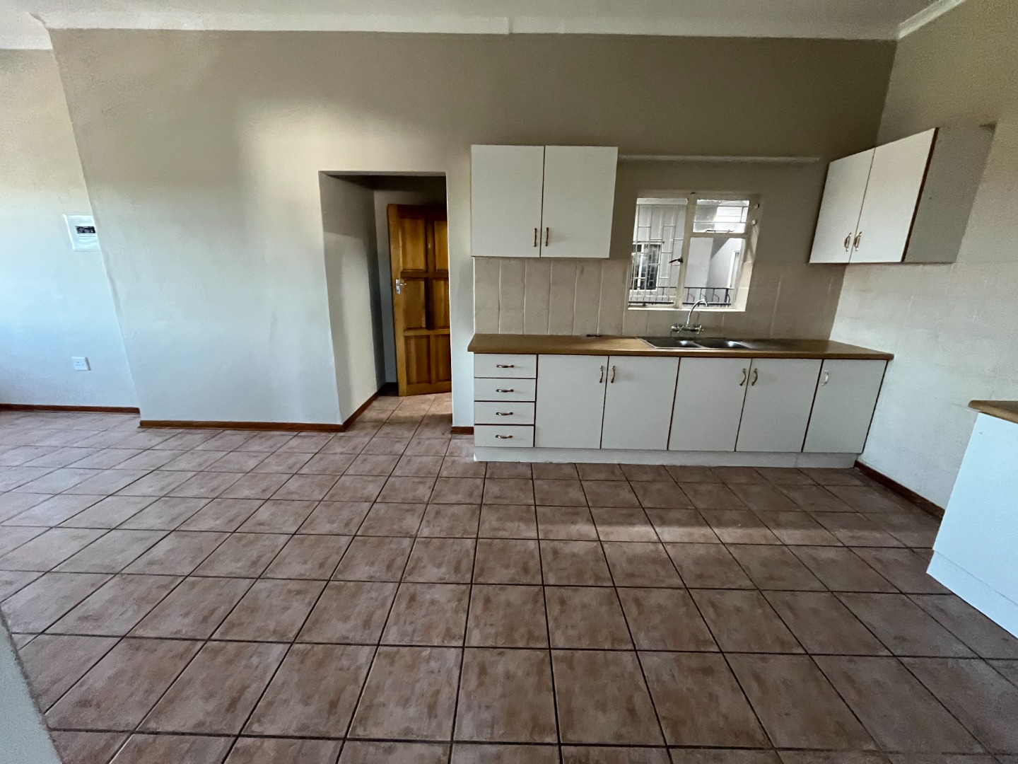 Open plan kitchen and living area. Kitchen with cupboard space (no stove) and large living area. The bedrooms are spacious with tiled flooring and build in cupboards. 1 Bathroom with a connection for washing machine.