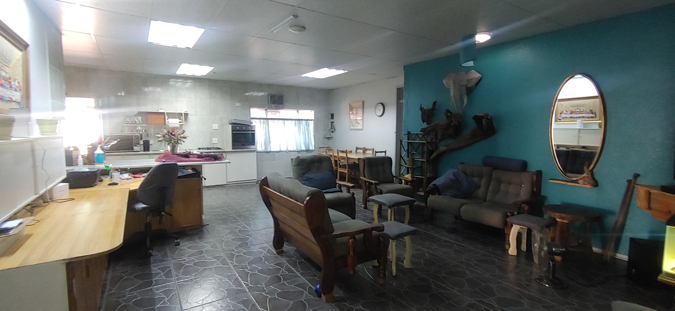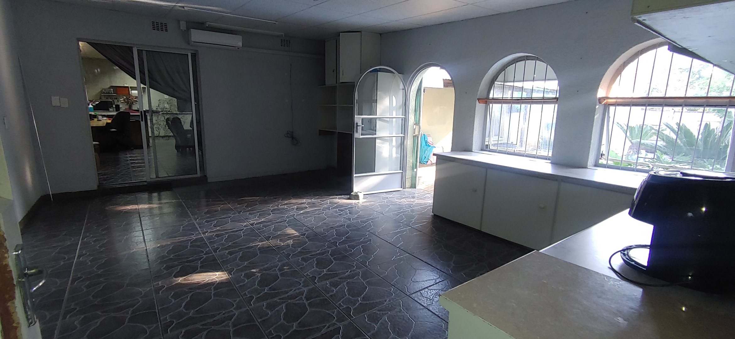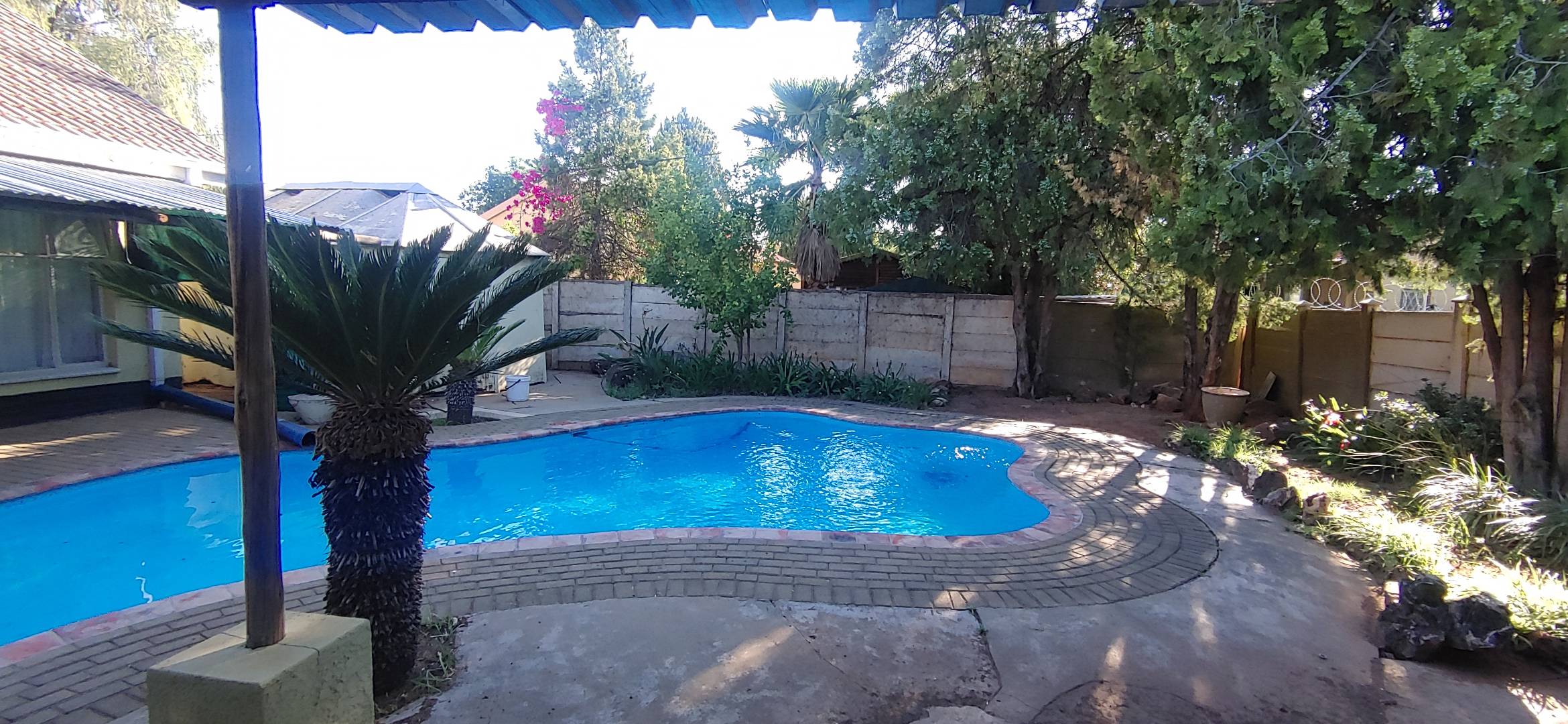Located in the suburban heart of Carters Glen, Kimberley, this expansive property offers a significant footprint in a well-established South African neighbourhood. This substantial residence boasts 7 bedrooms and 5 bathrooms, including two ensuites, providing ample accommodation. The interior features two distinct kitchens, two dining rooms, and two lounges, alongside a dedicated family/TV room, offering versatile living arrangements. Tiled flooring is present throughout, and air conditioning units are installed in several rooms for comfort. While some areas present opportunities for cosmetic updates, the functional layout and built-in wardrobes offer practical living. Step outside to discover a large, inviting swimming pool, perfect for relaxation and entertaining. A covered patio area extends the living space outdoors, complemented by an established garden with both lush and drought-resistant plantings. The property provides generous parking with space for five vehicles, including a substantial carport, and features a built-in braai. The presence of a second house on the property further enhances its appeal, offering excellent dual living possibilities. Security is addressed with a totally walled perimeter, burglar bars, and security gates, including a spiked fence at the front. Fibre connectivity is available, ensuring modern communication needs are met. Water tanks are also on-site, contributing to water resilience. This property, with its architectural character and potential, awaits a discerning buyer to personalise and enhance its charm. Key Features: * 7 Bedrooms, 5 Bathrooms (2 Ensuites) * 2 Kitchens, 2 Lounges, 2 Dining Rooms * Large Swimming Pool & Covered Patio * Established Garden & Built-in Braai * 5 Parking Spaces & Carport * Second House / Dual Living Potential * Fibre Connectivity & Water Tanks * Walled Perimeter with Security Gates & Burglar Bars