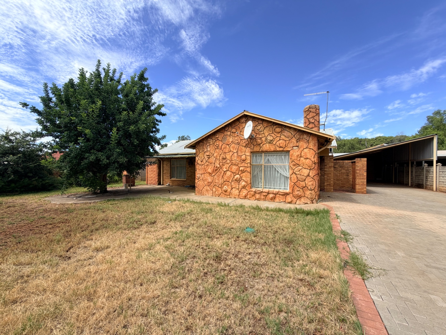 Situated in a quiet cul-de-sac in Cassandra, Kimberley, this well-positioned standard De Beers built family home offers solid construction, excellent curb appeal, and generous living spaces ideal for comfortable family living.