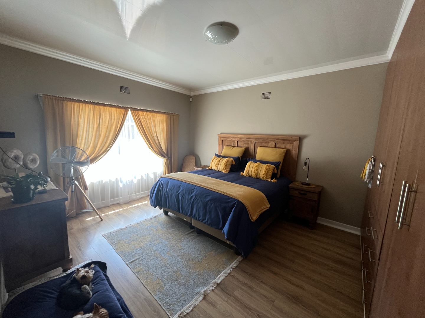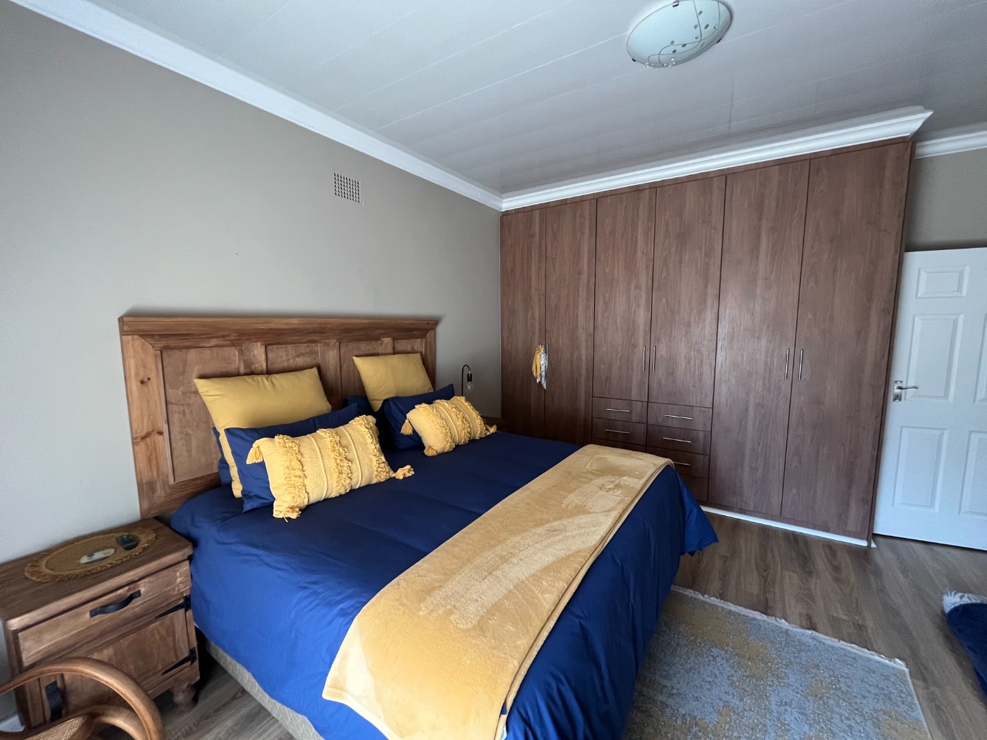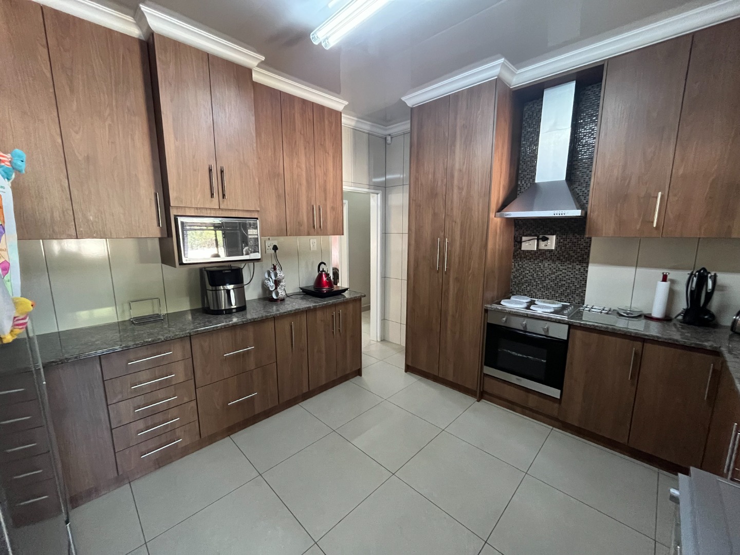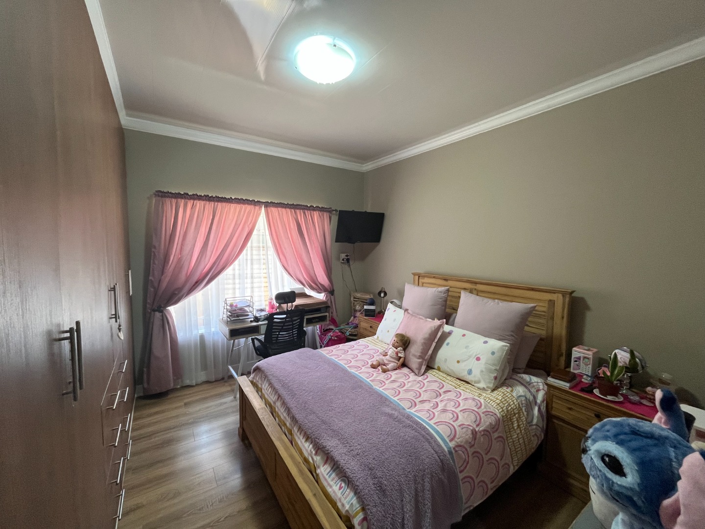 On entering the property the living area and dining area welcomes you home. Cozy kitchen with cupboard space and gas stove. Bedrooms with build in cupboards with laminated flooring. One full bathroom with separate toilet.
