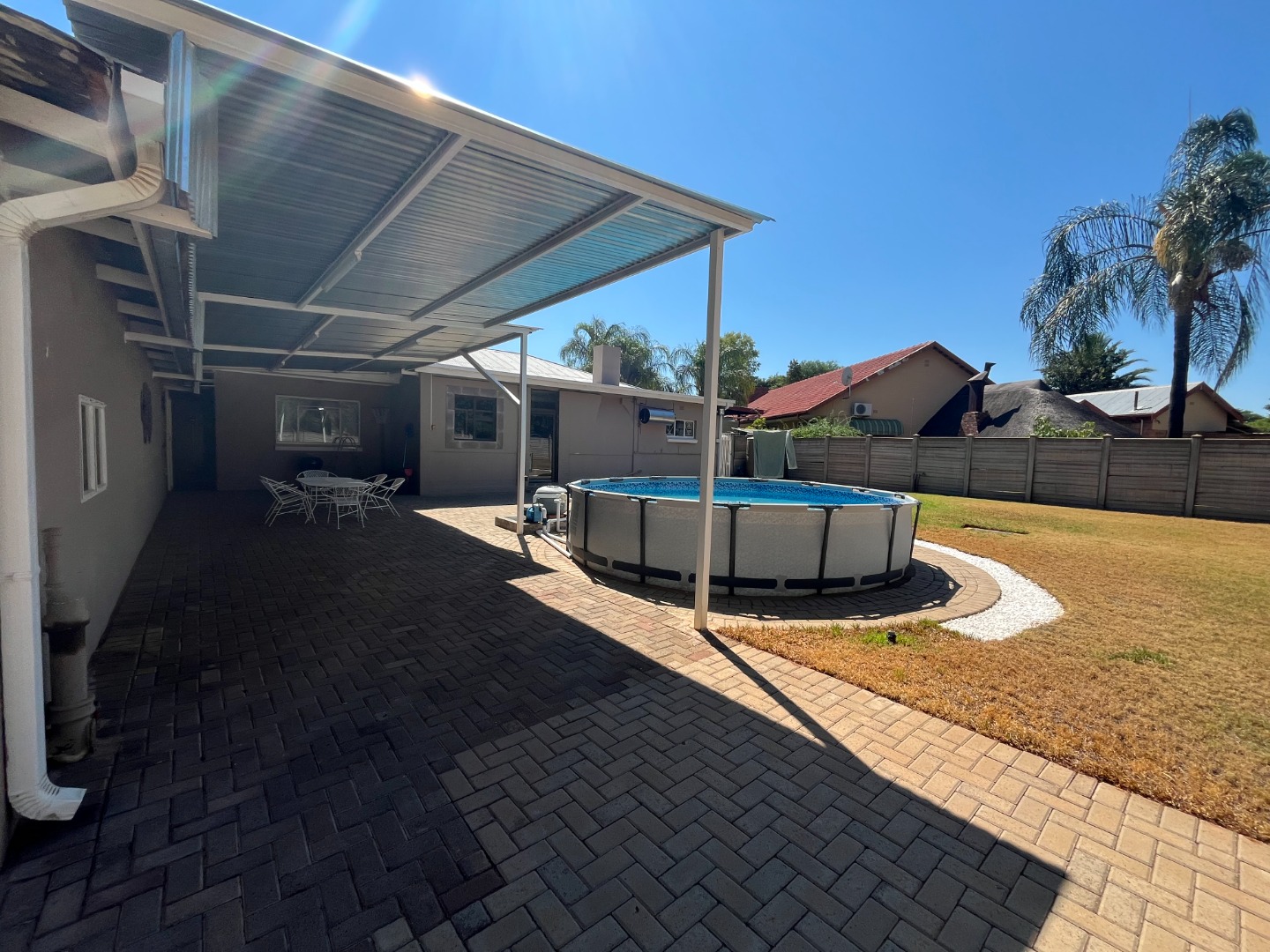 Laundry area that can be converted into another bedroom or bathroom. Build in undercover braai with small entertainment area looking out on the outside back area with Best Way Steel Promax Pool.