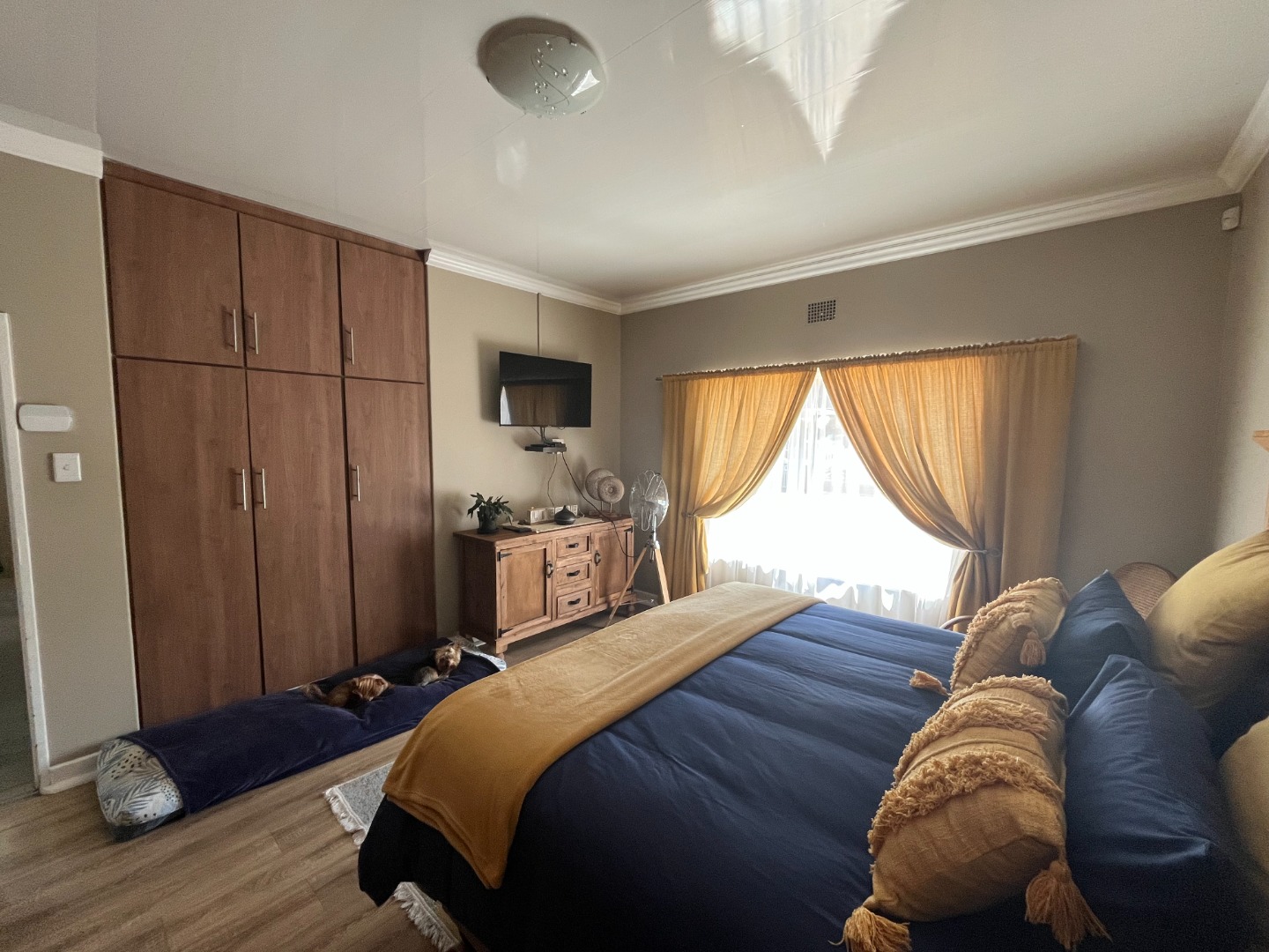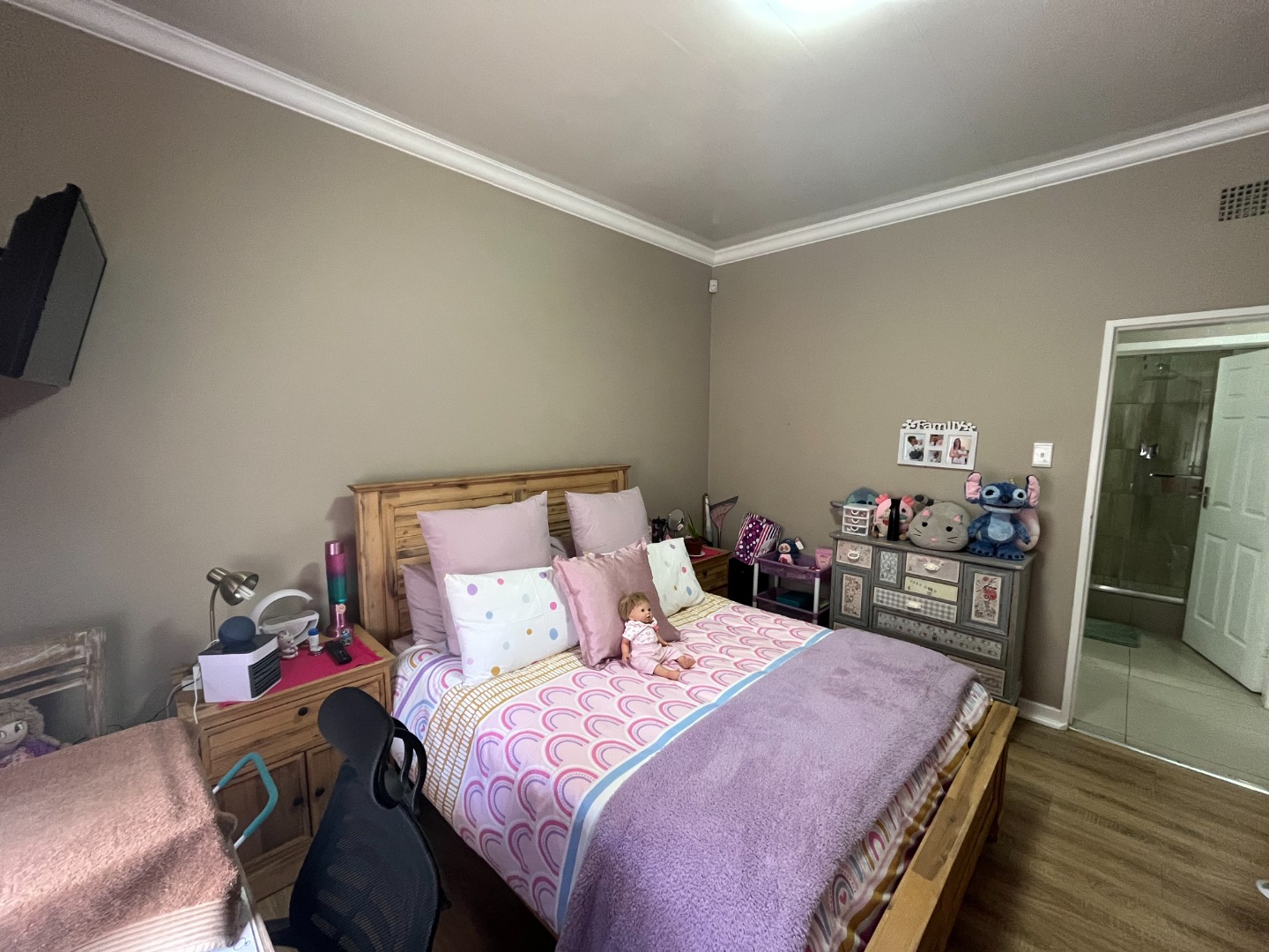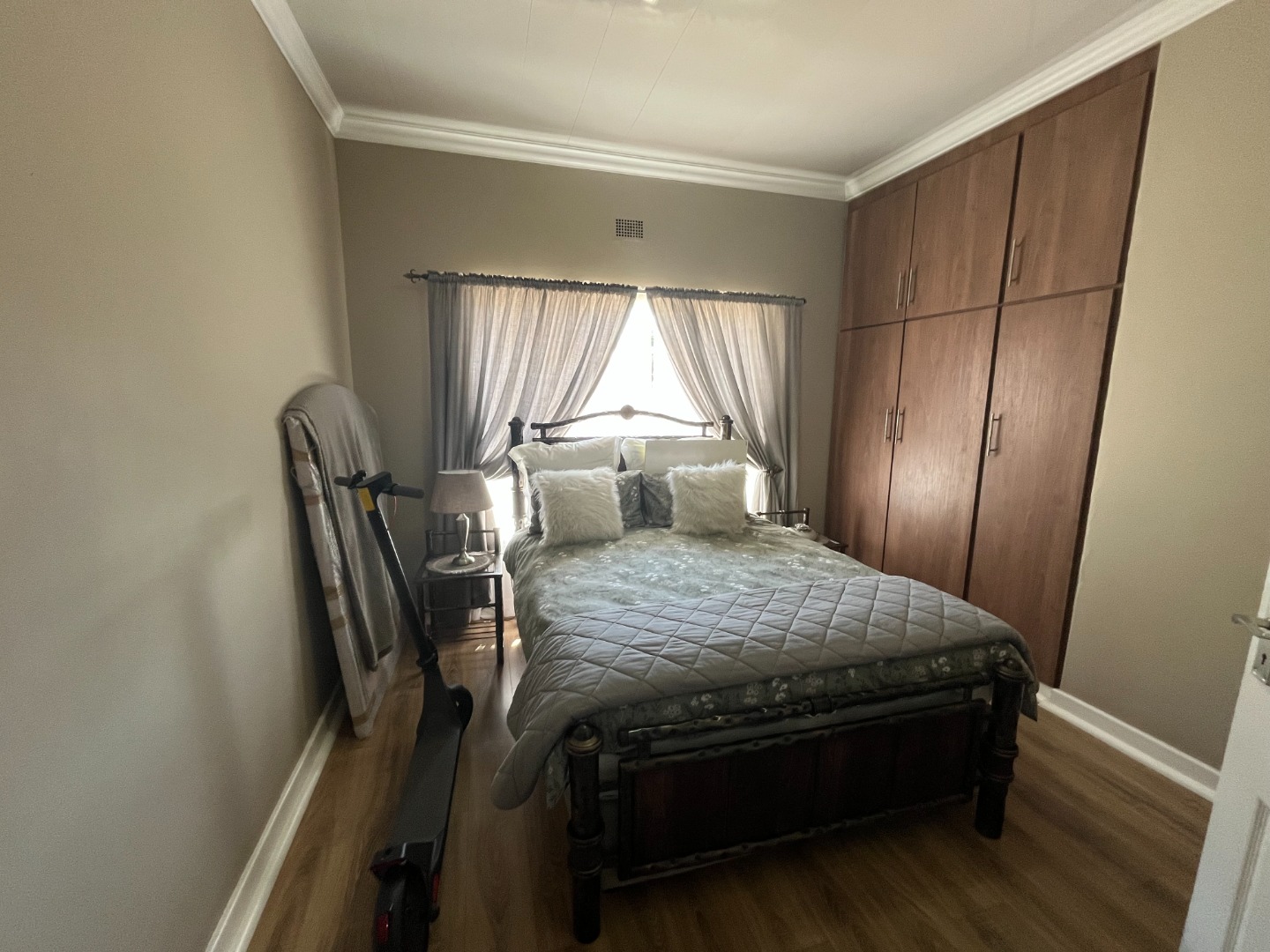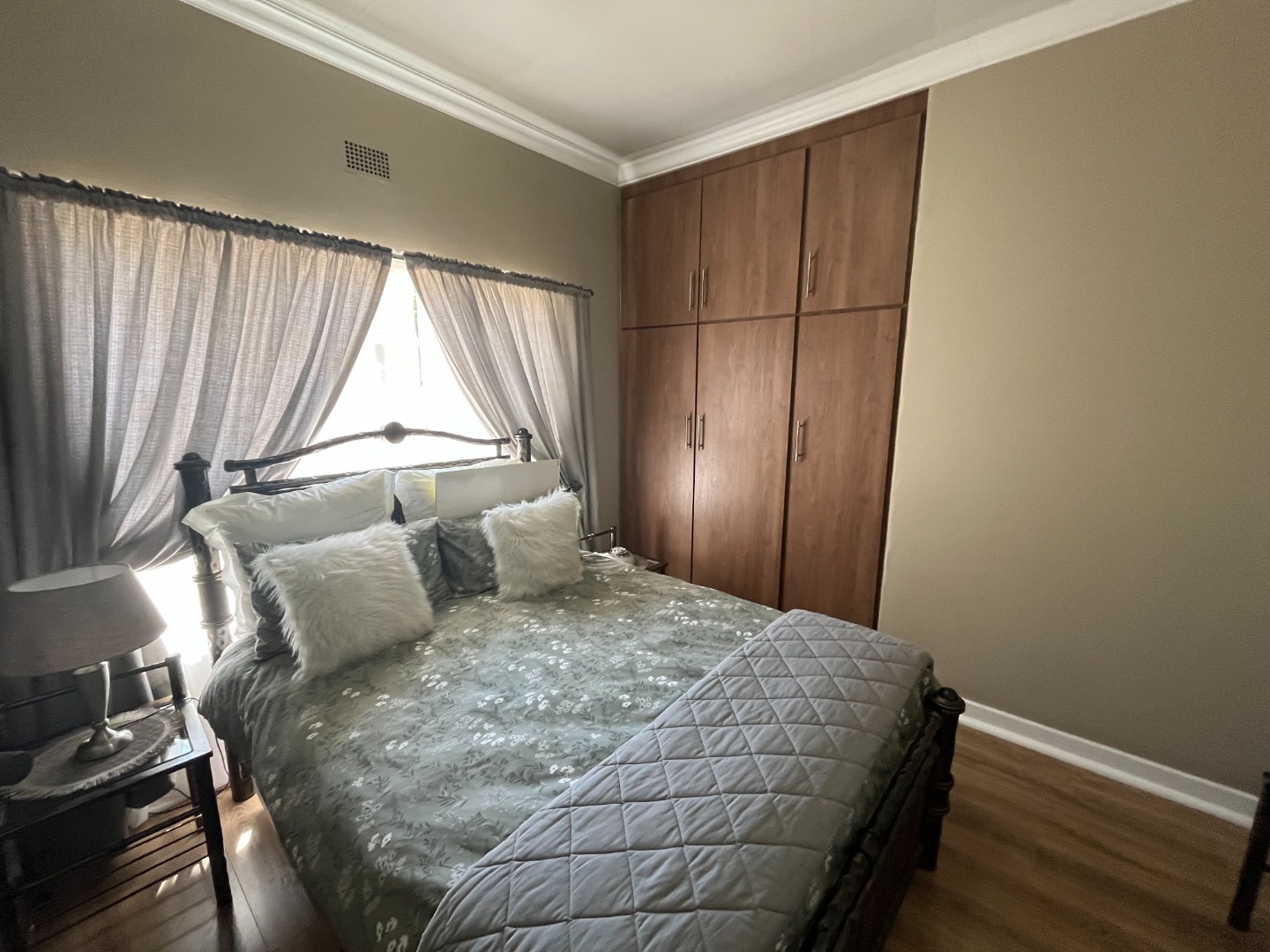 On entering the property the living area and dining area welcomes you home. Cozy kitchen with cupboard space and gas stove. Bedrooms with build in cupboards with laminated flooring. One full bathroom with separate toilet.