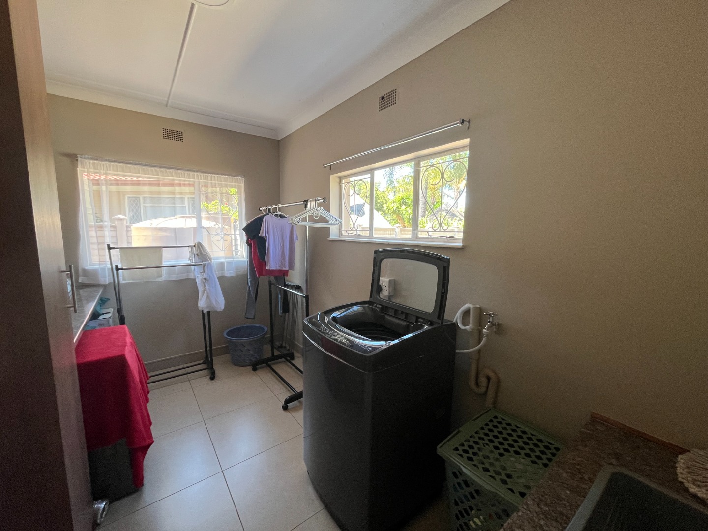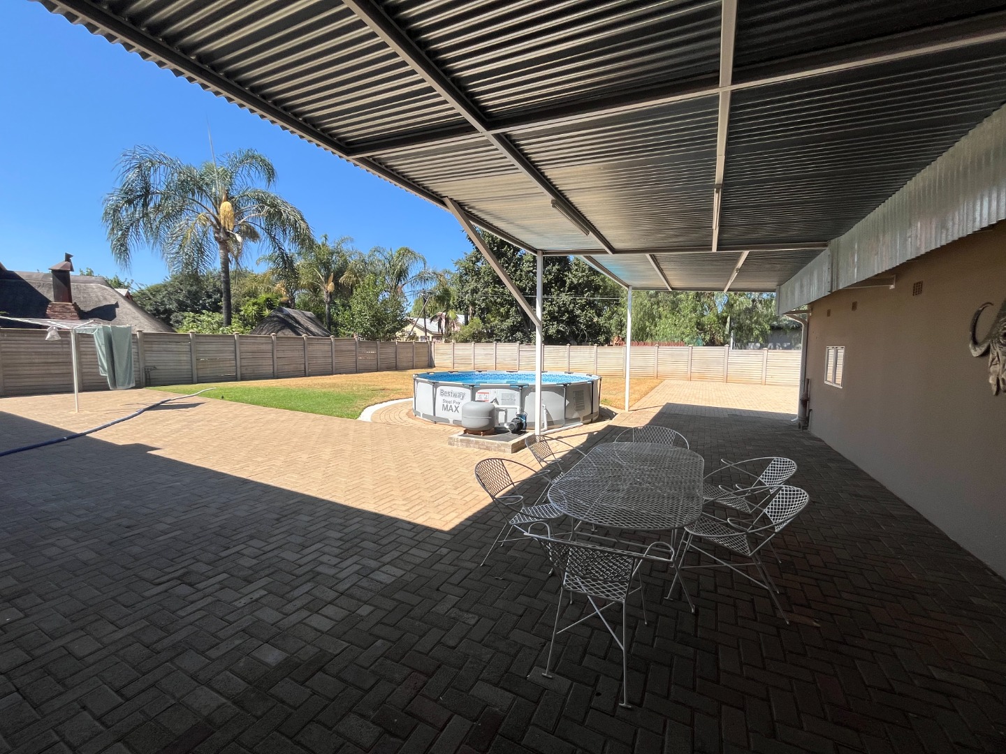 Laundry area that can be converted into another bedroom or bathroom. Build in undercover braai with small entertainment area looking out on the outside back area with Best Way Steel Promax Pool.