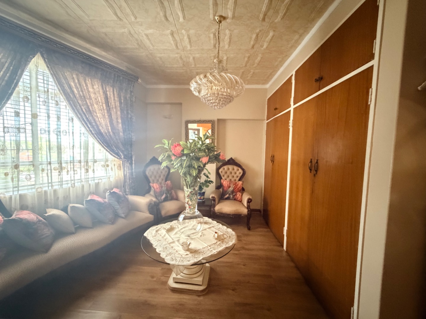 The kitchen is well-proportioned and functional, offering ample cupboard space and all the necessary amenities for comfortable day-to-day living.