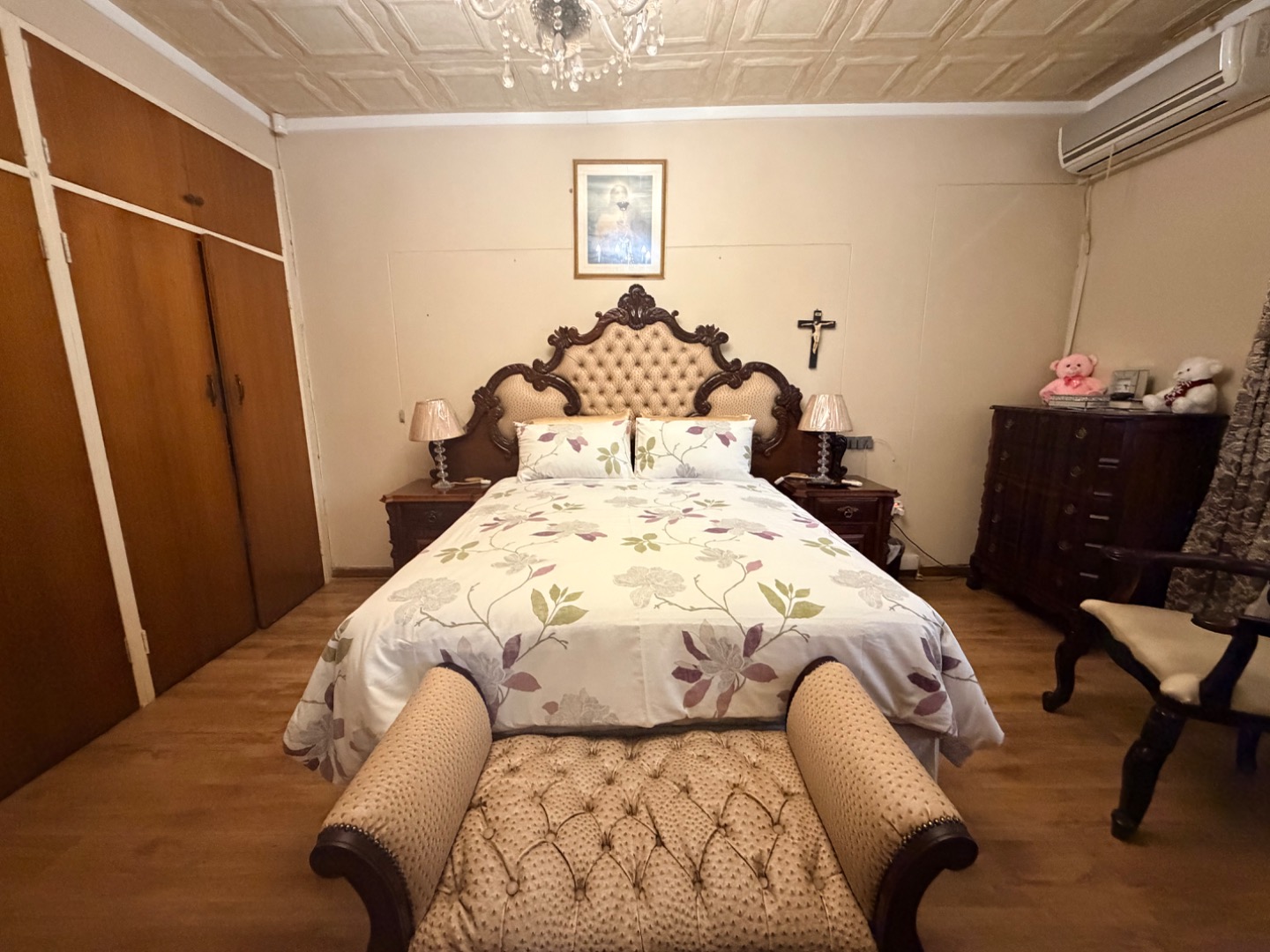 The kitchen is well-proportioned and functional, offering ample cupboard space and all the necessary amenities for comfortable day-to-day living.