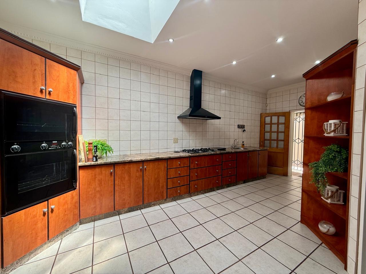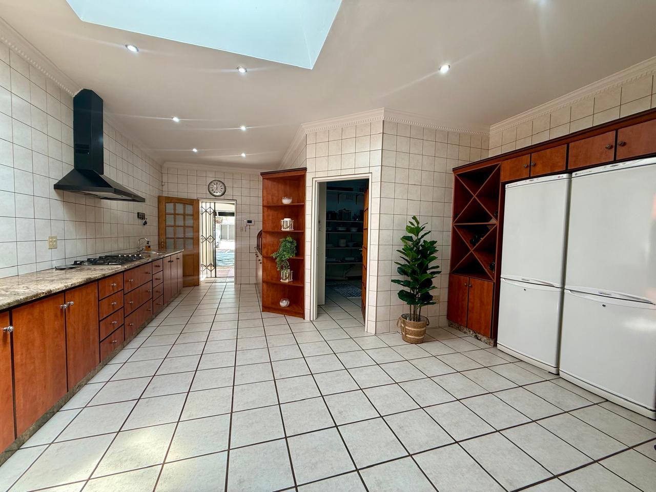 The spacious kitchen is designed with practicality in mind and includes a skylight that fills the room with natural light. A massive pantry offers ample storage, while the adjoining scullery and separate laundry ensure convenience and functionality.
