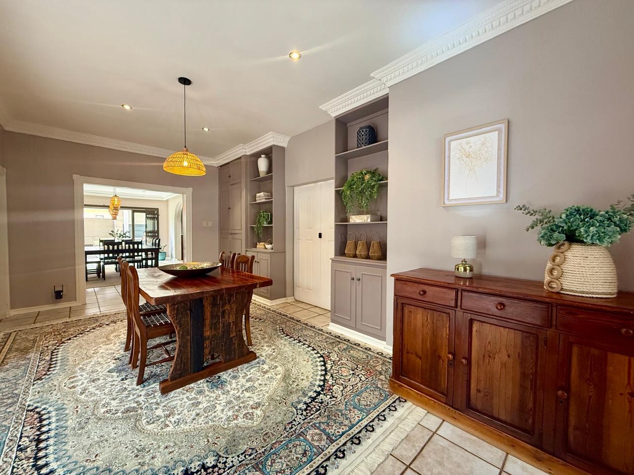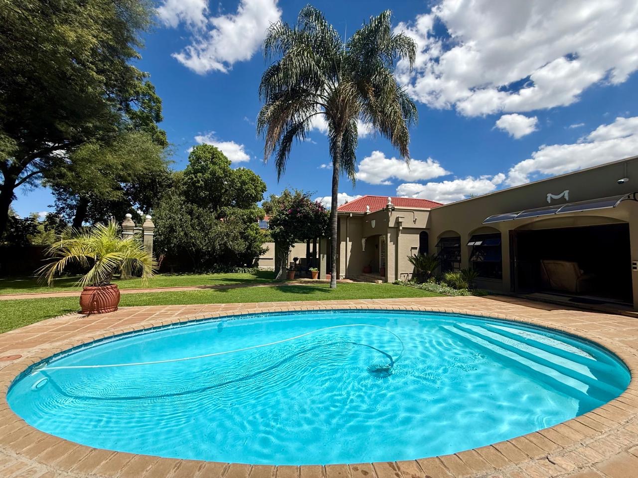 Situated in one of Kimberley’s most sought-after streets, this spectacular property welcomes you from the moment you enter through the automated gate. You are immediately greeted by expansive space, beautifully maintained lush gardens, and the calming sound of flowing water – creating a tranquil retreat right at home.