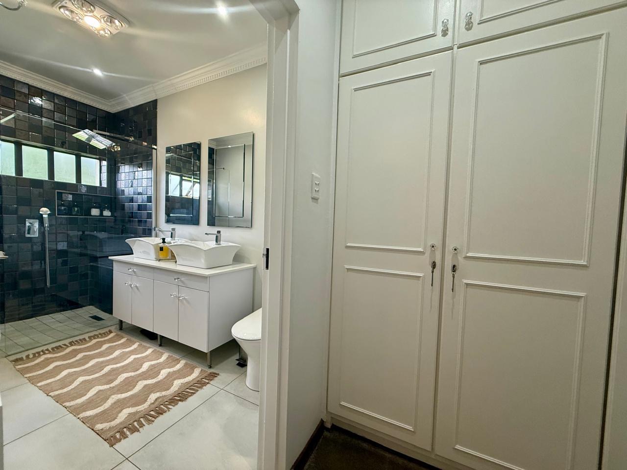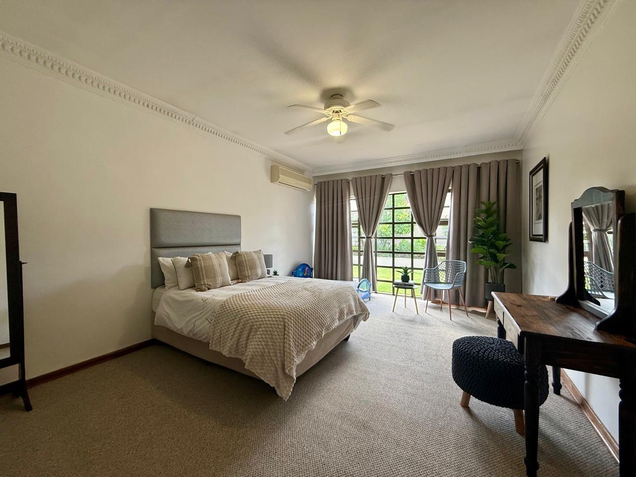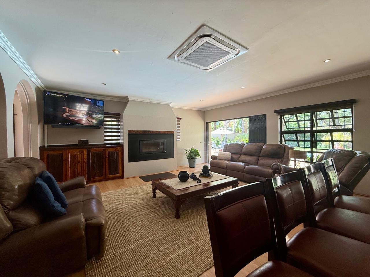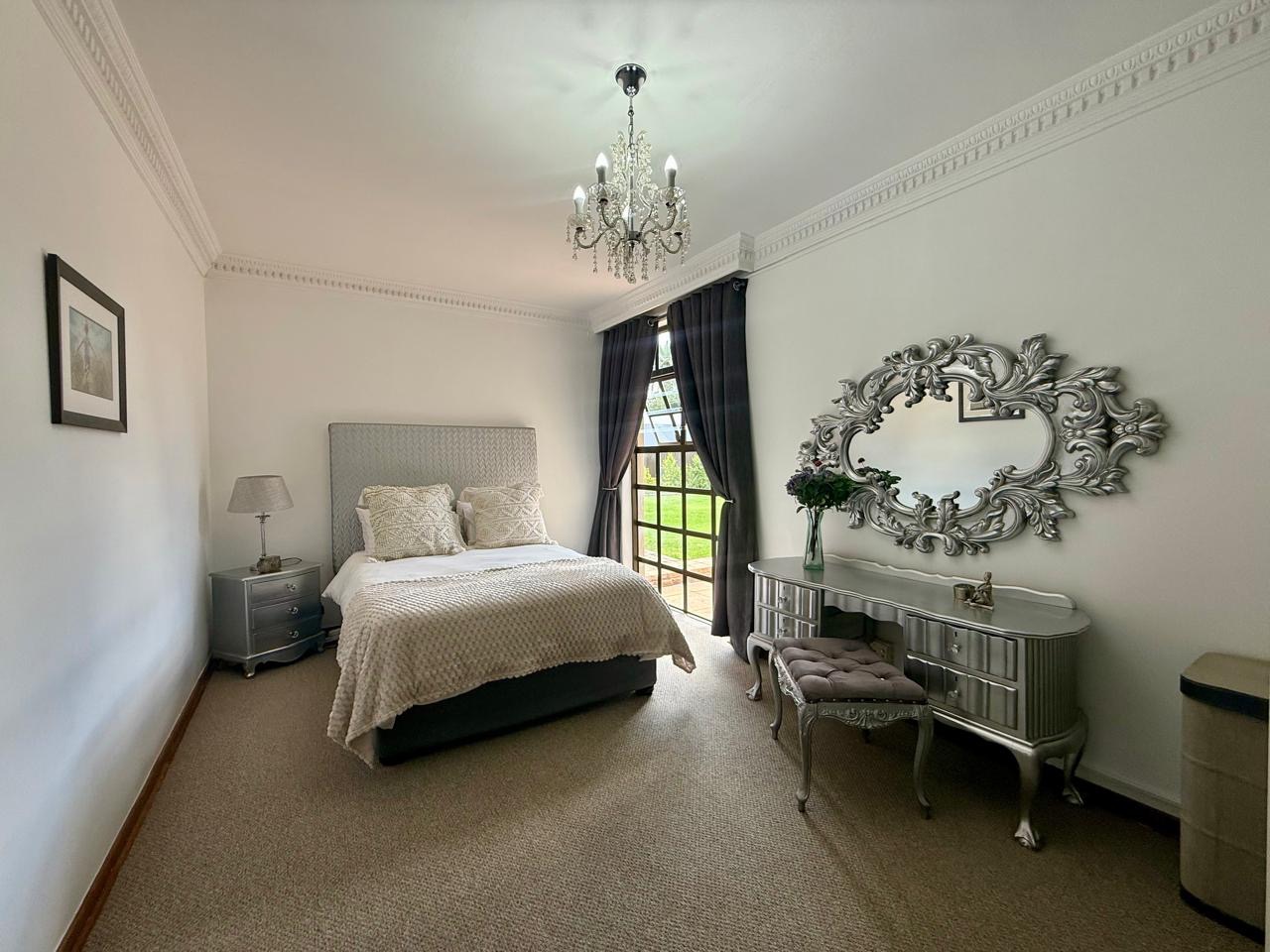 A major bonus is the property’s energy efficiency and water security. The home is equipped with a powerful 12.5 kW three-phase inverter, two 10 kW batteries, and 14 solar panels. A borehole producing approximately 1,600 litres per hour at a depth of 150 metres further enhances the property’s self-sufficiency.