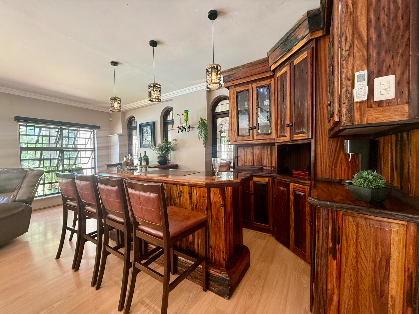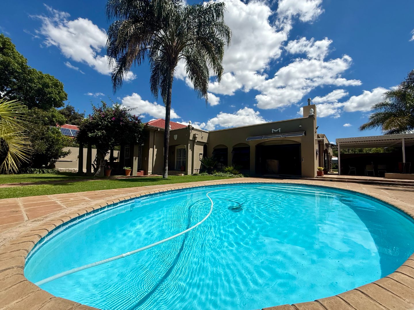 Situated in one of Kimberley’s most sought-after streets, this spectacular property welcomes you from the moment you enter through the automated gate. You are immediately greeted by expansive space, beautifully maintained lush gardens, and the calming sound of flowing water – creating a tranquil retreat right at home.