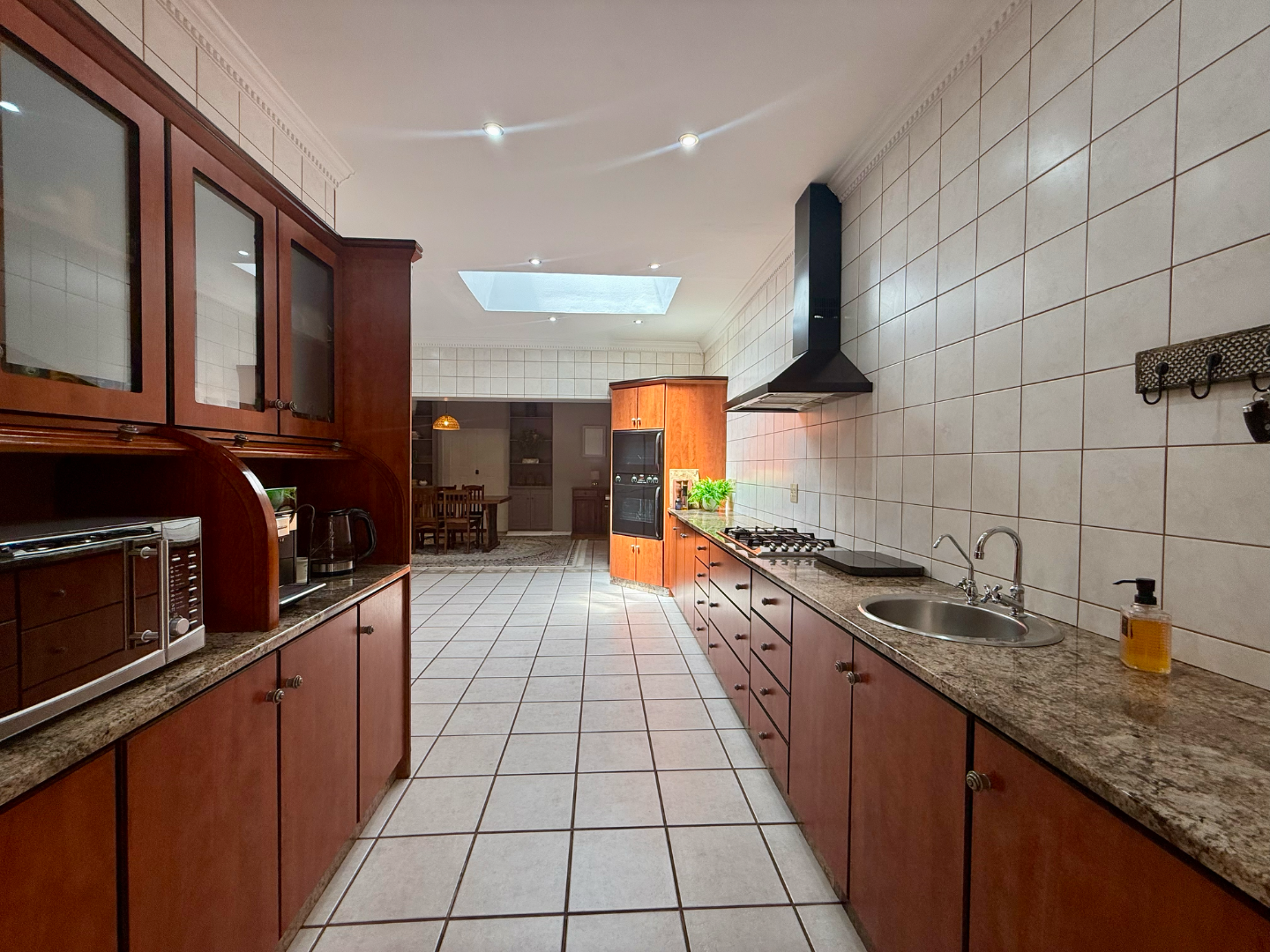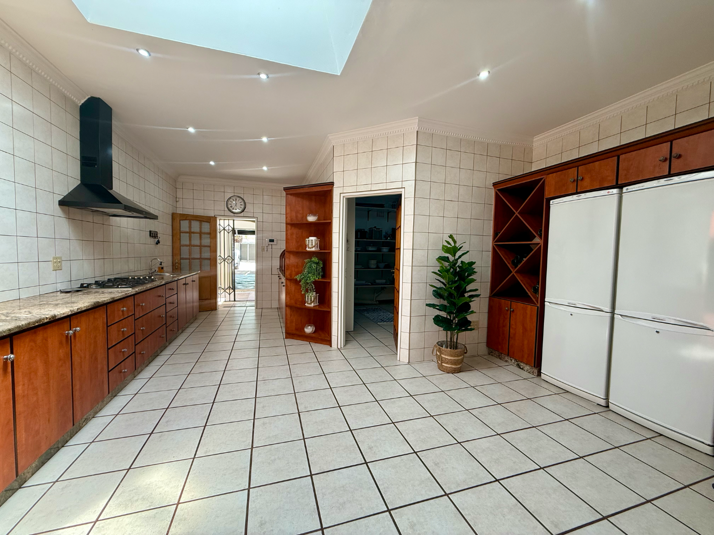 The spacious kitchen is designed with practicality in mind and includes a skylight that fills the room with natural light. A massive pantry offers ample storage, while the adjoining scullery and separate laundry ensure convenience and functionality.