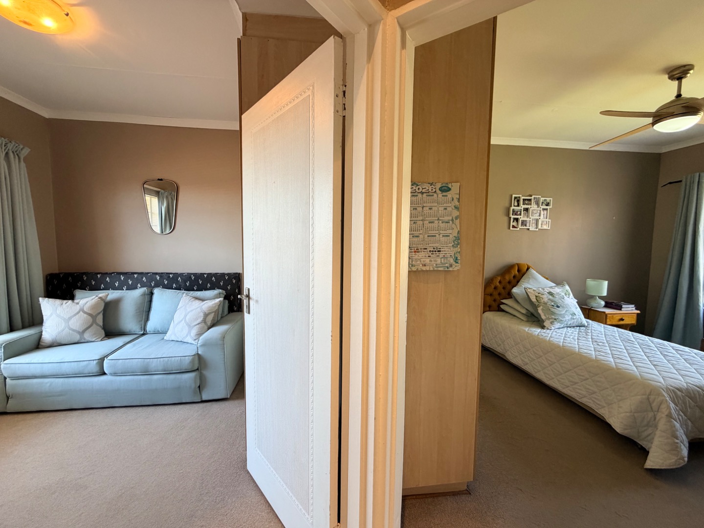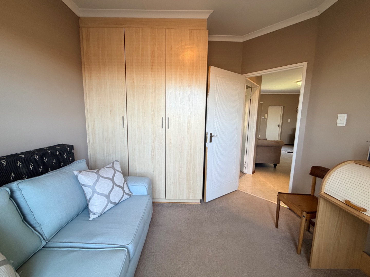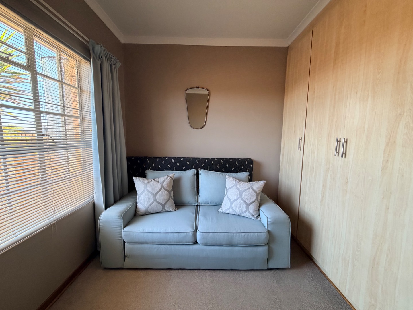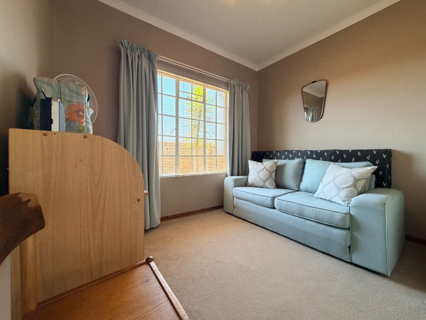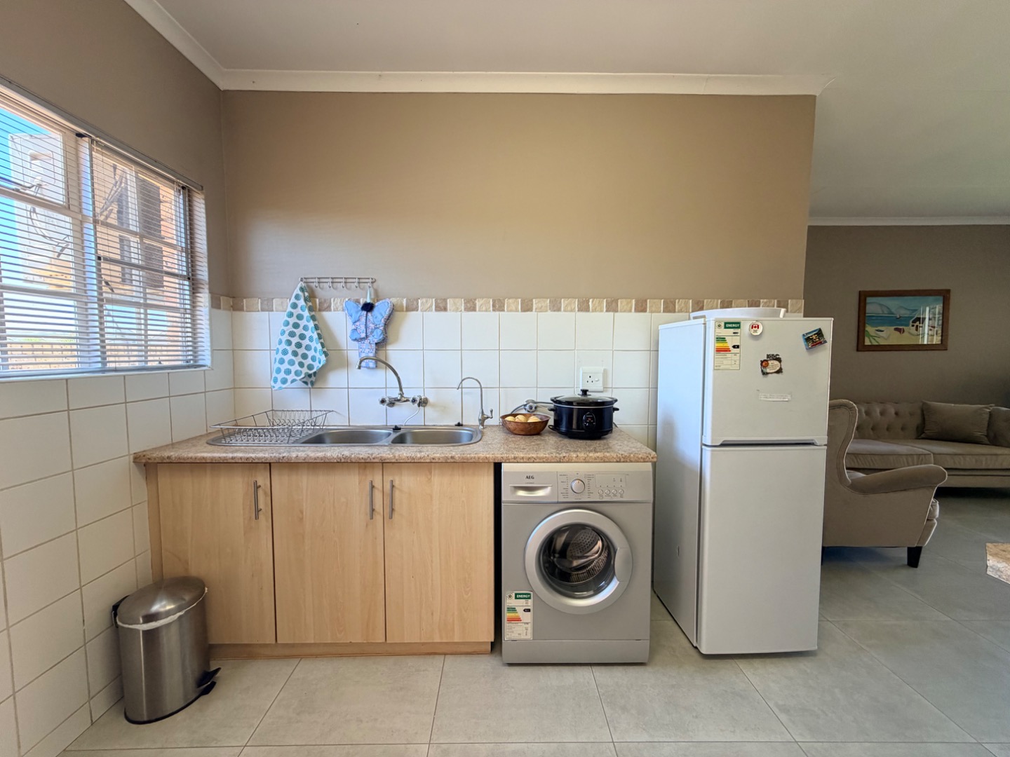 Inside, the spacious open-plan living area creates an immediate impression of comfort and openness. The layout and neutral tones enhance the airy, expansive feel, making it a delightful space to relax or entertain. Airconditioning provides comfort in this living area during those sweltering summer days.