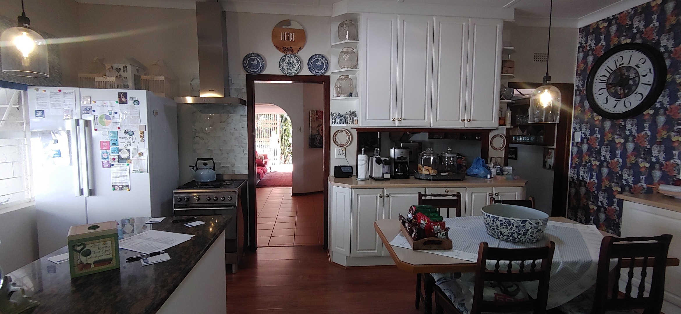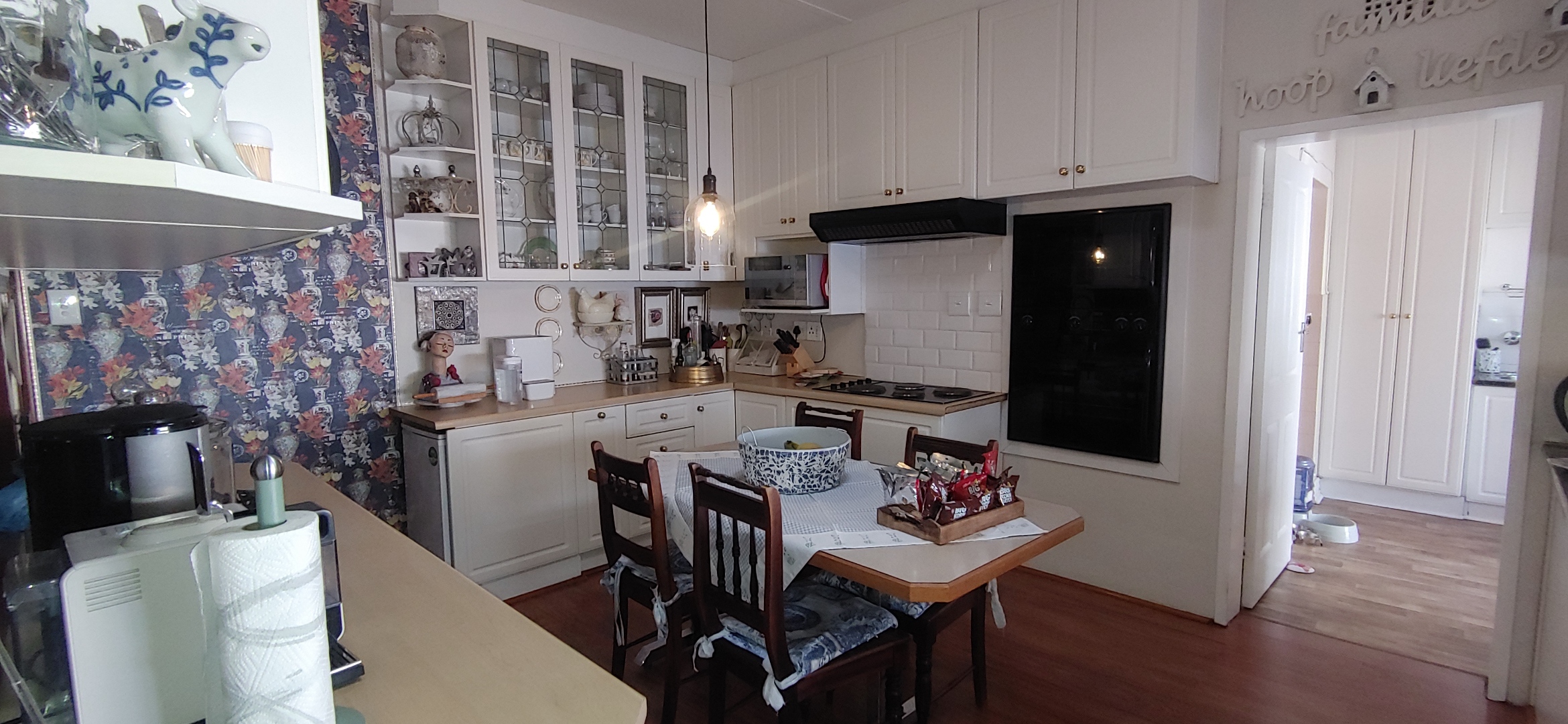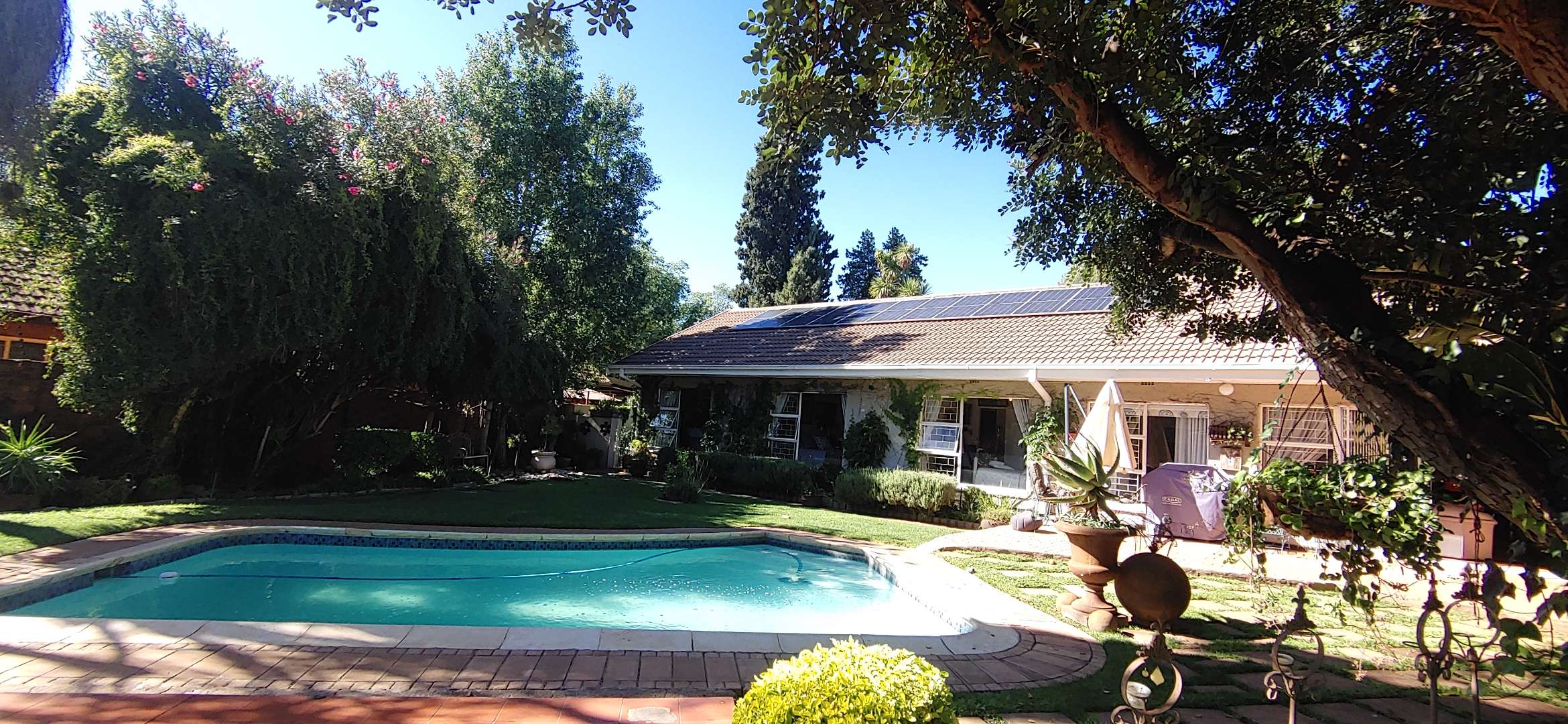 The well-designed kitchen offers plenty of built-in cupboards and is complemented by a separate scullery. Outside you will find a laundry room and additional storerooms, adding extra convenience and storage space.