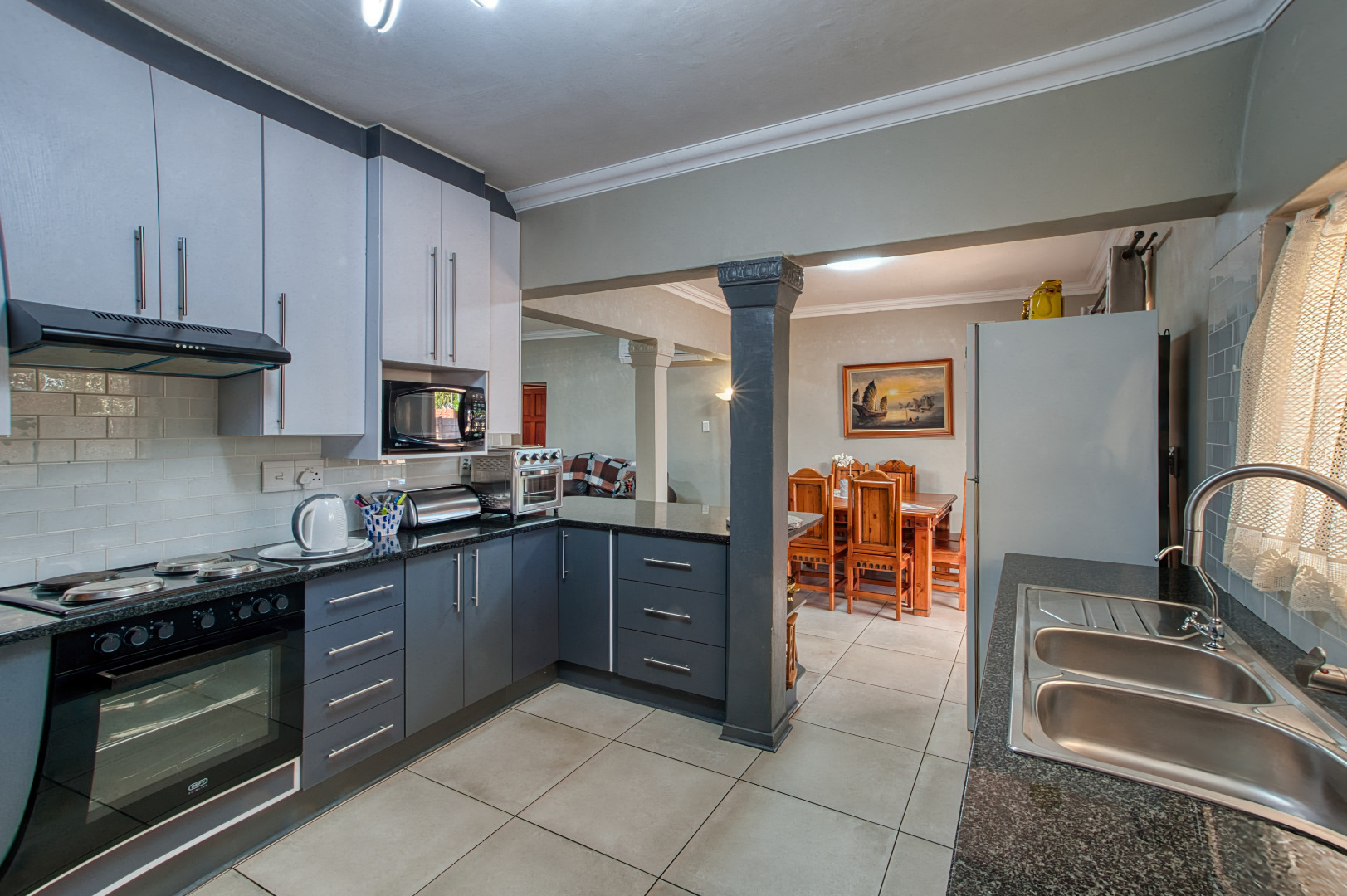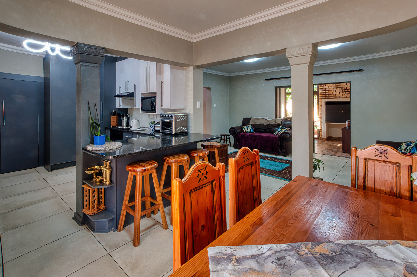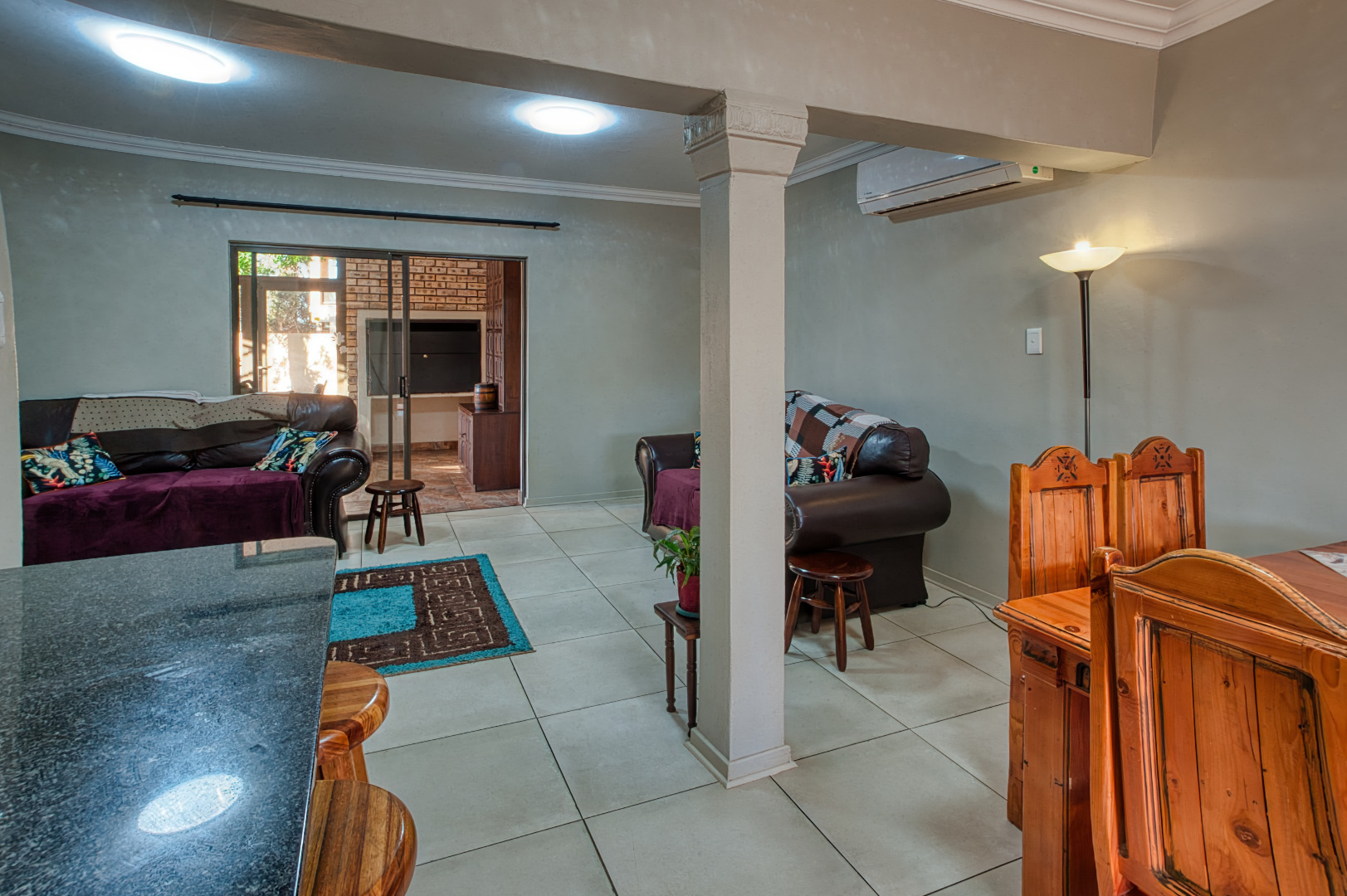 Layout Overview Upstairs: Bedrooms: 3 spacious bedrooms, including: - A main bedroom with an en-suite and ample built-in cupboards - A family bathroom Additional Spaces: - A private living area - A study - A patio with breathtaking views, perfect for relaxation and to enjoy the beautiful Kimberley sunset. Downstairs - Guest Bedroom: 1 additional bedroom for guests. - Family Bathroom: A conveniently located bathroom. Living Spaces: - - Open-plan lounge, dining room and modern kitchen with granite tops designed for both functionality and style. - An indoor braai room with sliding door onto patio for entertaining.