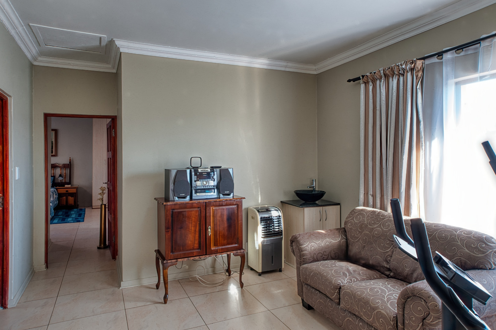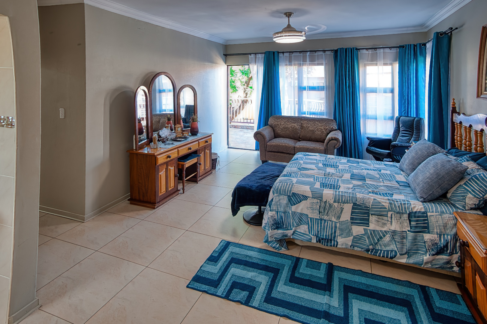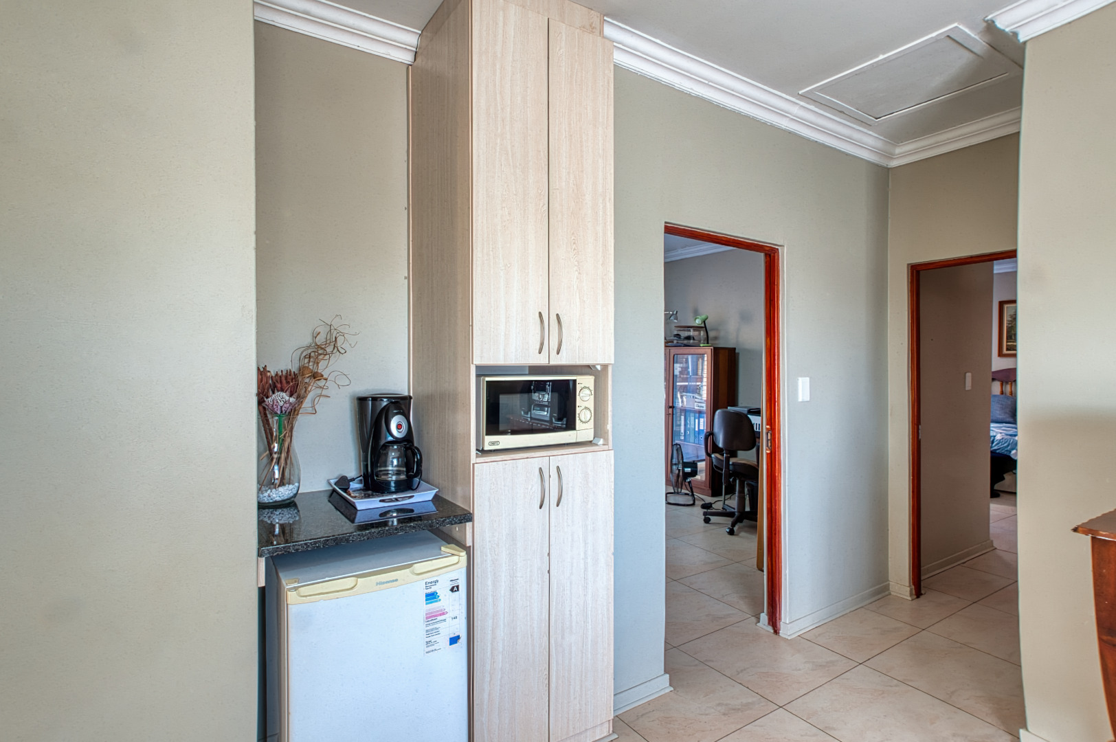 Layout Overview Upstairs: Bedrooms: 3 spacious bedrooms, including: - A main bedroom with an en-suite and ample built-in cupboards - A family bathroom Additional Spaces: - A private living area - A study - A patio with breathtaking views, perfect for relaxation and to enjoy the beautiful Kimberley sunset. Downstairs - Guest Bedroom: 1 additional bedroom for guests. - Family Bathroom: A conveniently located bathroom. Living Spaces: - - Open-plan lounge, dining room and modern kitchen with granite tops designed for both functionality and style. - An indoor braai room with sliding door onto patio for entertaining.