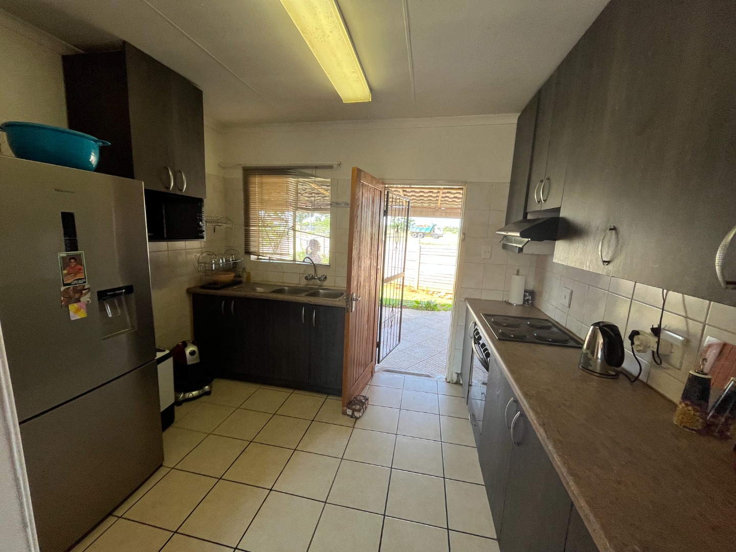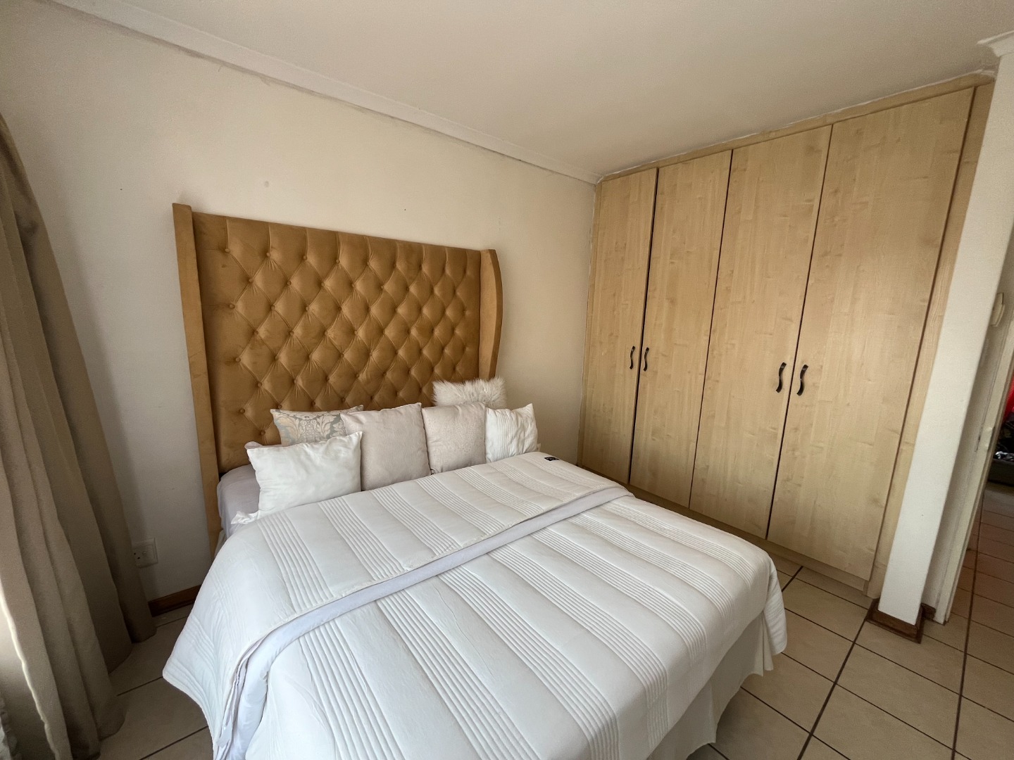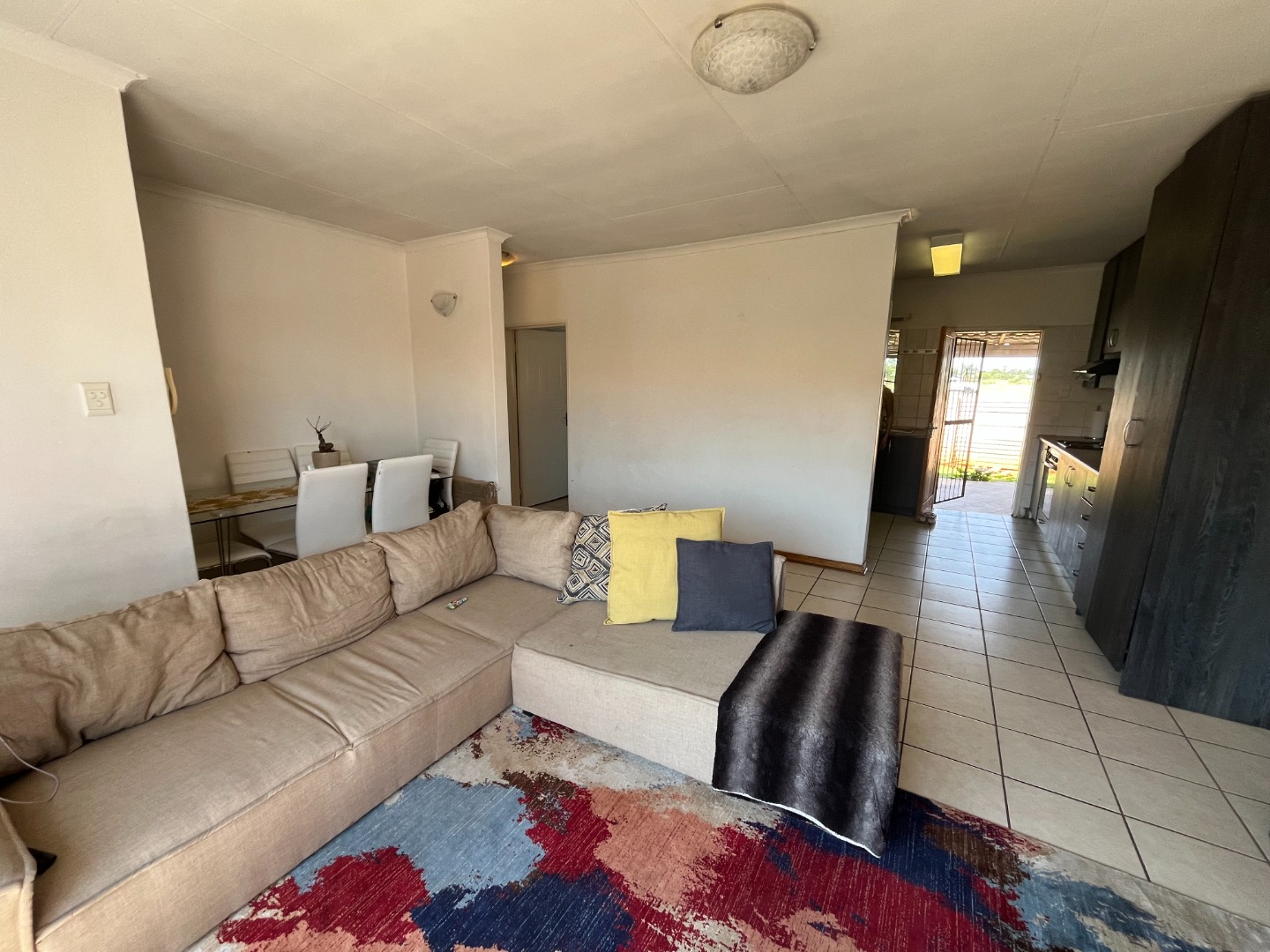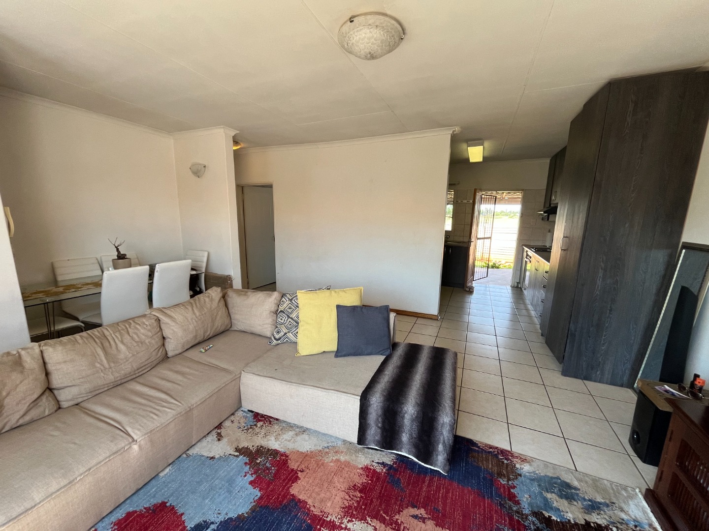 The home features two bedrooms with tiled flooring and built-in cupboards, providing a practical and low-maintenance living space. The open-plan lounge and kitchen create a welcoming atmosphere, with the kitchen offering ample cupboard space for all your storage needs.