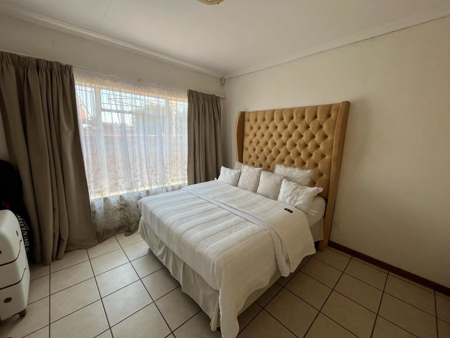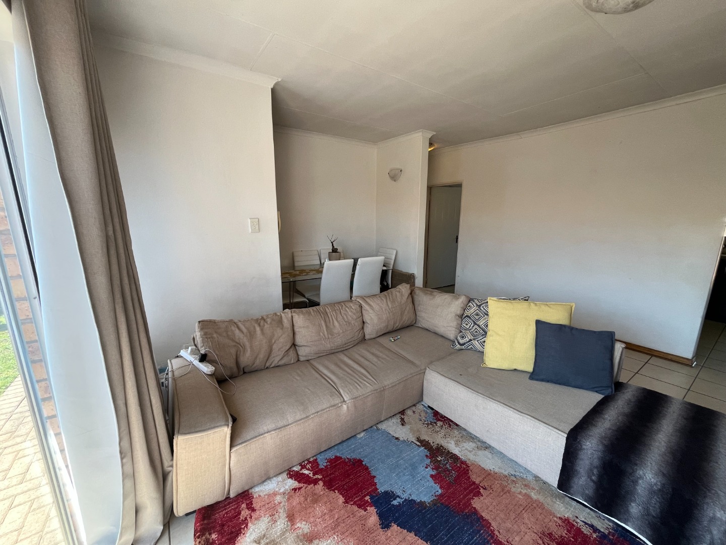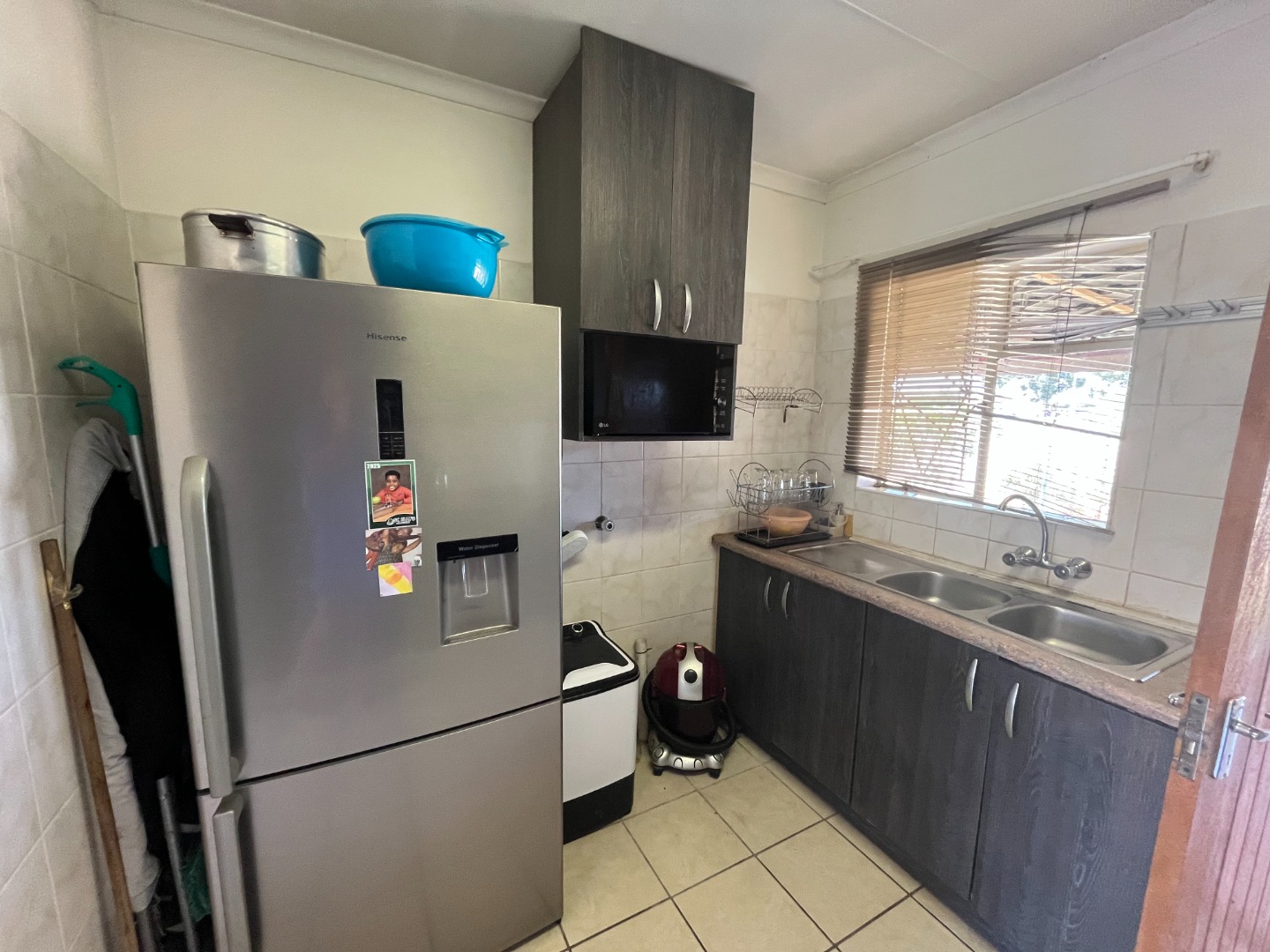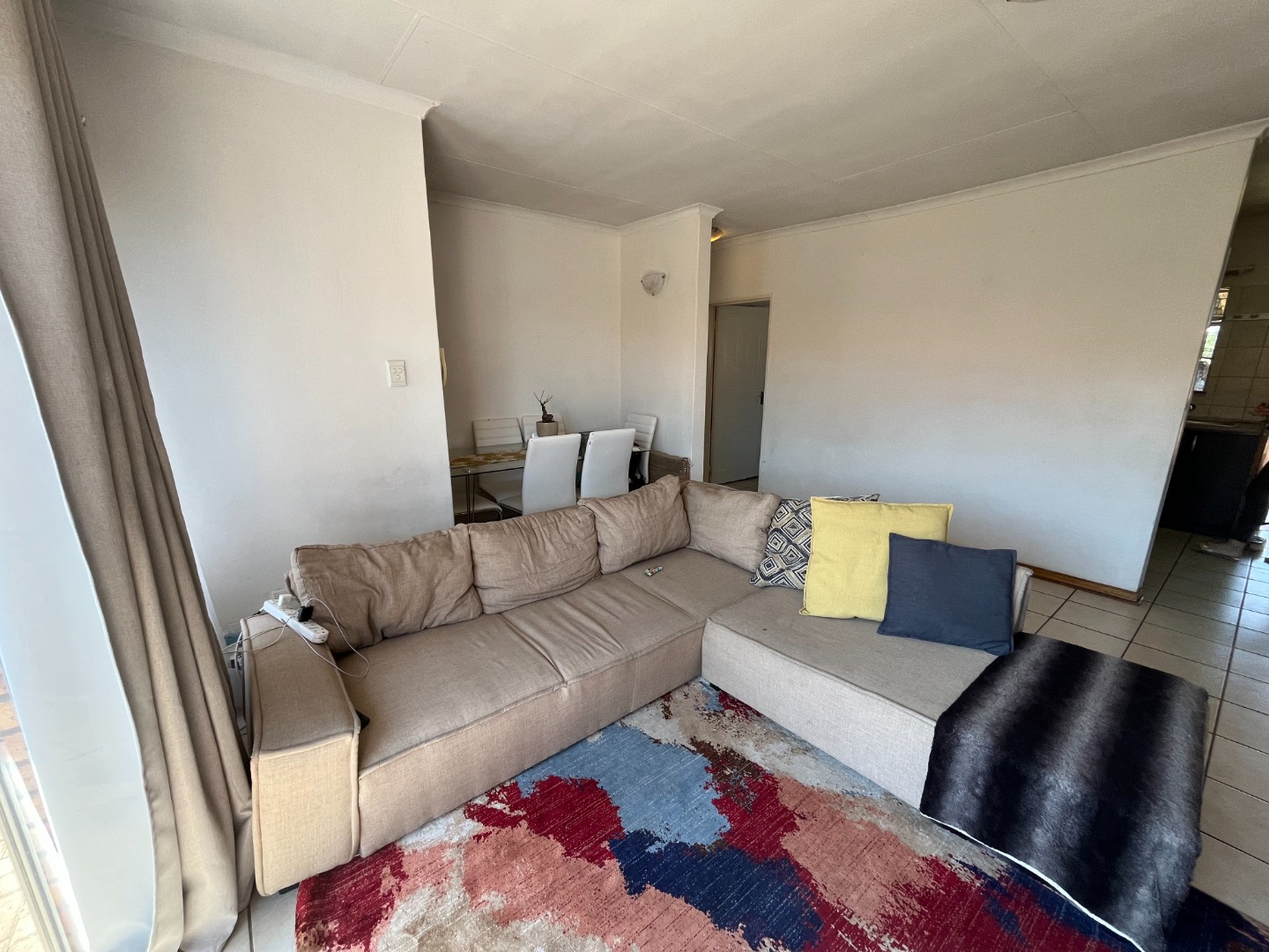 The home features two bedrooms with tiled flooring and built-in cupboards, providing a practical and low-maintenance living space. The open-plan lounge and kitchen create a welcoming atmosphere, with the kitchen offering ample cupboard space for all your storage needs.