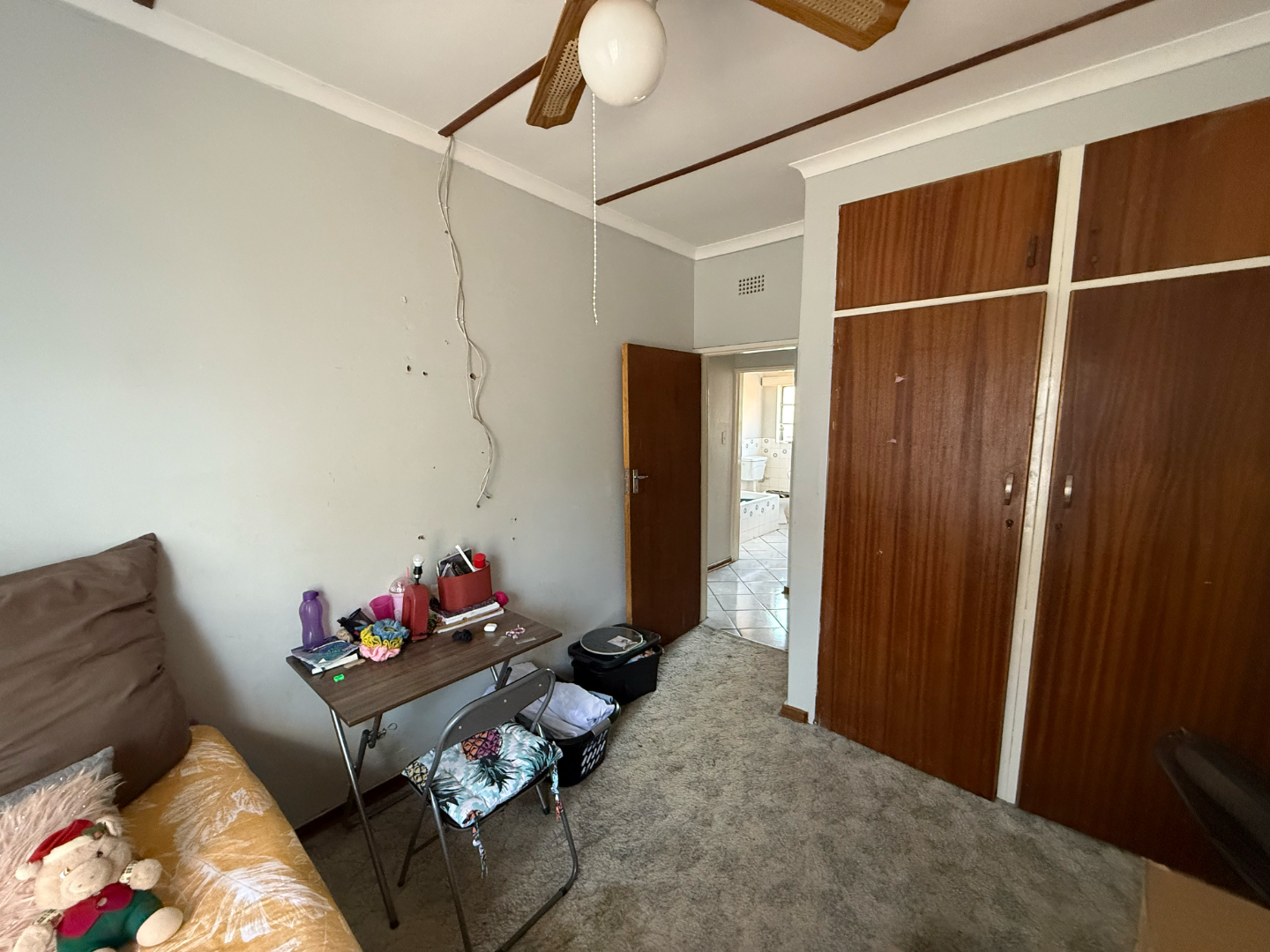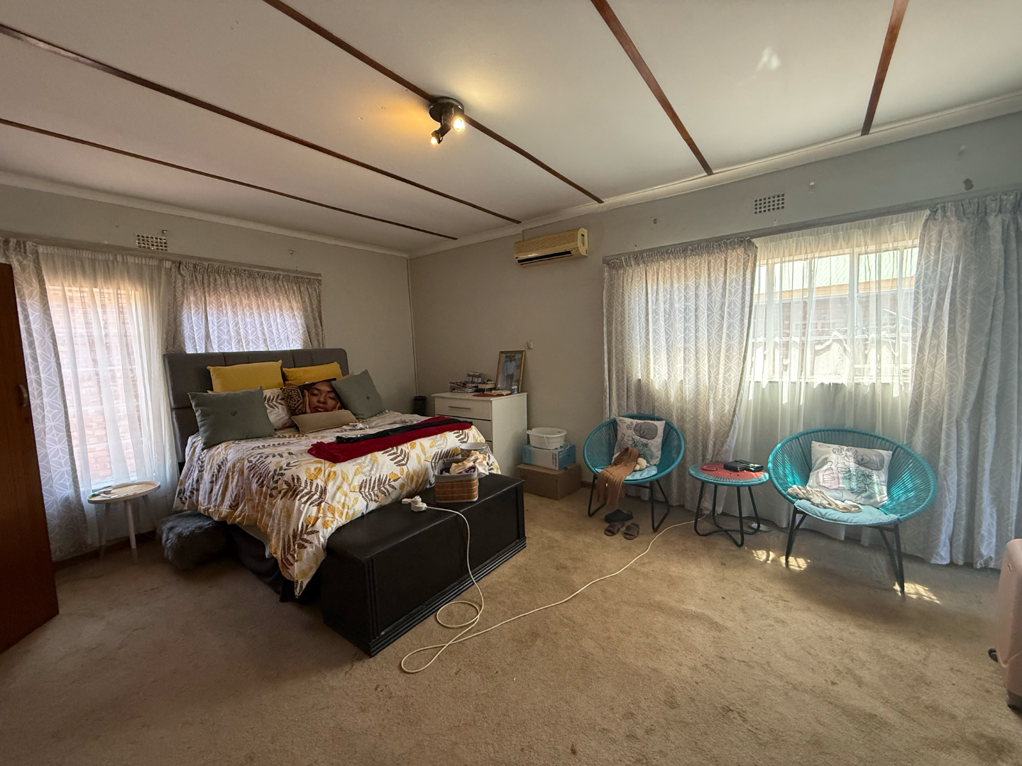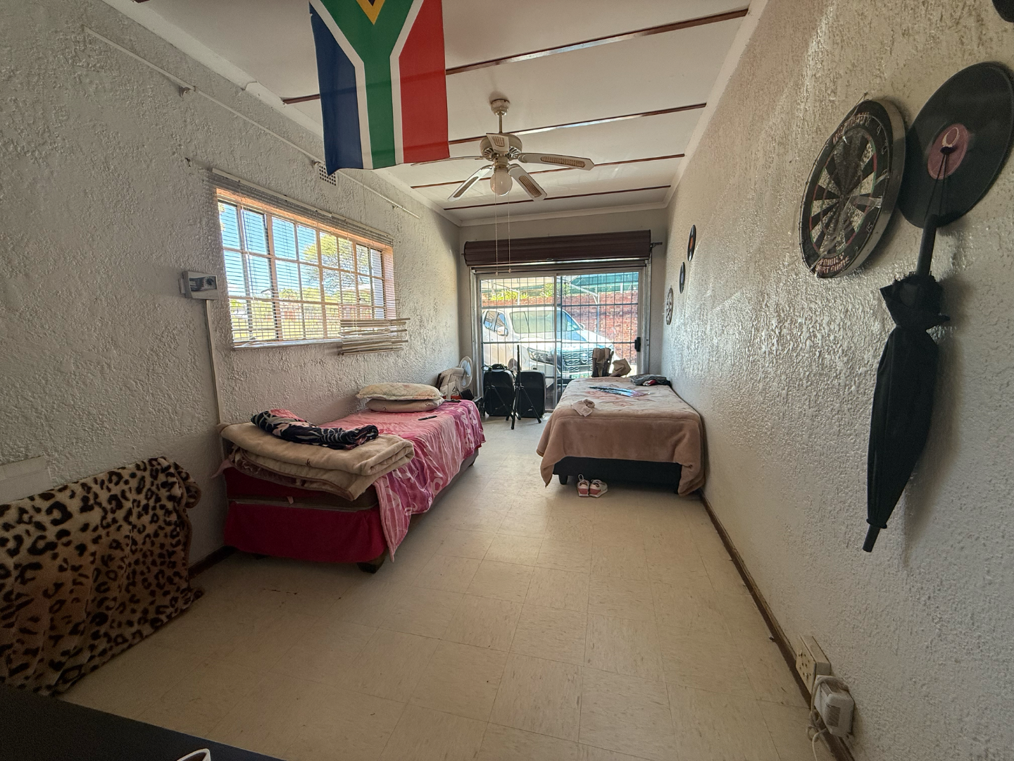 The property features 3 well-sized bedrooms, all fitted with built-in cupboards. The main bedroom is exceptionally spacious and includes a full en-suite bathroom complete with a bath, shower, toilet, and basin. The fourth bedroom is a converted garage, providing additional space that can be used as a bedroom, home office, or hobby room.