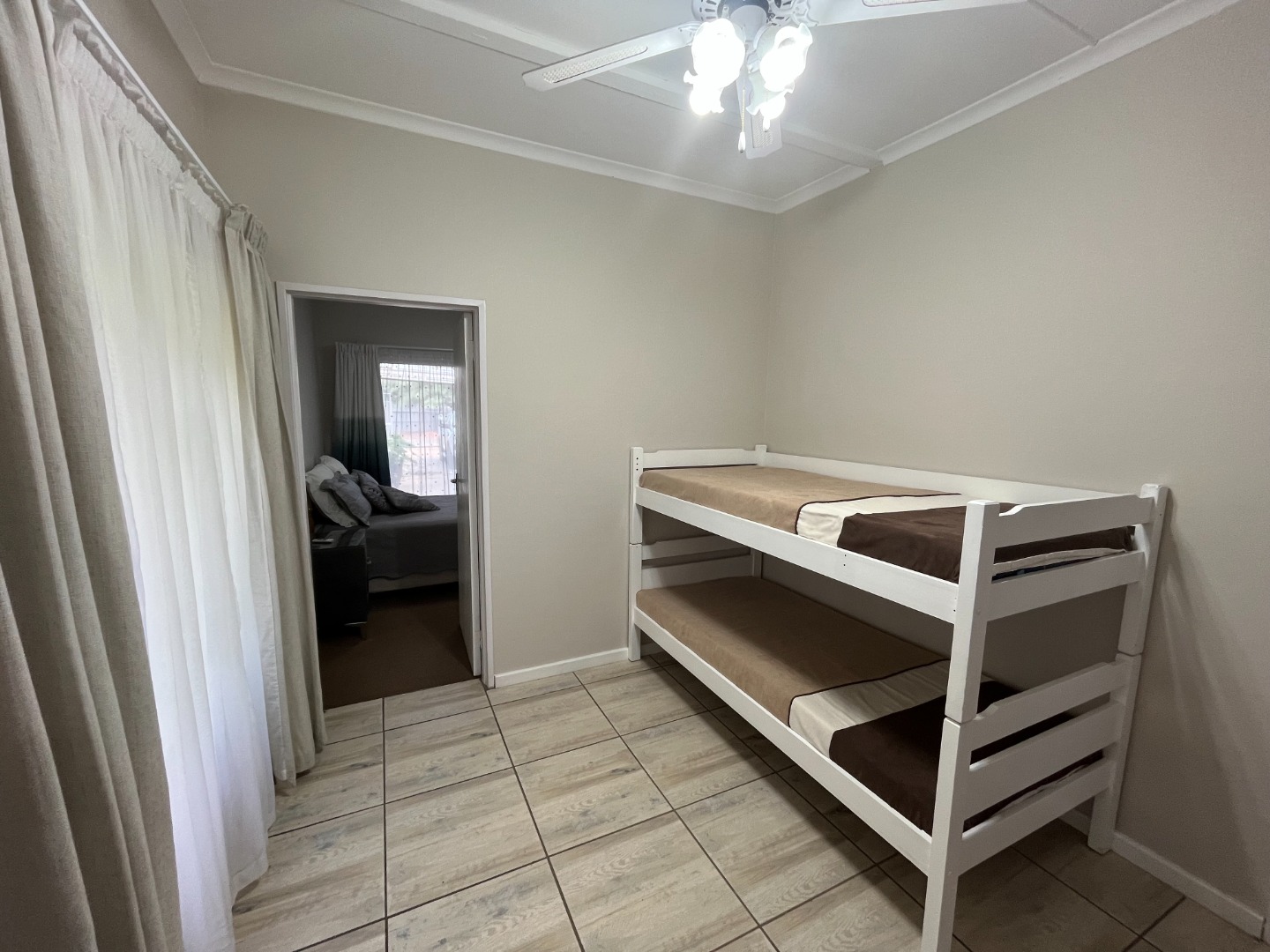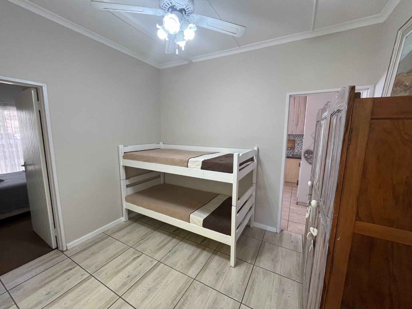 Bedroom with double bed and build in cupboards. Another area (bedroom) with extra beds and cupboard. 1 Full bathroom with washing machine connection. Full equipped kitchen with all the necessary crockery and cutlery. Fridge, microwave stove and everything you need. Open plan living area with comfortable couches and a desk.