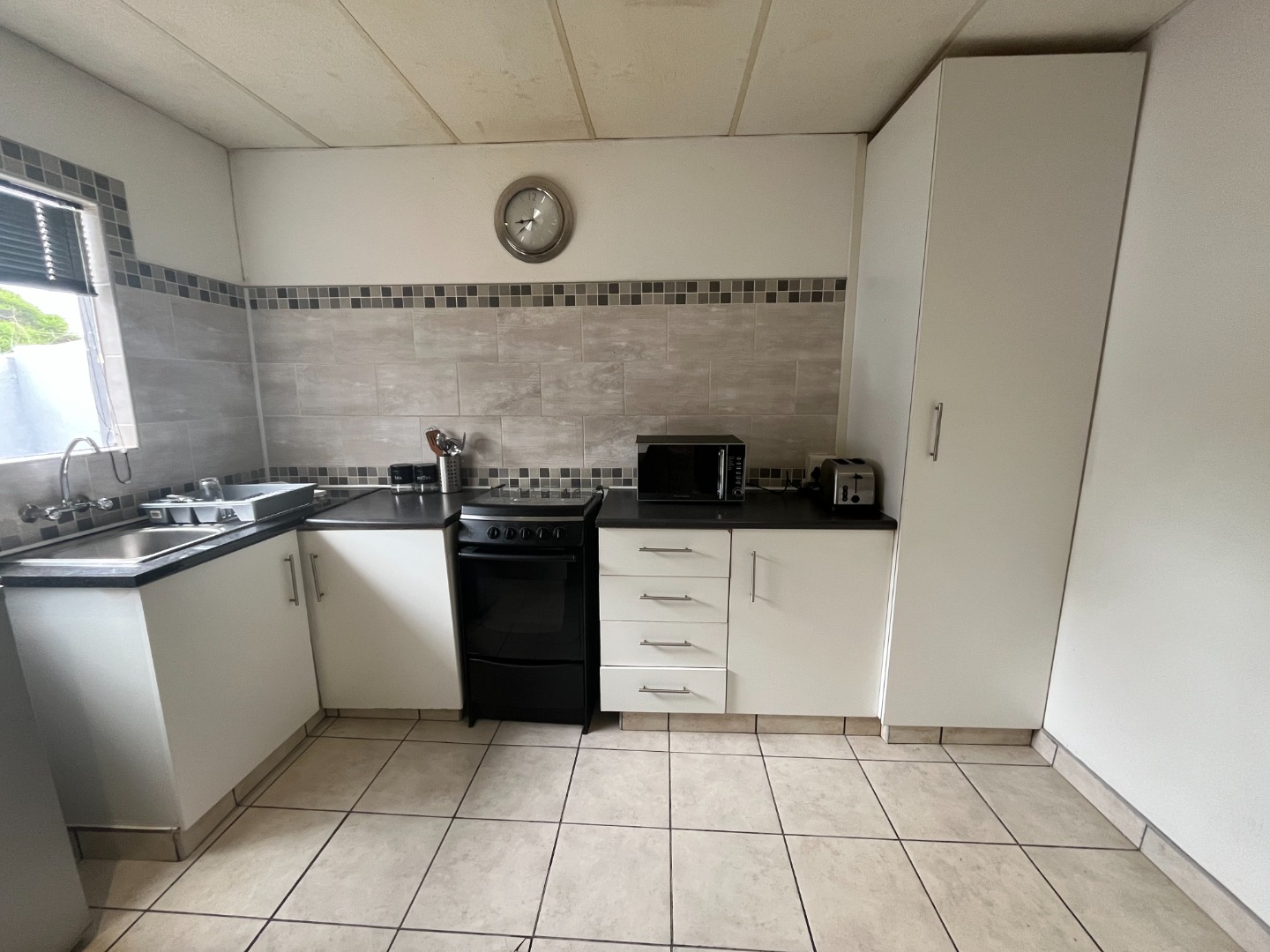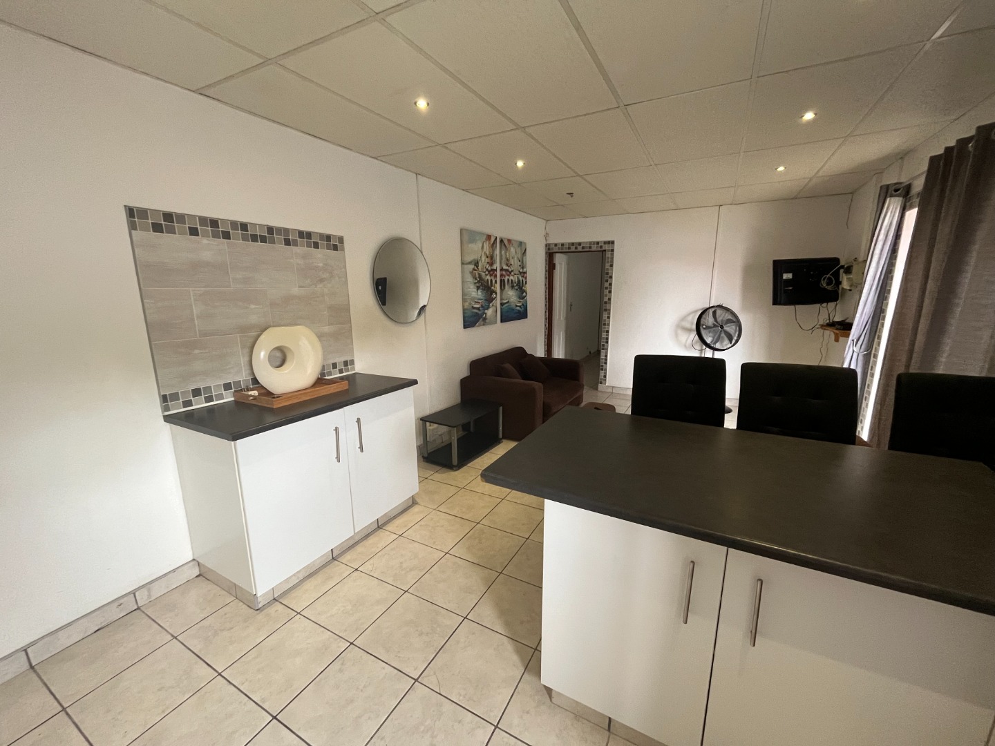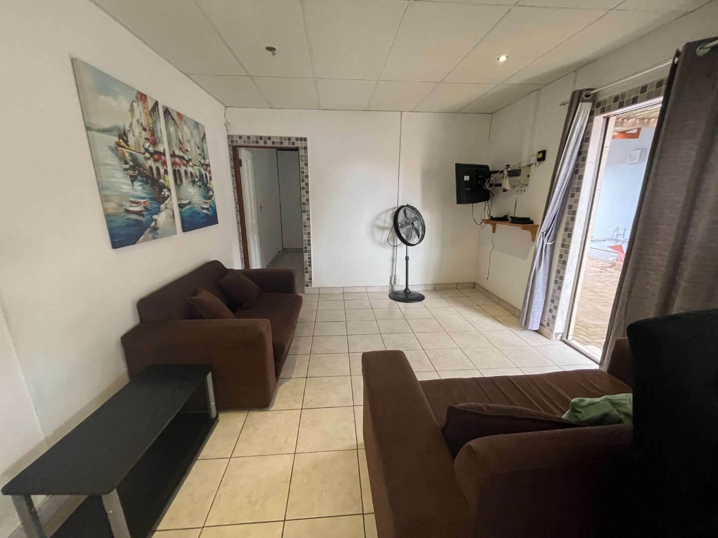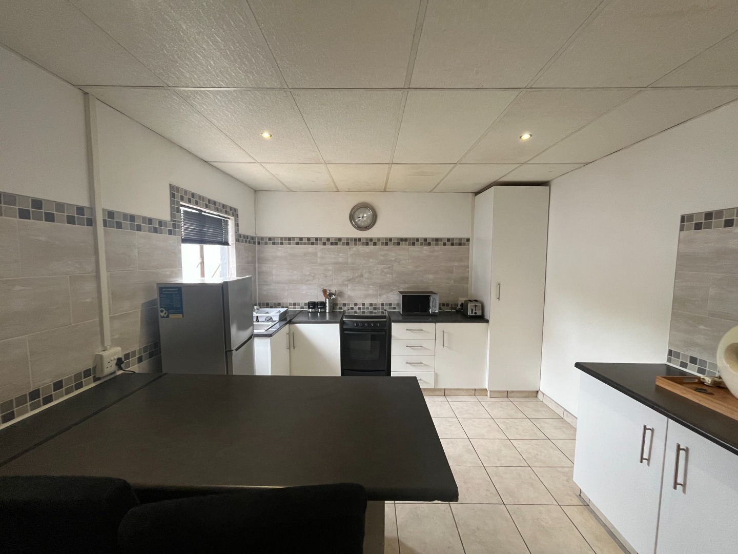 Furnished 1 bedroom in New Park. Open plan kitchen and lounge. The kitchen is equipped with a fridge, stove and build in cupboards. Lounge with a couch and a tv.