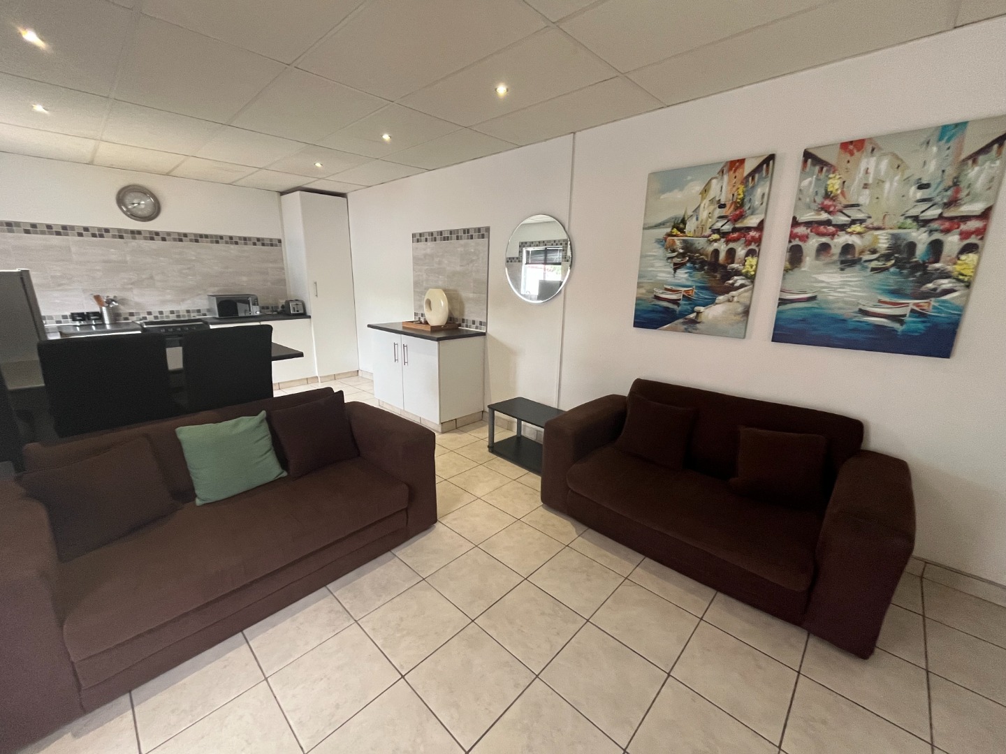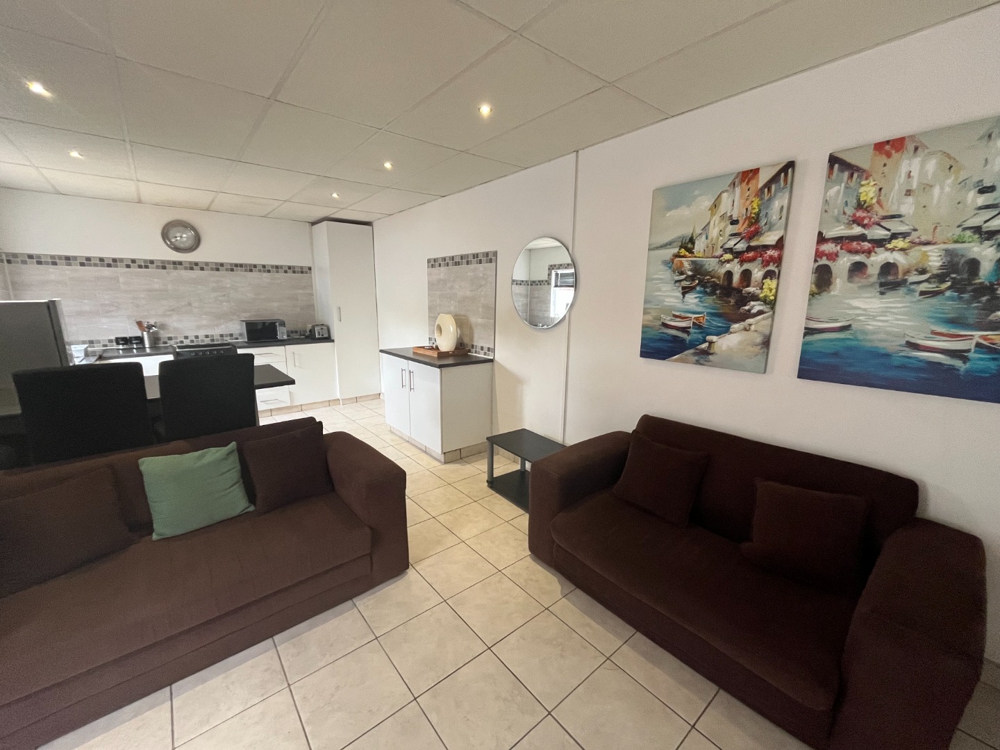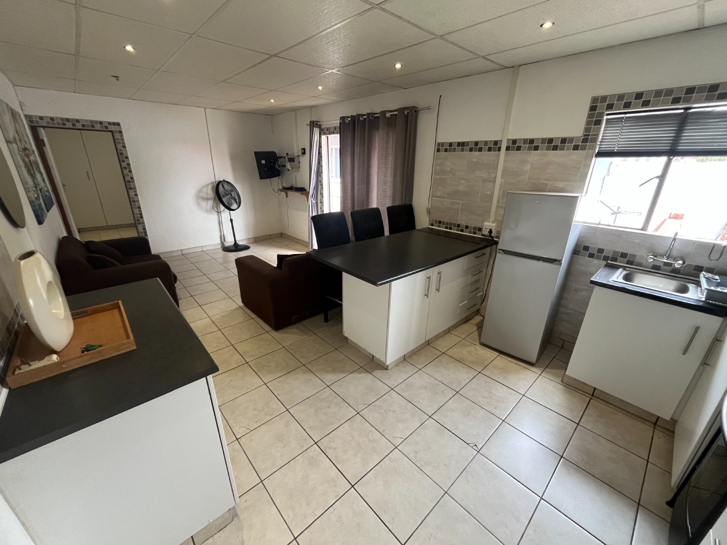 Furnished 1 bedroom in New Park. Open plan kitchen and lounge. The kitchen is equipped with a fridge, stove and build in cupboards. Lounge with a couch and a tv.