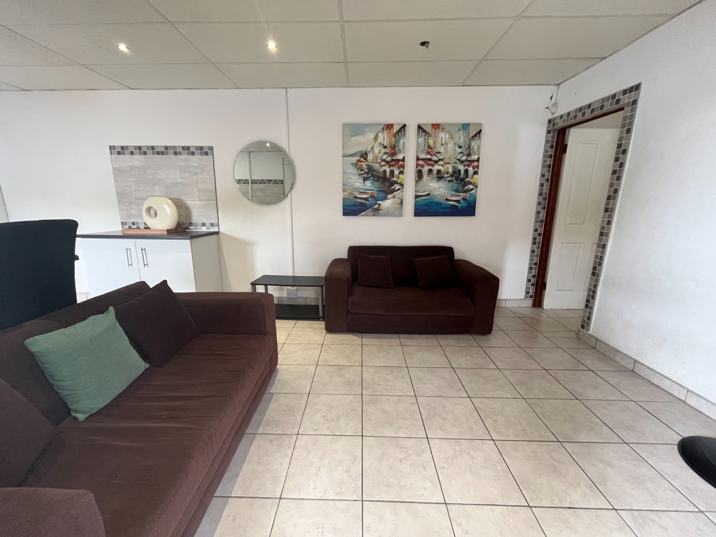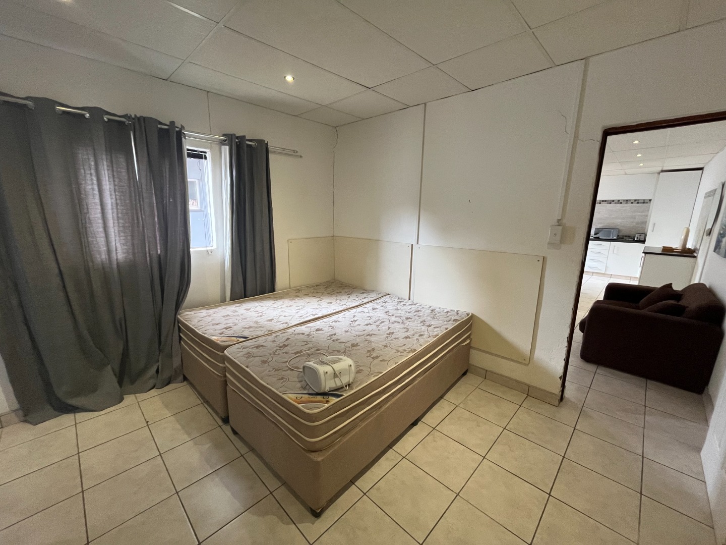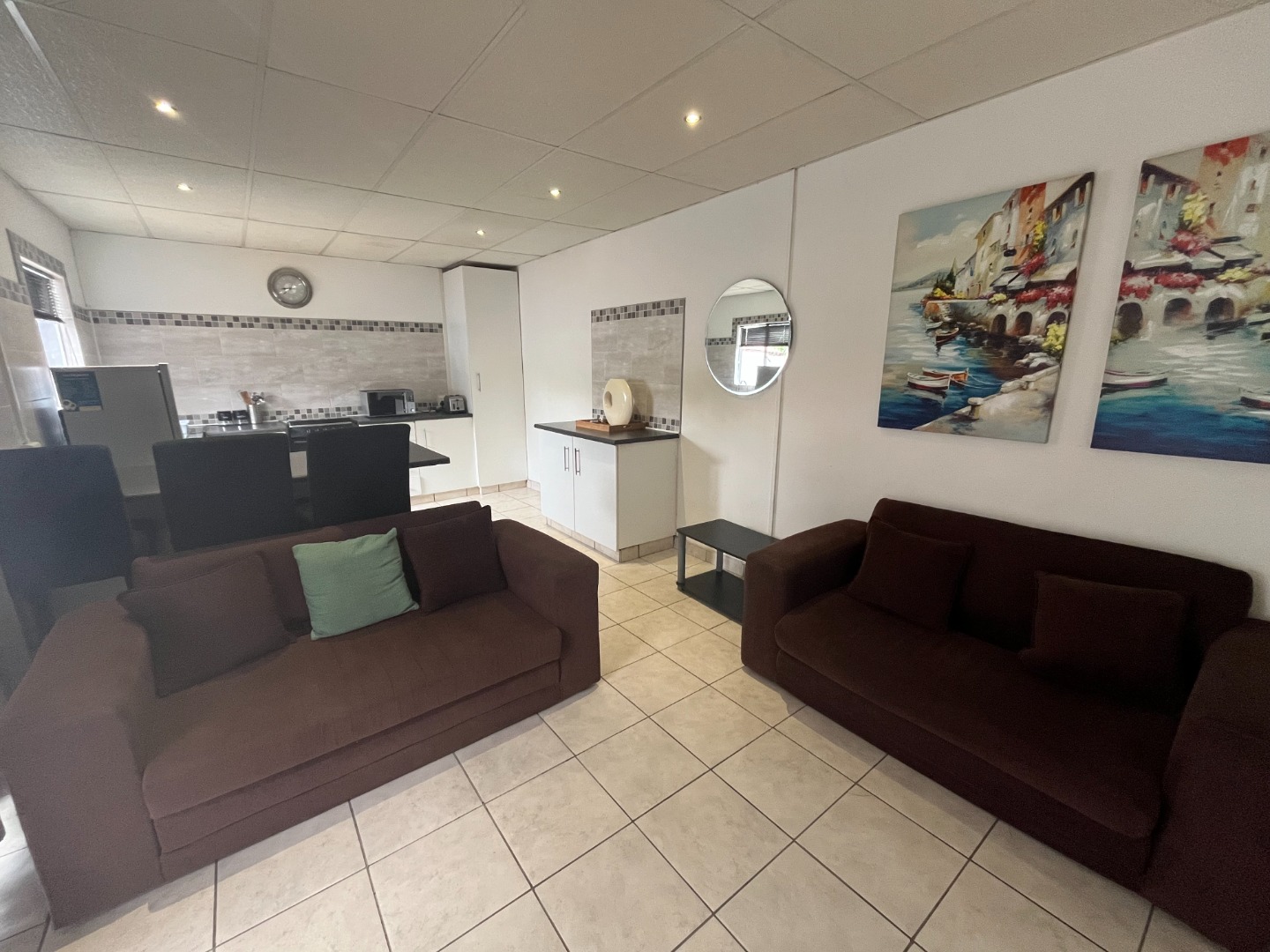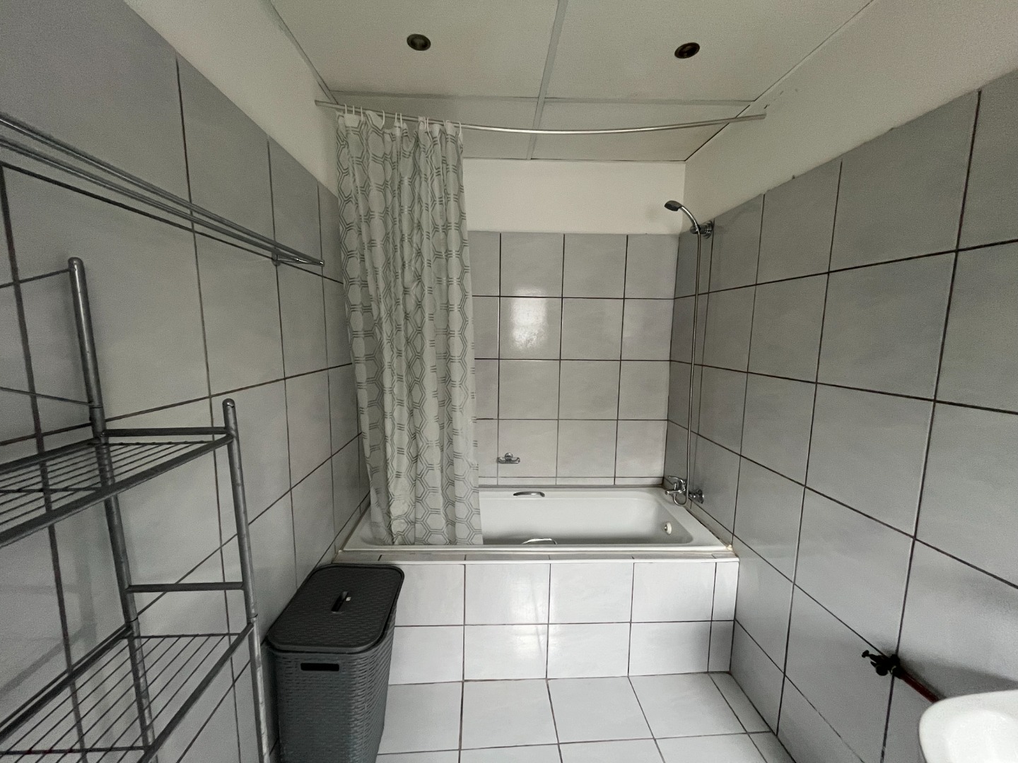 Furnished 1 bedroom in New Park. Open plan kitchen and lounge. The kitchen is equipped with a fridge, stove and build in cupboards. Lounge with a couch and a tv.
