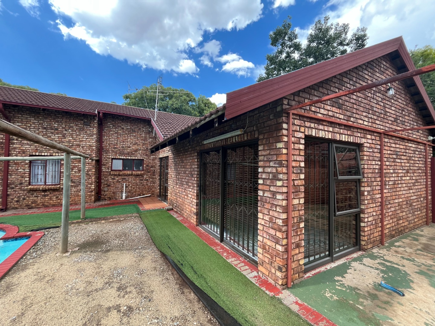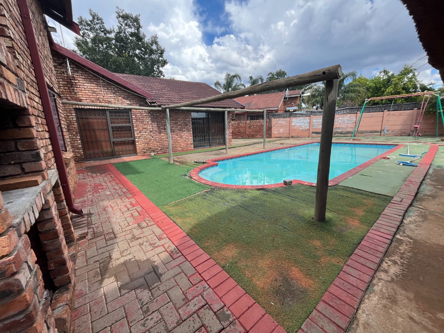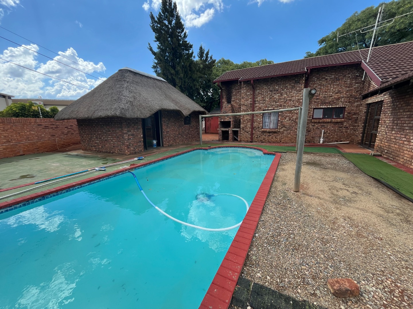 Outside braai at the pool with a lapa / entertainment area. Lots of undercover parking space. Big and neat garden.