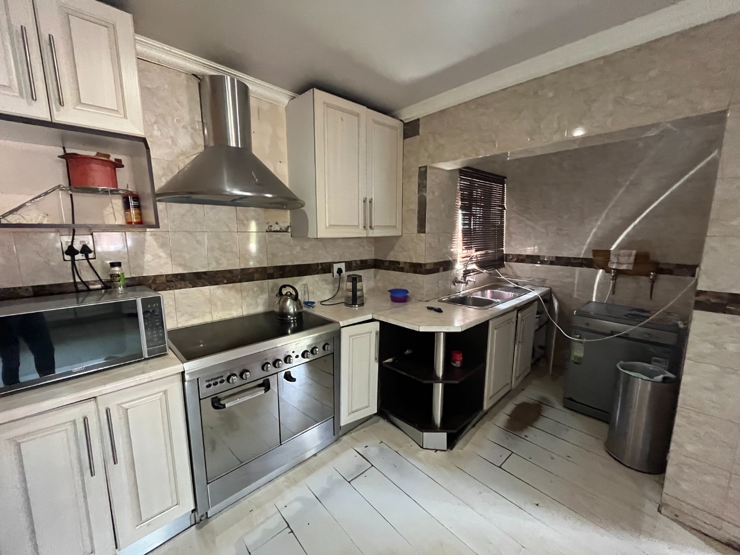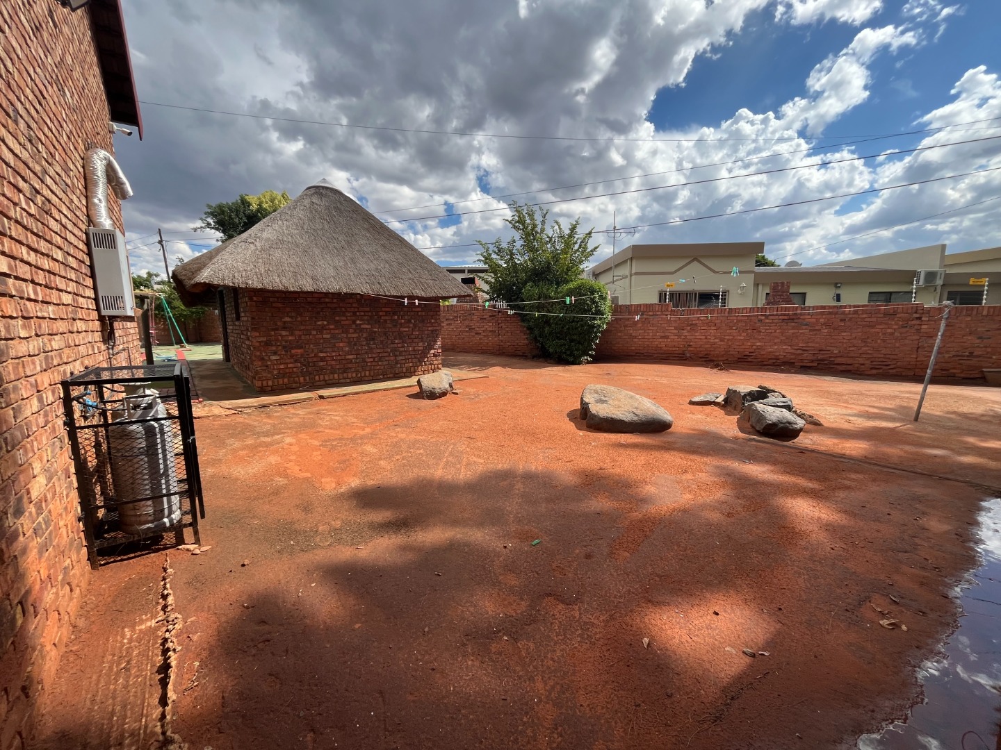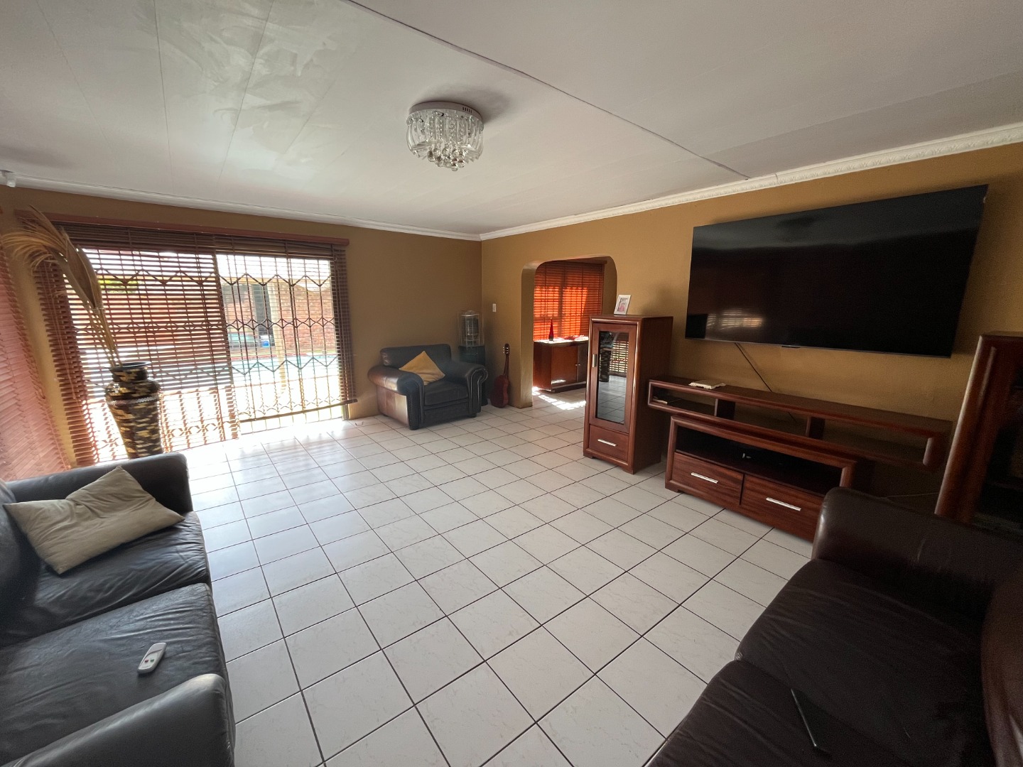 Outside braai at the pool with a lapa / entertainment area. Lots of undercover parking space. Big and neat garden.